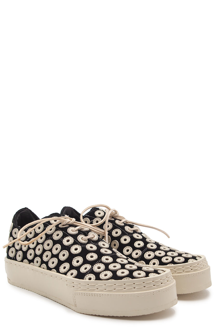 Designed by Eric Payne, this sneaker is all about craft, character, and culture. Inspired by skate style and avant-garde fashion, it reworks the classic Southern California silhouette with playful proportions and unexpected materials. It’s familiar, but with a twist, pushing boundaries in a way that feels fresh, bold, and completely its own as seen with the Eyelet Oxford Trainers