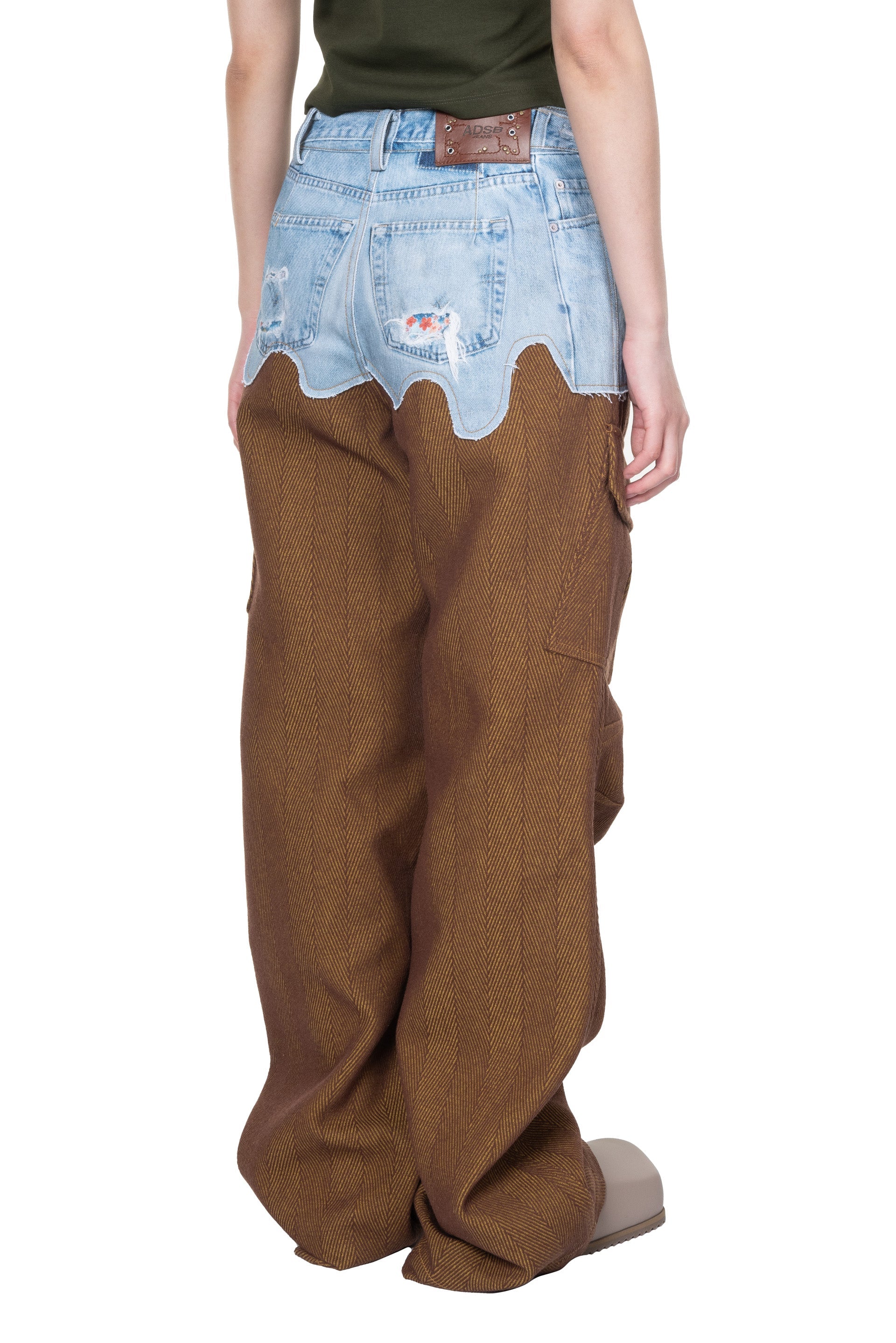Inspired by Korean and Scandinavian culture, the brand reinterprets and combines two contrasting traits to create an individual and unique aesthetic and perspective. Constructed from top-tier materials sourced from around the globe, Andersson Bell’s designs are ultimately intended to last a lifetime as seen with the Faux Denim & Herringbone Cargo Pants.