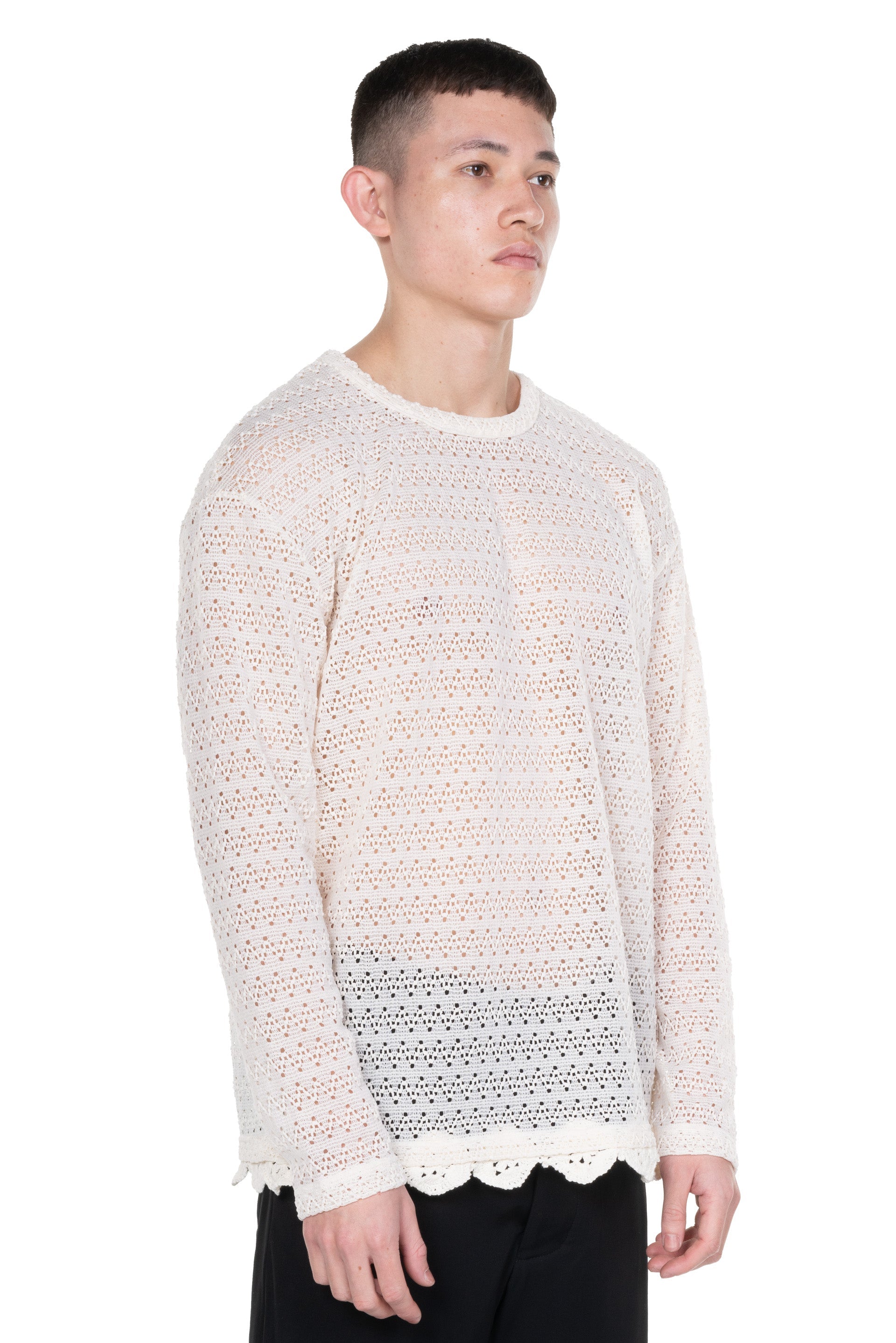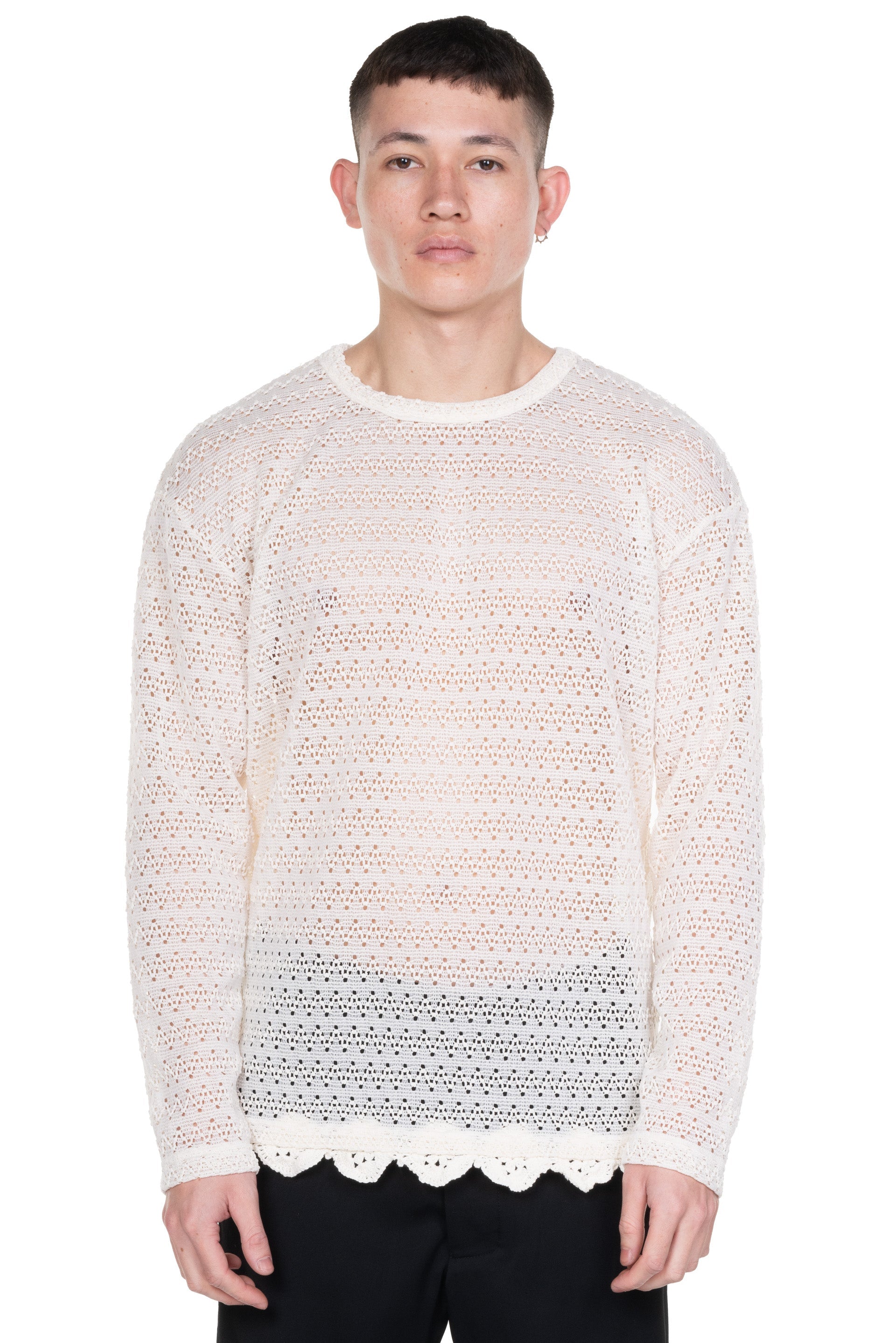 Long sleeves. Round neck. Embroidery knit. Regular fit.