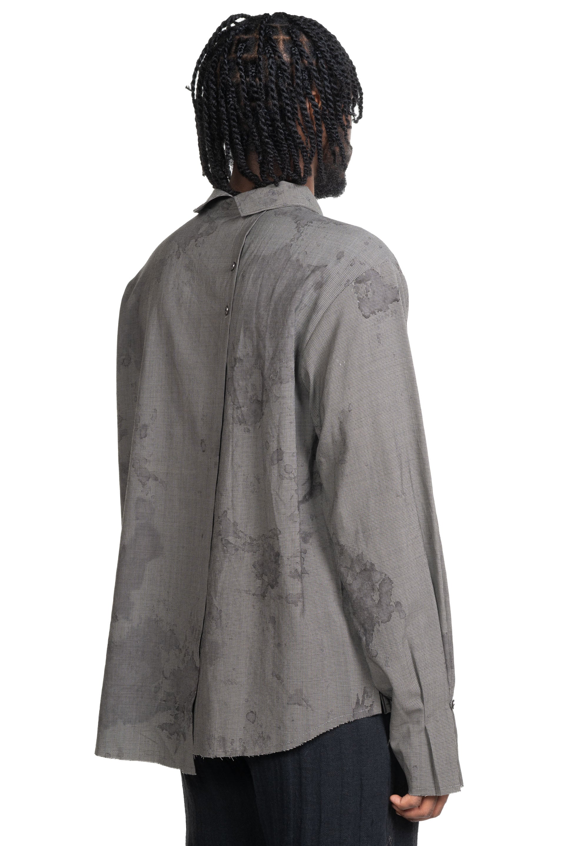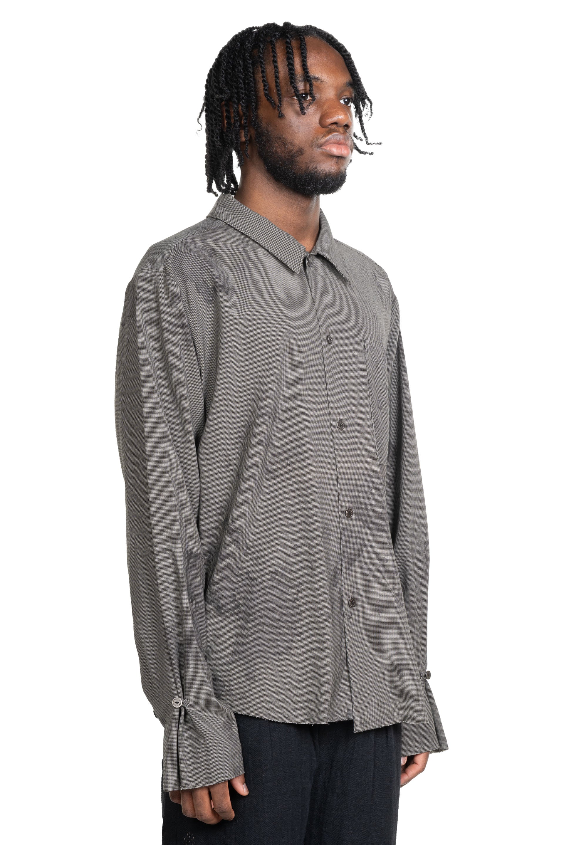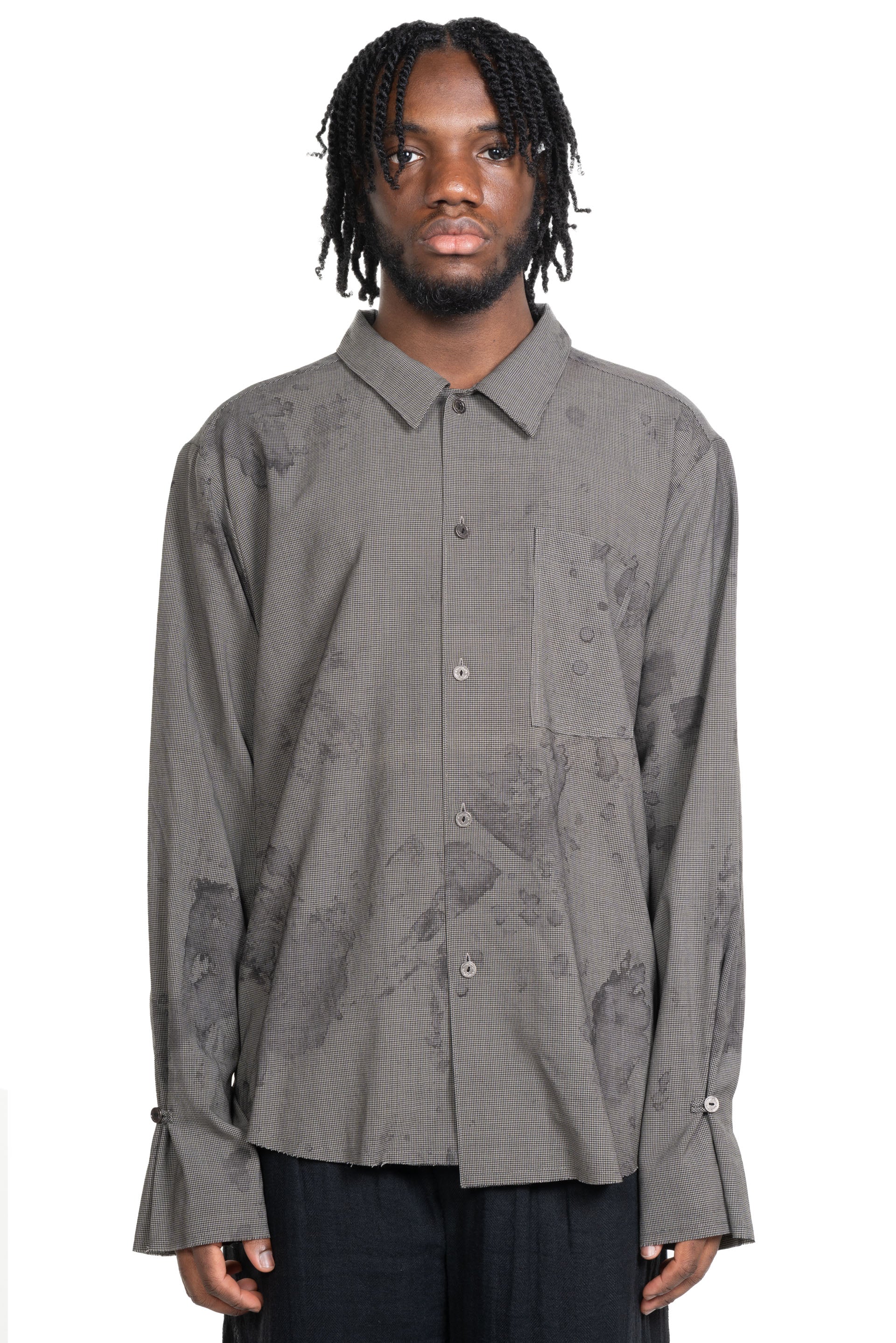 Professor E Forgotten Material Loner Shirt Tainted Check. Long sleeves. Button closure at front. Button details at back offering opening. Signature button details at cuffs. Signature Forgotten Material metallic buttons. Tainted details throughout.