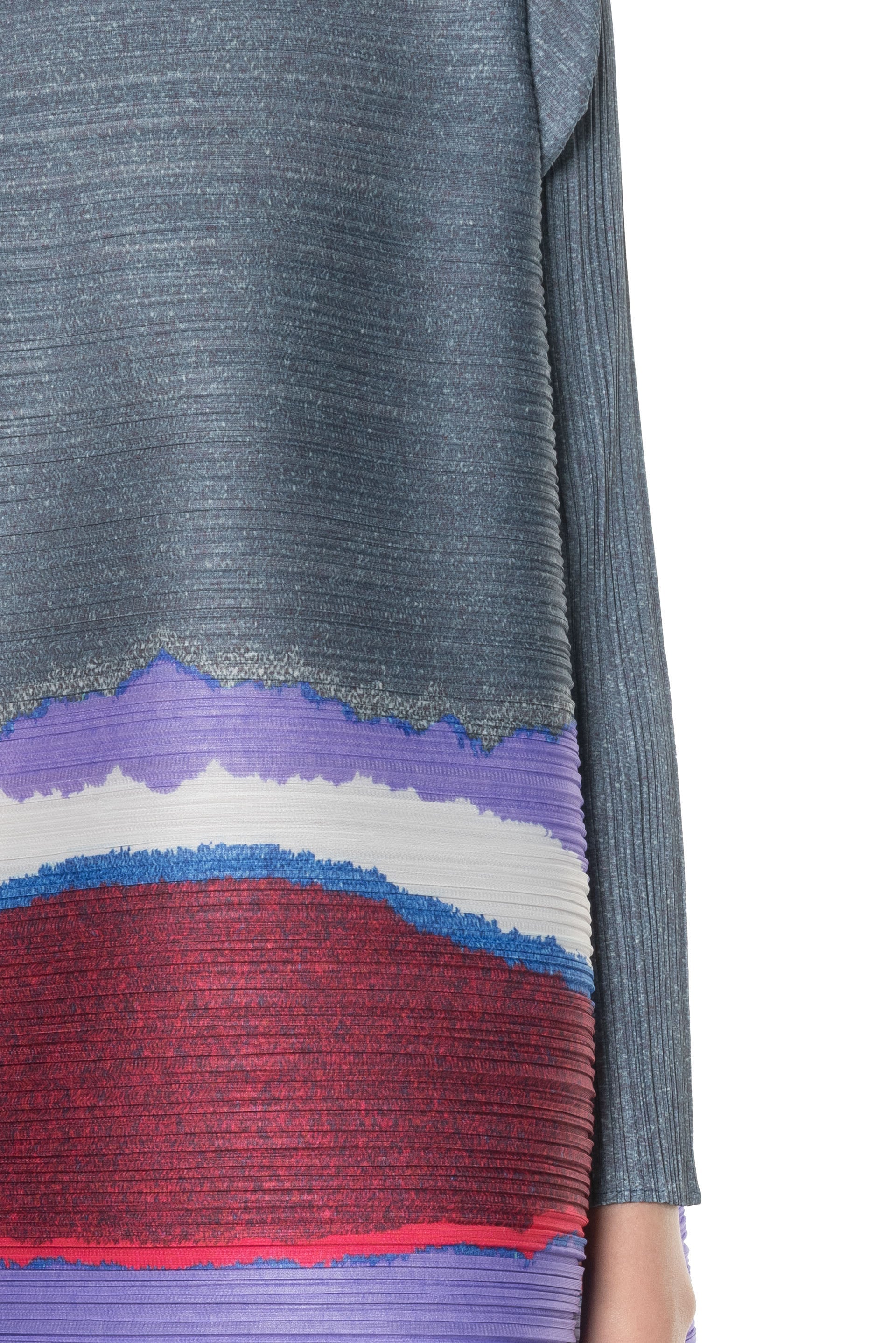 Pleats Please is crafted from a single thread, then creases are added after the clothes have been sewn into shape offering a combination of convenience, comfort and coolness. Pleats Please designs are simple with a strong silhouette as seen with the Grainy Colors Top Dark Blue Grey.