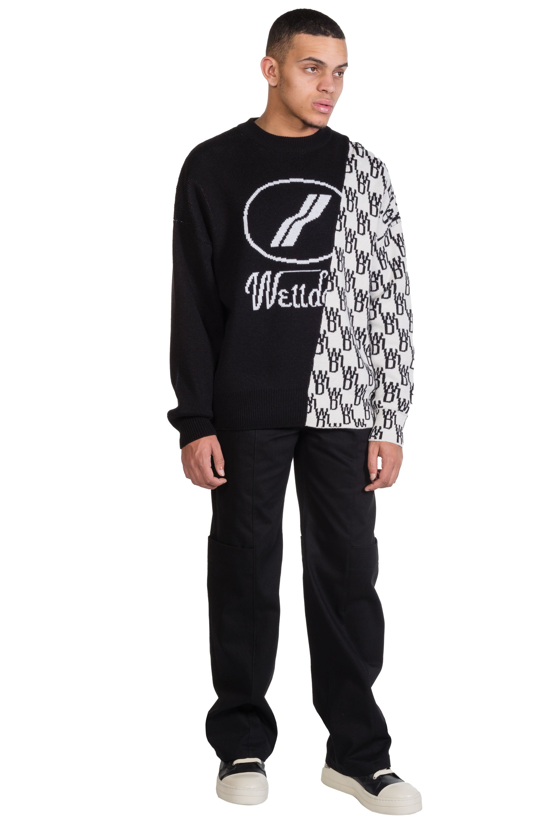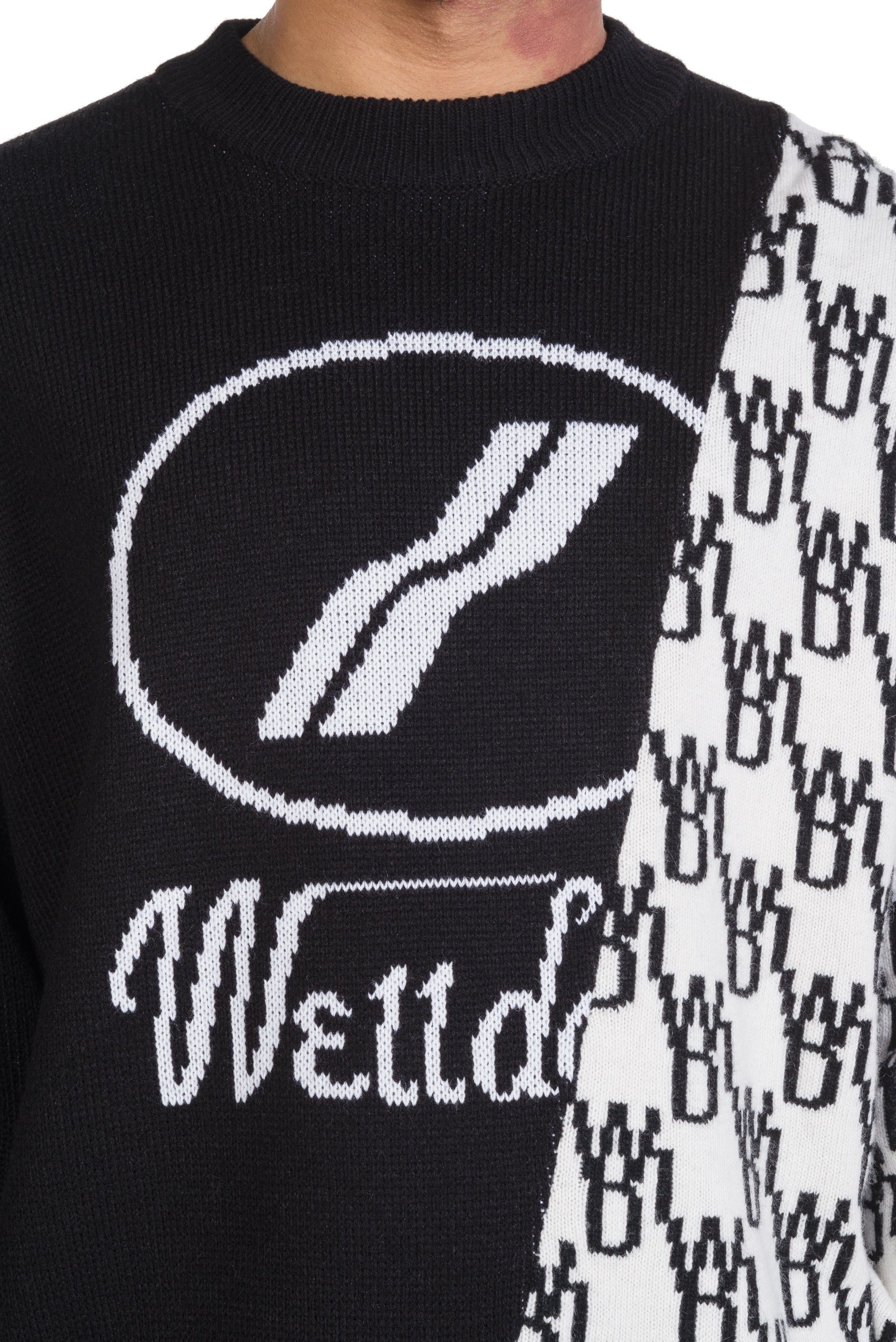 We11done merges late 1990s and early 2000s aesthetics creating a feeling of futurity. Functional, sportive, and sleek, We11done’s versatile designs refine classic elements into contemporary lifestyle pieces as seen with the Graphic Mix Logo Sweater.