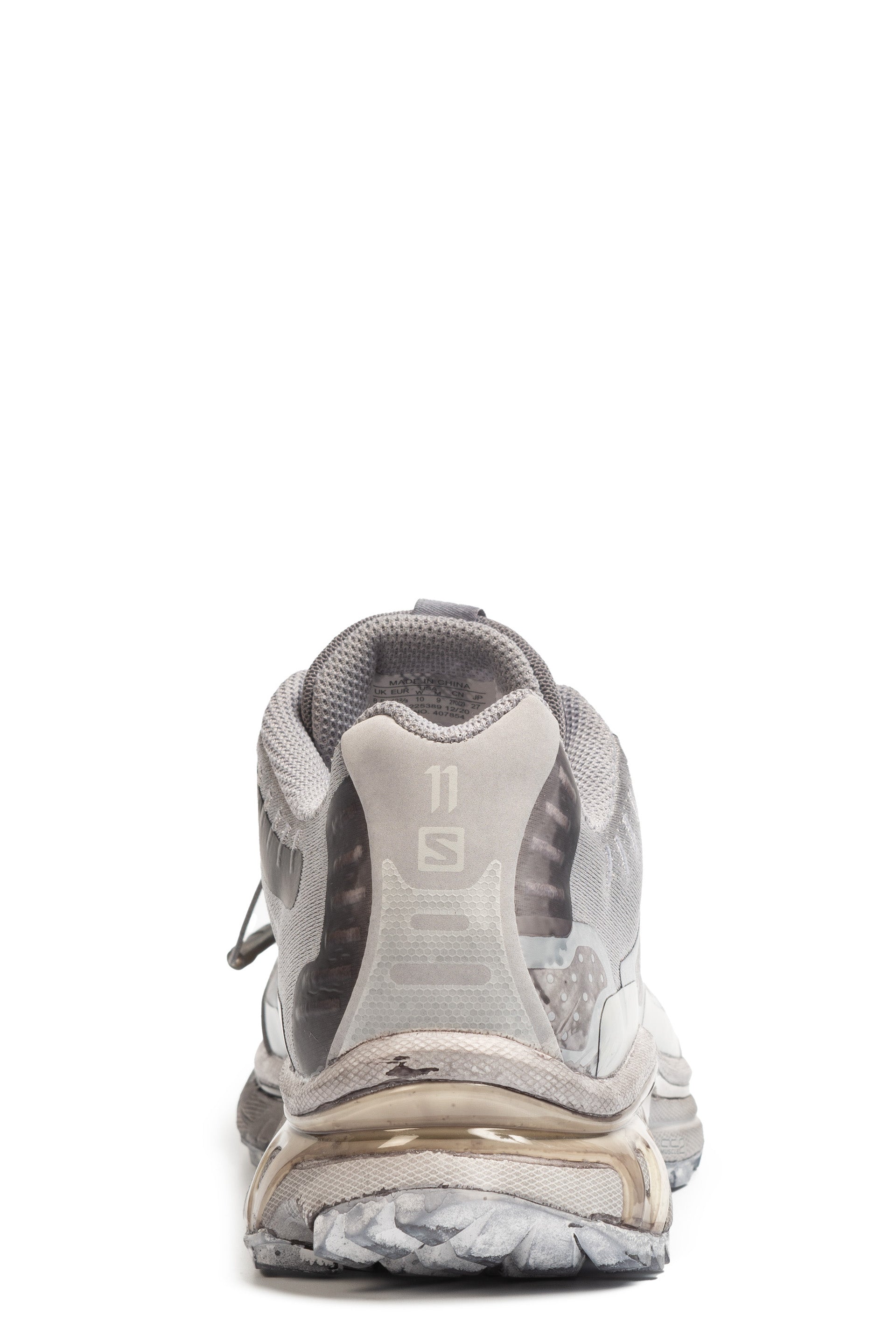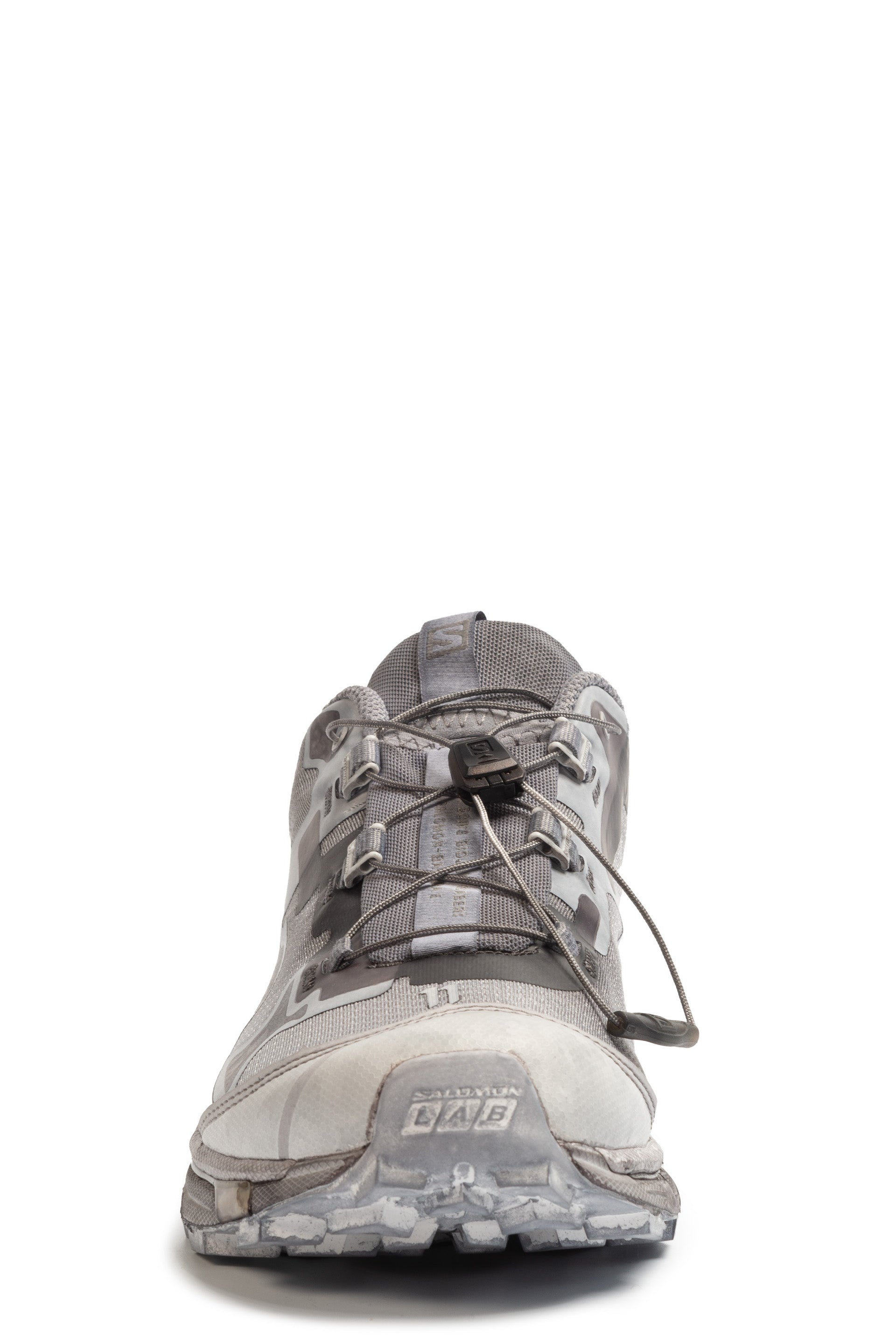 Low-top bonded jersey and mesh sneakers in Grey dye. Smudging and bonded trim throughout. Snake-embossed faux-leather cap toe. Logo bonded at vamp. Quicklace™ closure. Logo patch at padded tongue. Padded collar. Logo printed at heel counter. Mesh lining. Treaded Contagrip® rubber sole. Part of the 11 by Boris Bidjan Saberi x Salomon collaboration.