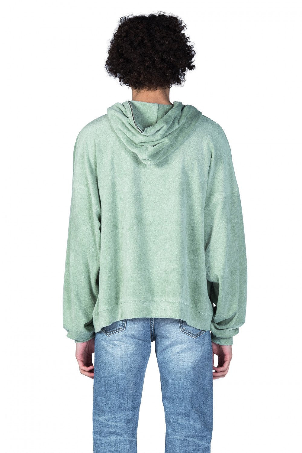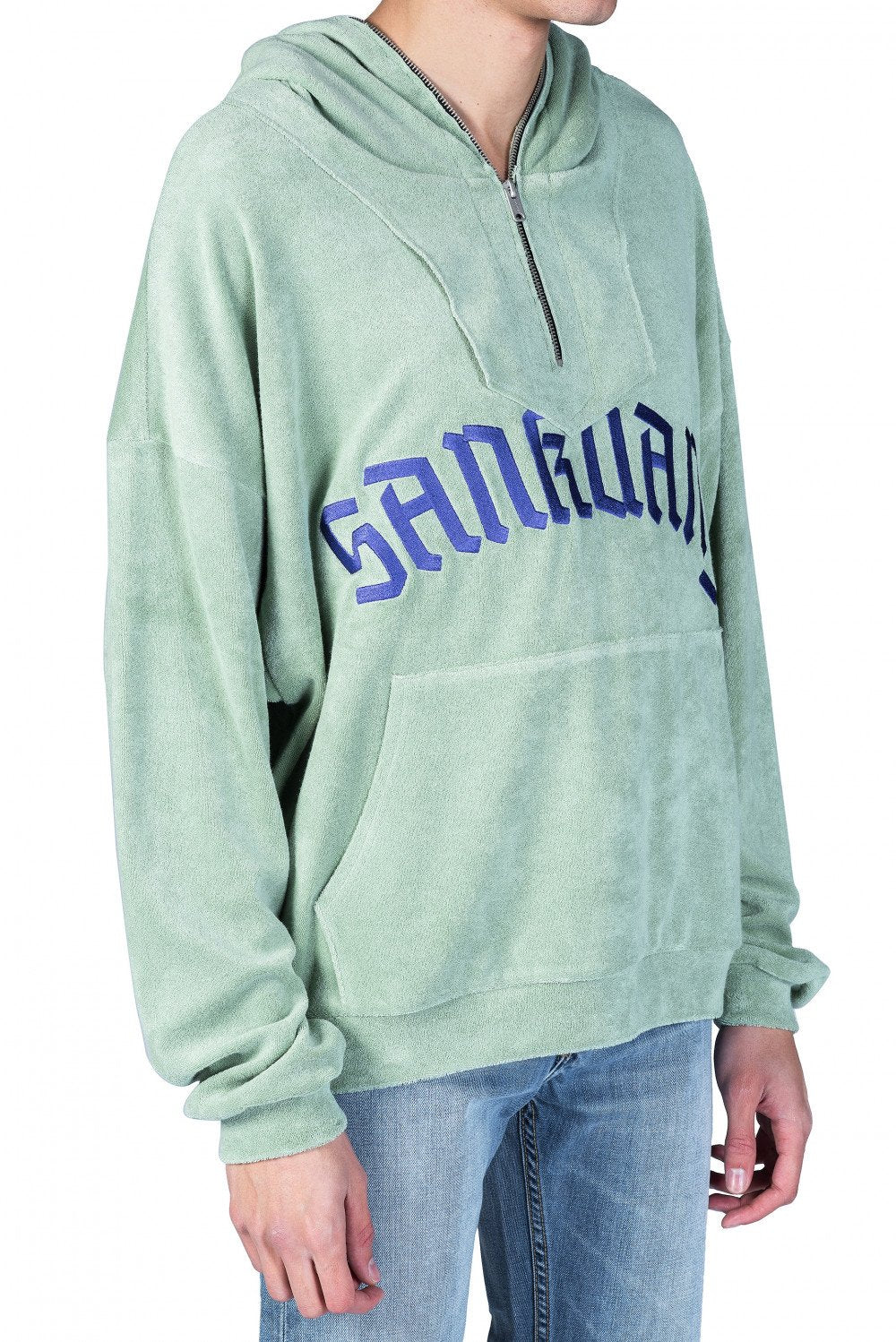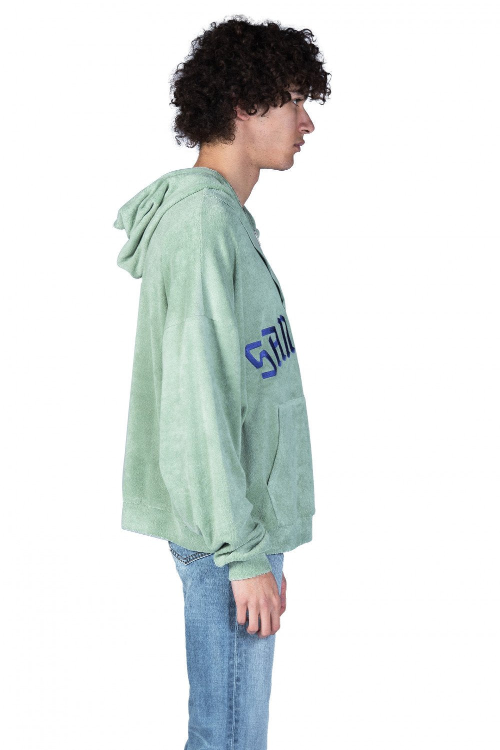 Innovative designs take centre stage in the Sankuanz collection at UJNG. Experimental shapes and offbeat graphics create a flamboyant, boundary-pushing look. Find a vibrant colour palette and bold use of textures. Architectural pieces with unexpected embellishments enhance the eye-catching nature of this edit, as seen in the Green Logo Hoodie.