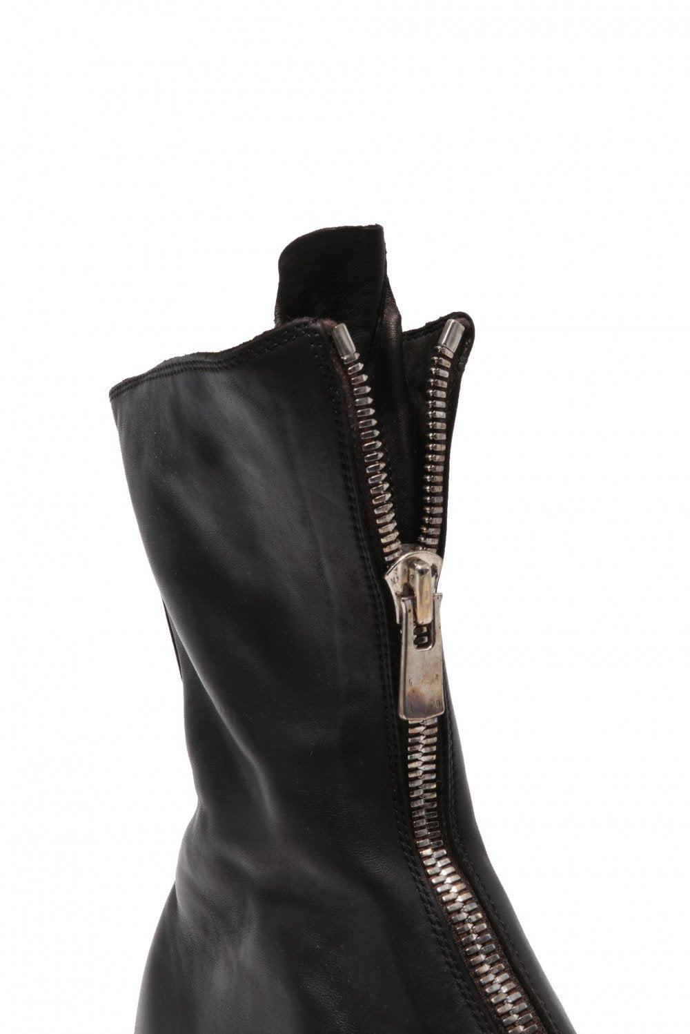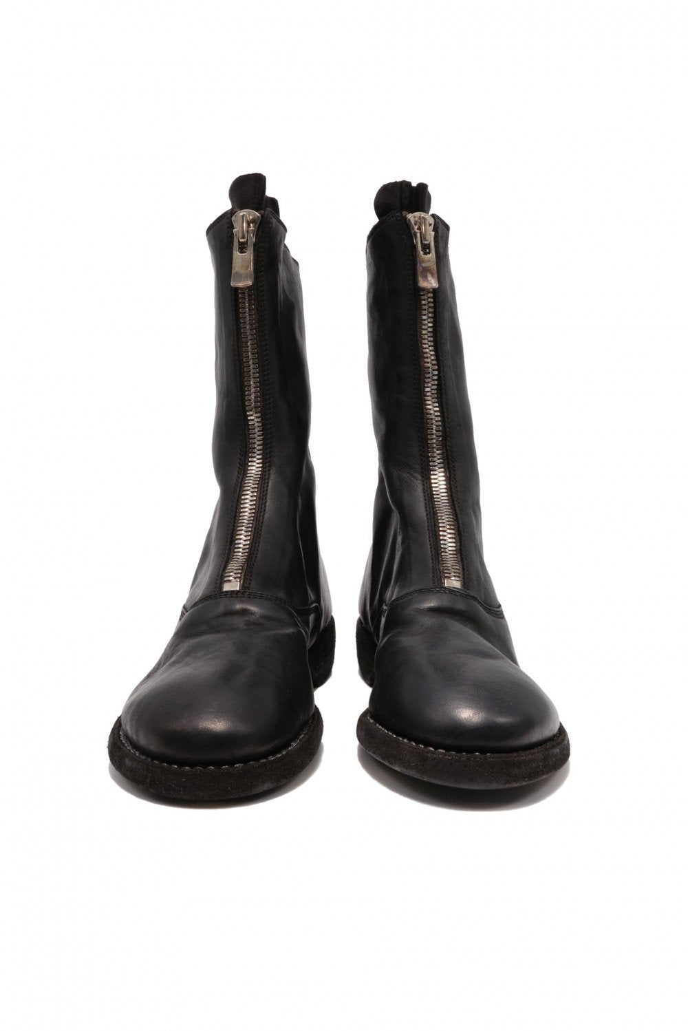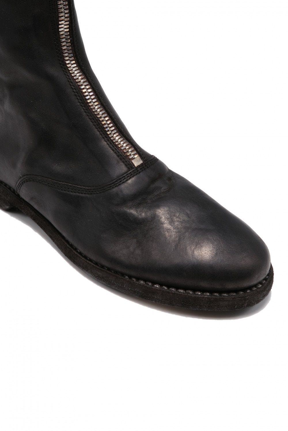 Guidi 310 front zip boot in black. Front zip closure. Tonal stacked leather heel and sole. Antiqued silver-tone hardware. Tonal treaded rubber Vibram outsoles included