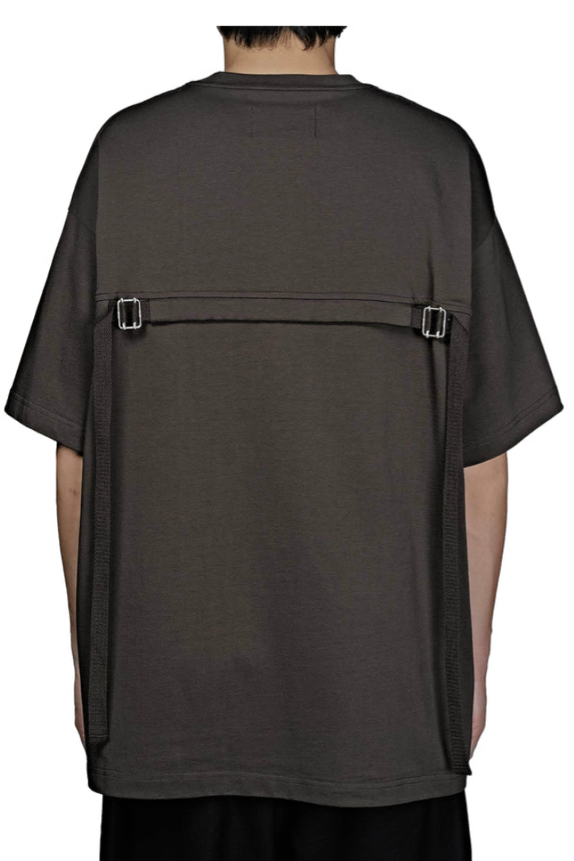 Short sleeve structured t-shirt in umber. Crew collar. Adjustable strap detailing on the back bodice. Semi-oversized fit.