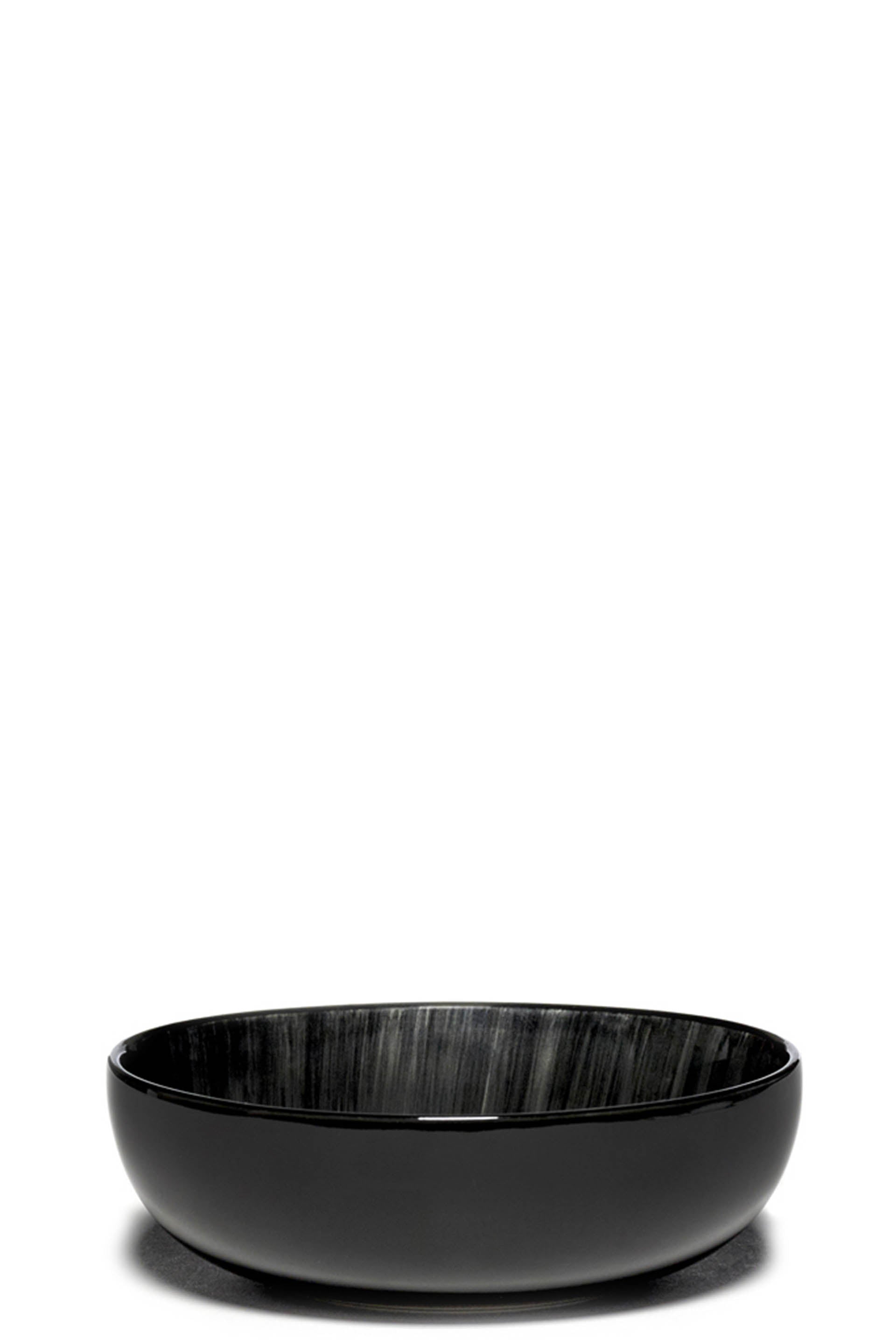 Set of 2 Ann Demeulemeester x Serax bowl-shaped High plates in off-white/black. Hand painted ‘dégradé’ in several layers. Designed by Ann Demeulemeester.