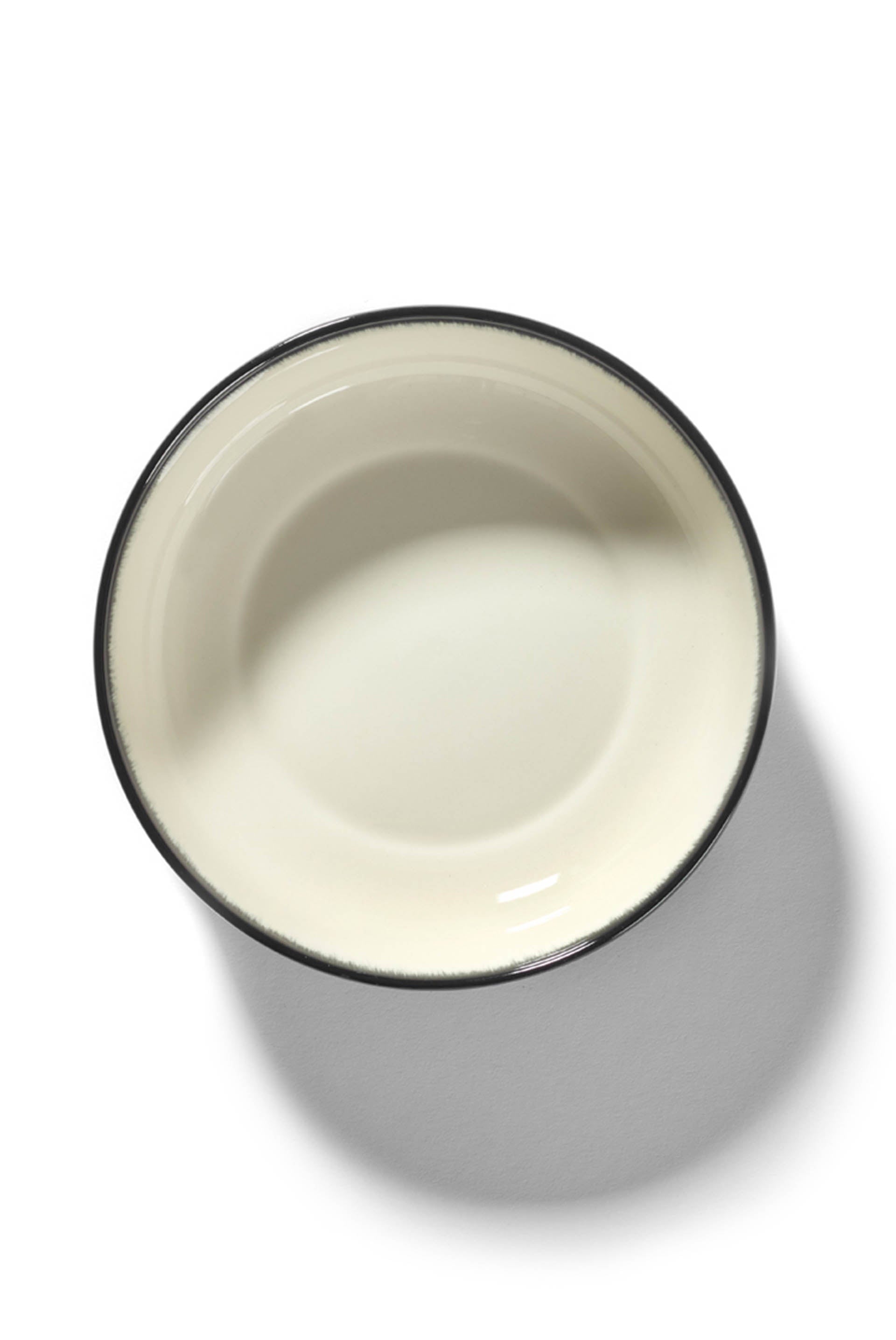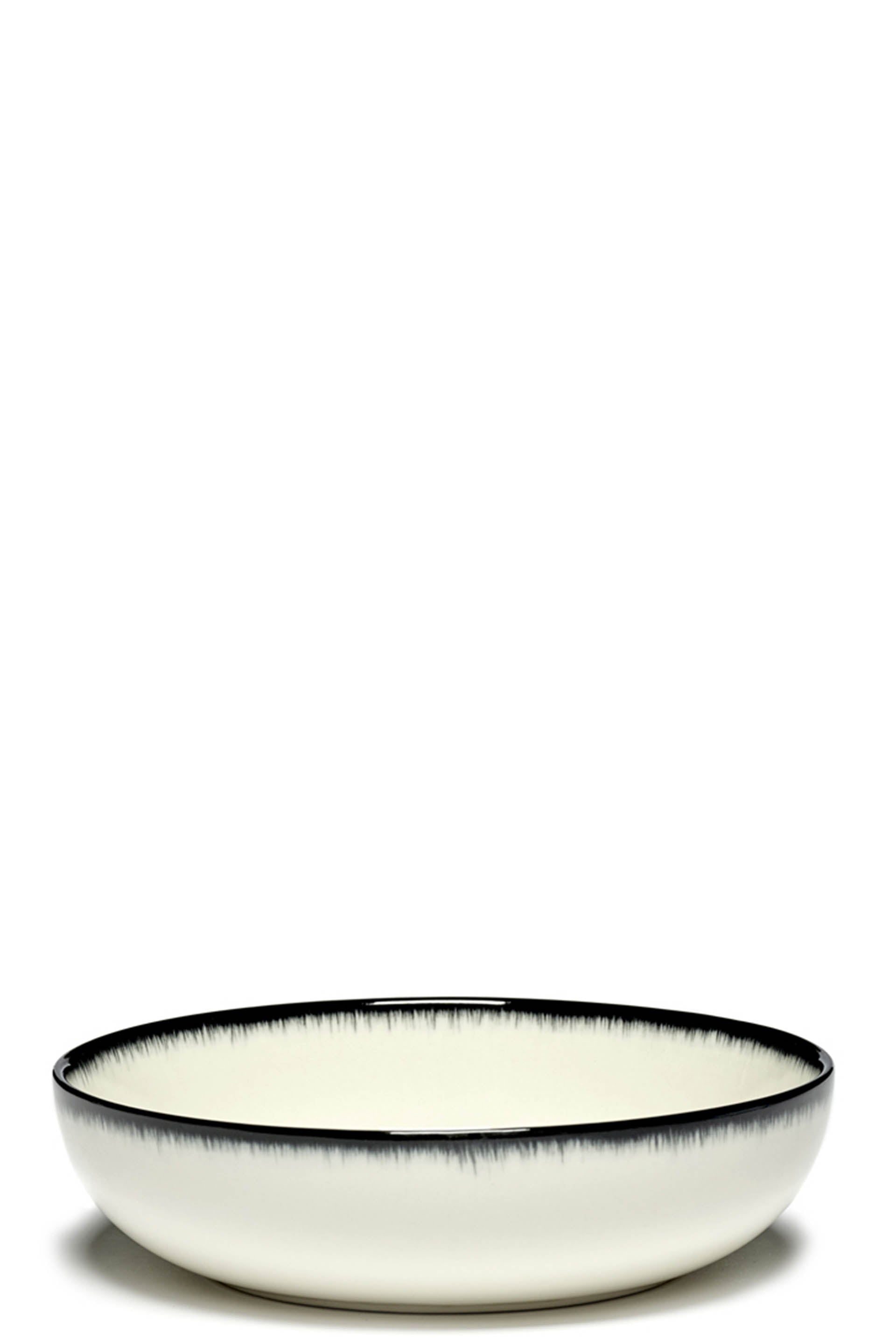 Set of 2 Ann Demeulemeester x Serax bowl-shaped High plates in off-white/black. Hand painted ‘dégradé’ in several layers. Designed by Ann Demeulemeester.