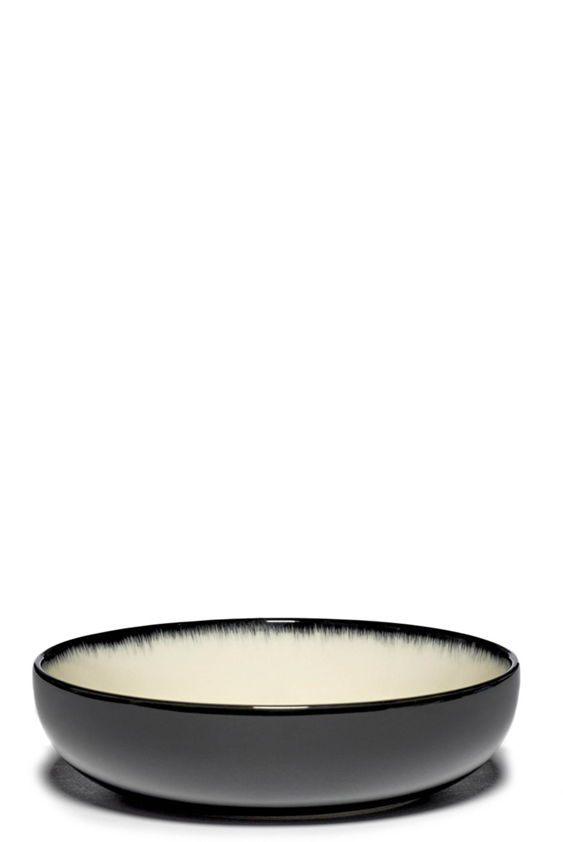 Set of 2 Ann Demeulemeester x Serax bowl-shaped High plates in off-white/black. Hand painted ‘dégradé’ in several layers. Designed by Ann Demeulemeester.