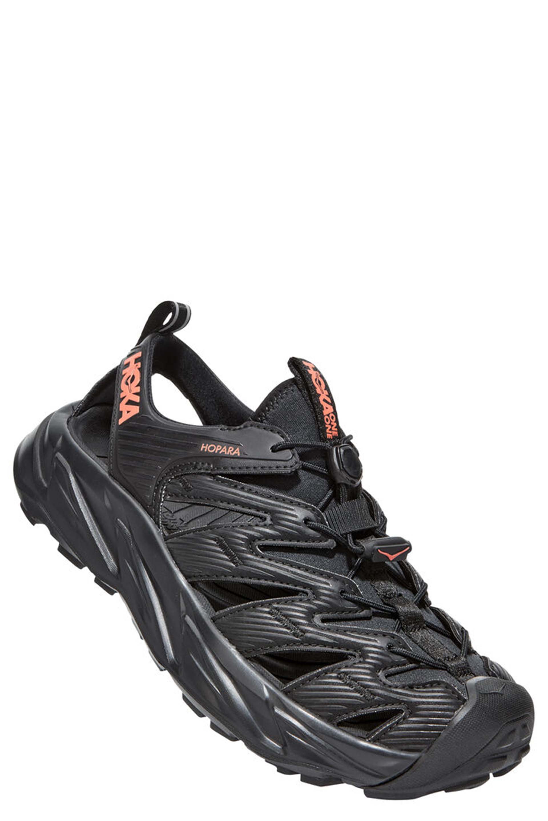 A true outdoor explorer, the Hopara easily navigates through any terrain, wet or dry. Designed through the HOKA lens, this shoe will blow other mountain sandals out of the water. The Hopara has a synthetic upper with strategic cutouts for drainage while still providing a secure lockdown. It includes a neoprene collar for flexibility and comfort plus a quick-lace system. Providing a responsive yet cushiond feel thanks to a rubberised EVA midsole, the Hopara also features a rubberised toe cap for protection and a sticky rubber outsole for traction in a variety of conditions. Add in 4mm multidirectional lugs for even more grip and the Hopara is your key to adventure.
