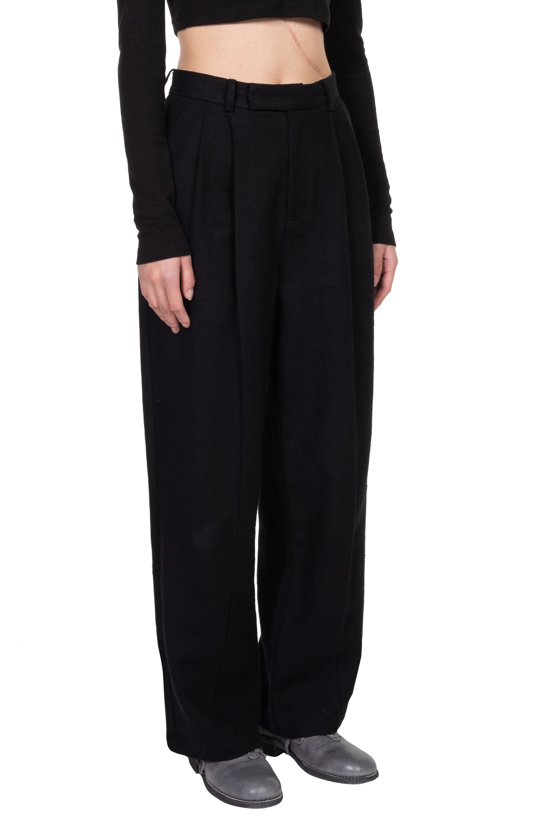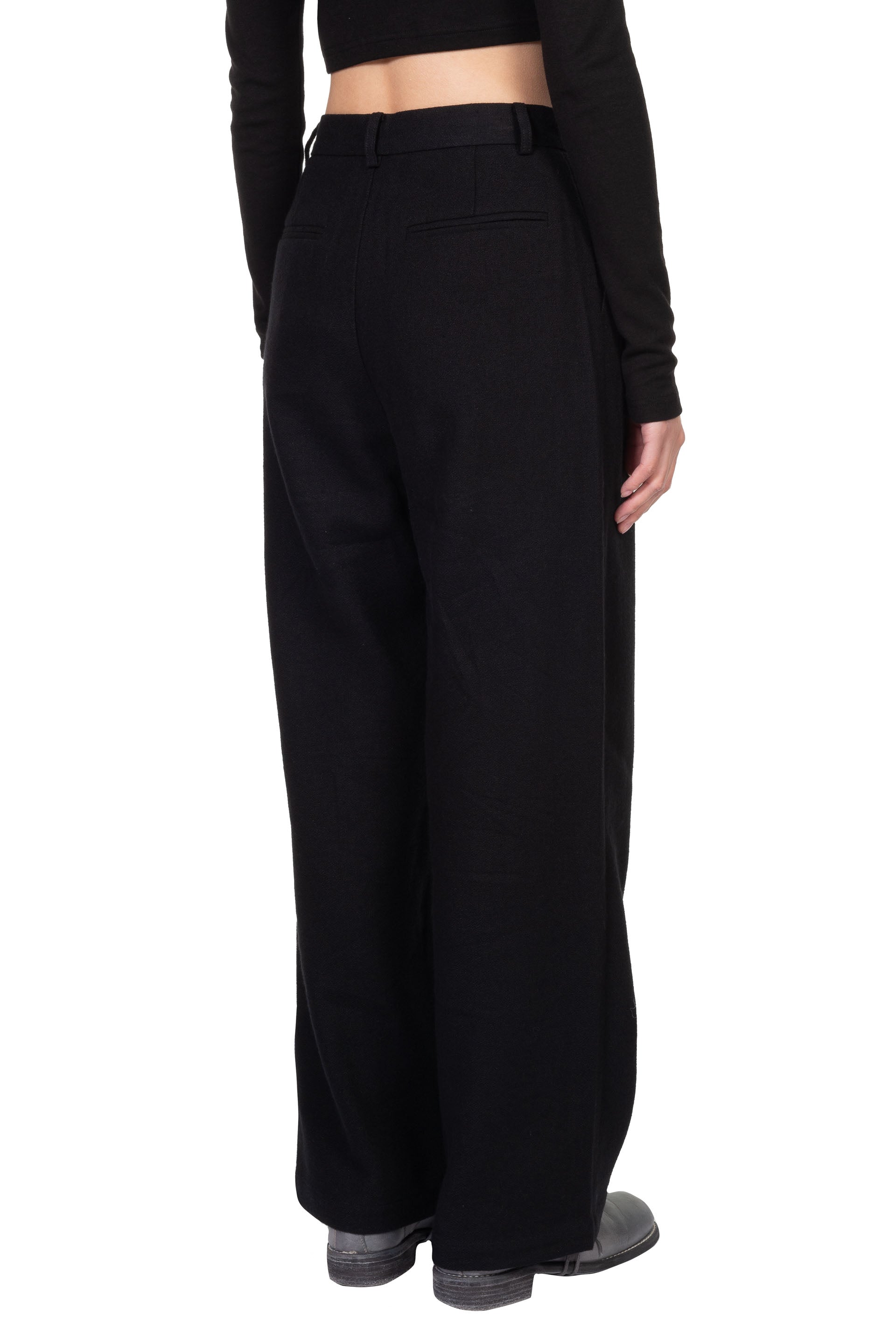 Suit trousers in linen. Draped, relaxed fit and pleated front. Inspired by menswear suit trousers tailoring. Relaxed fit. Draped. Two-sides of Pockets.