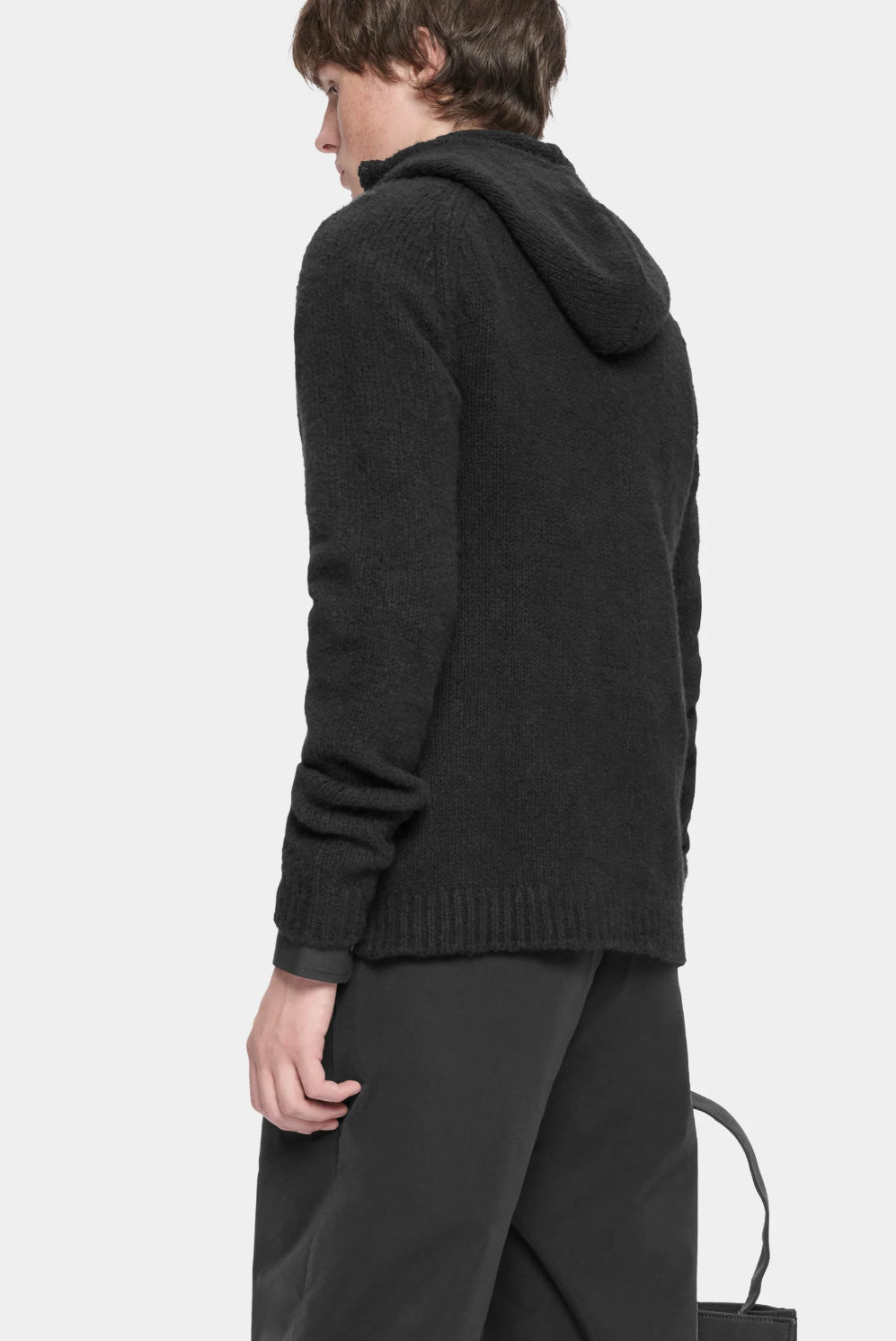 HE Slim fit knitted cashmere hoodie in black with recycled components. Slim fit. Cashmere with recycled components. Plastic injected zipper