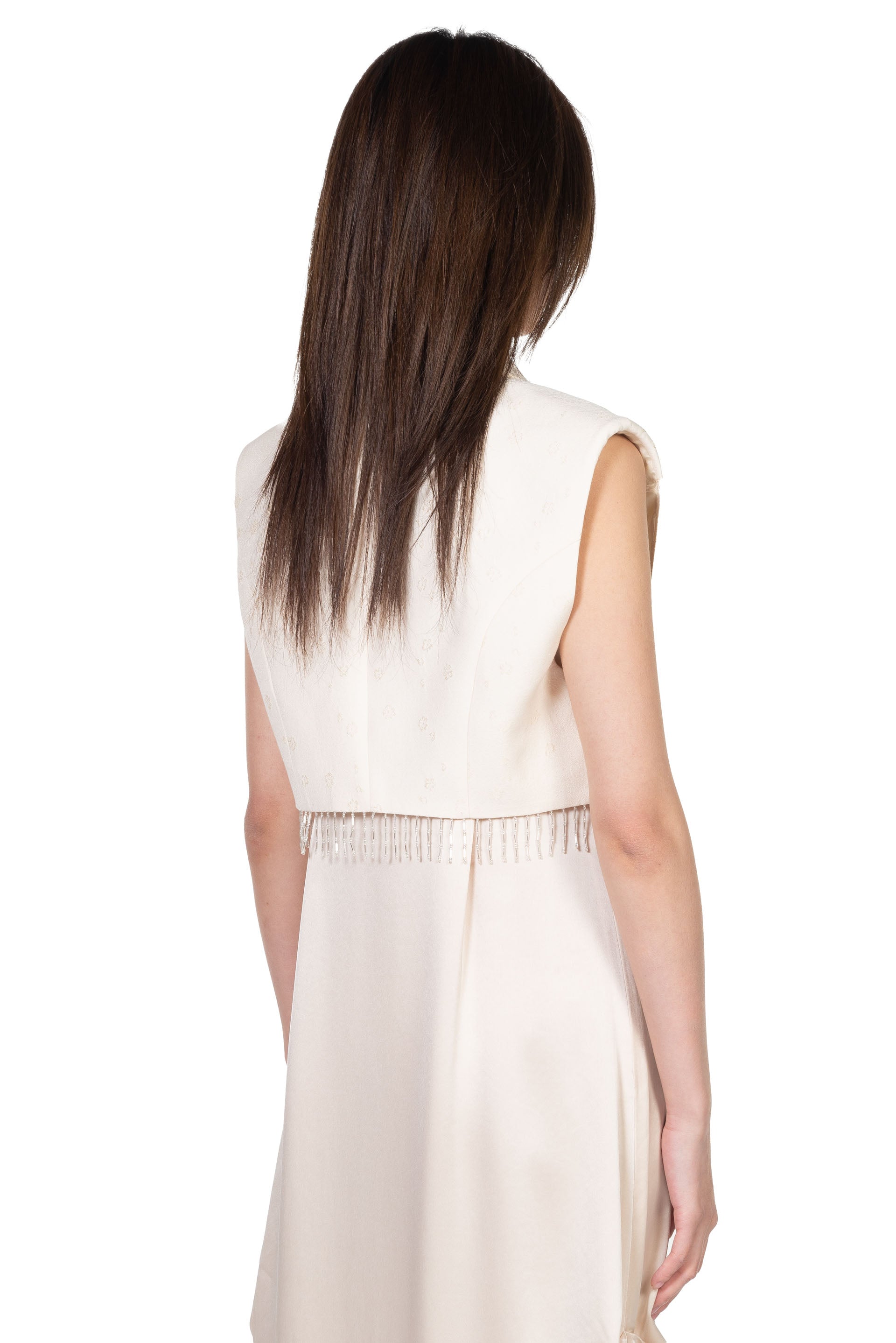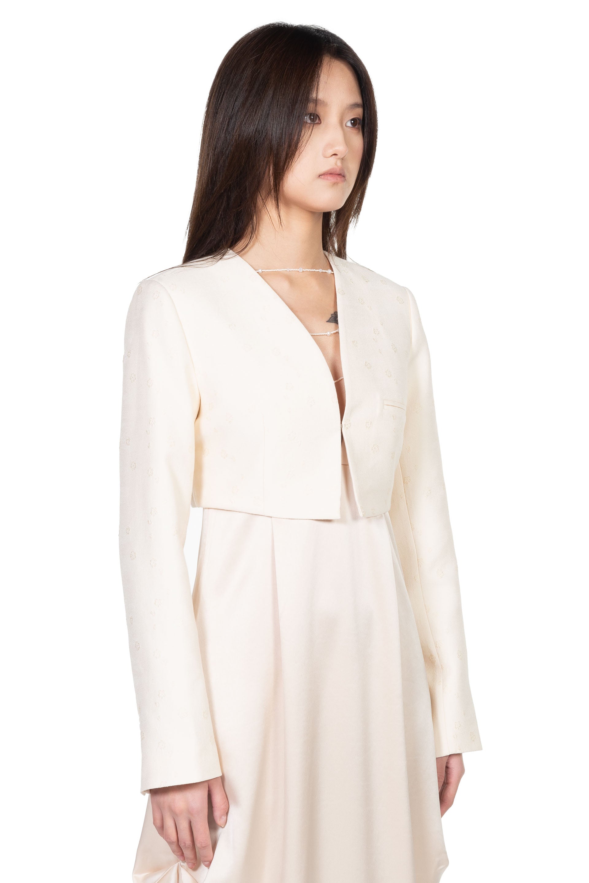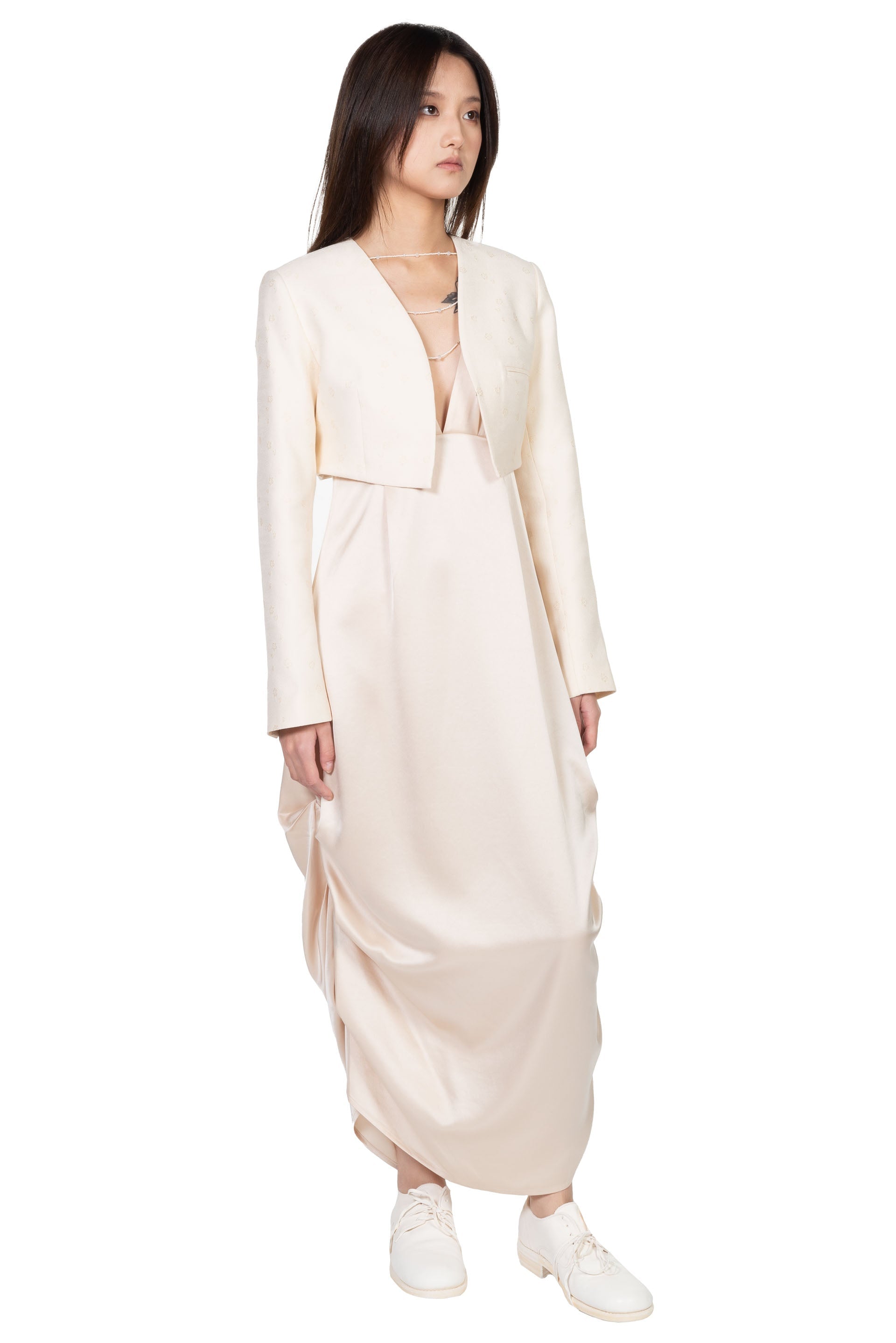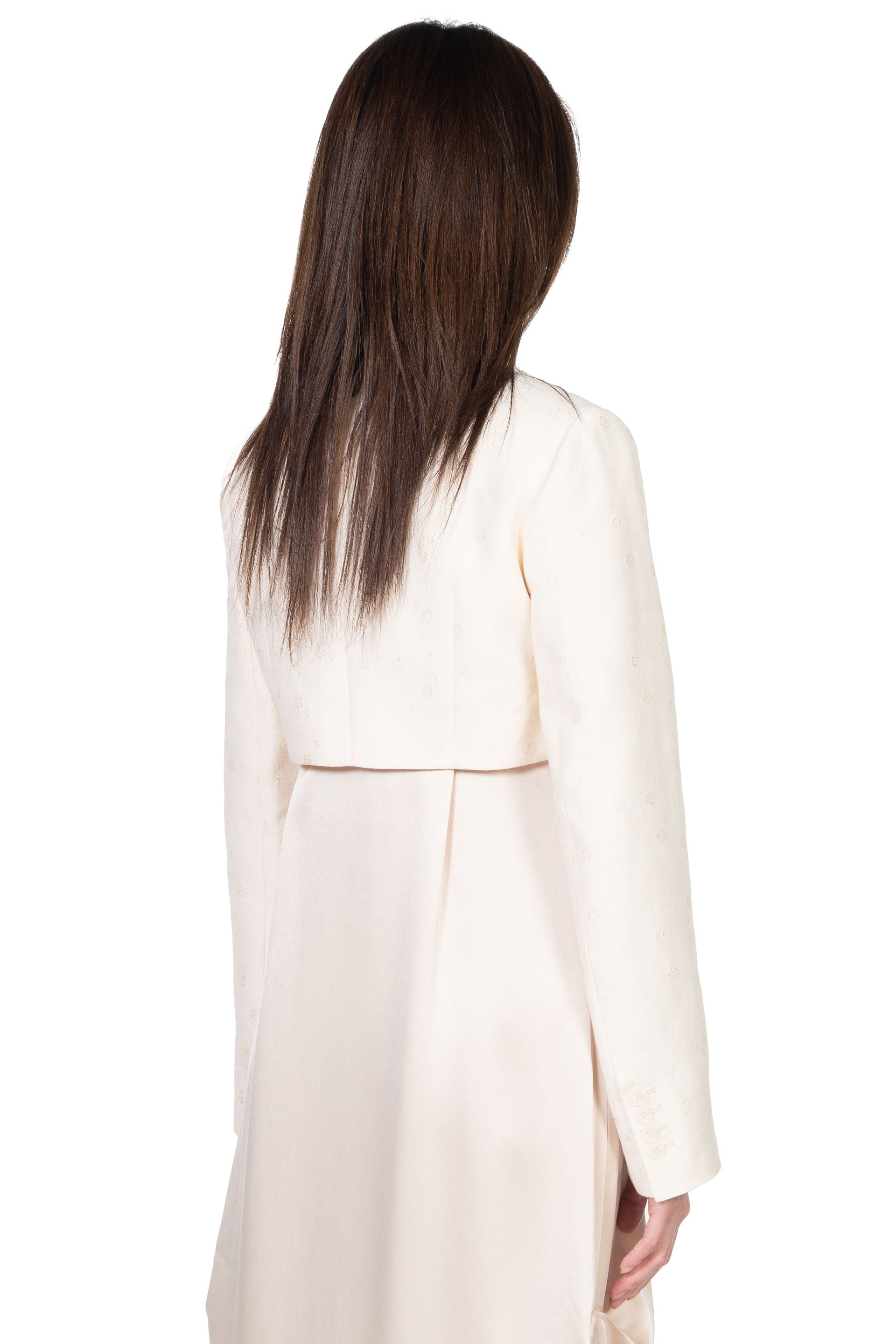 ii delivers a sense of originality, simplicity, spontaneity and a hint of childlike innocence pushing boundaries among ages to present qualitative collections with timeless touches designed for independent individuals as seen with the Ivory Beading Crop Jacket.