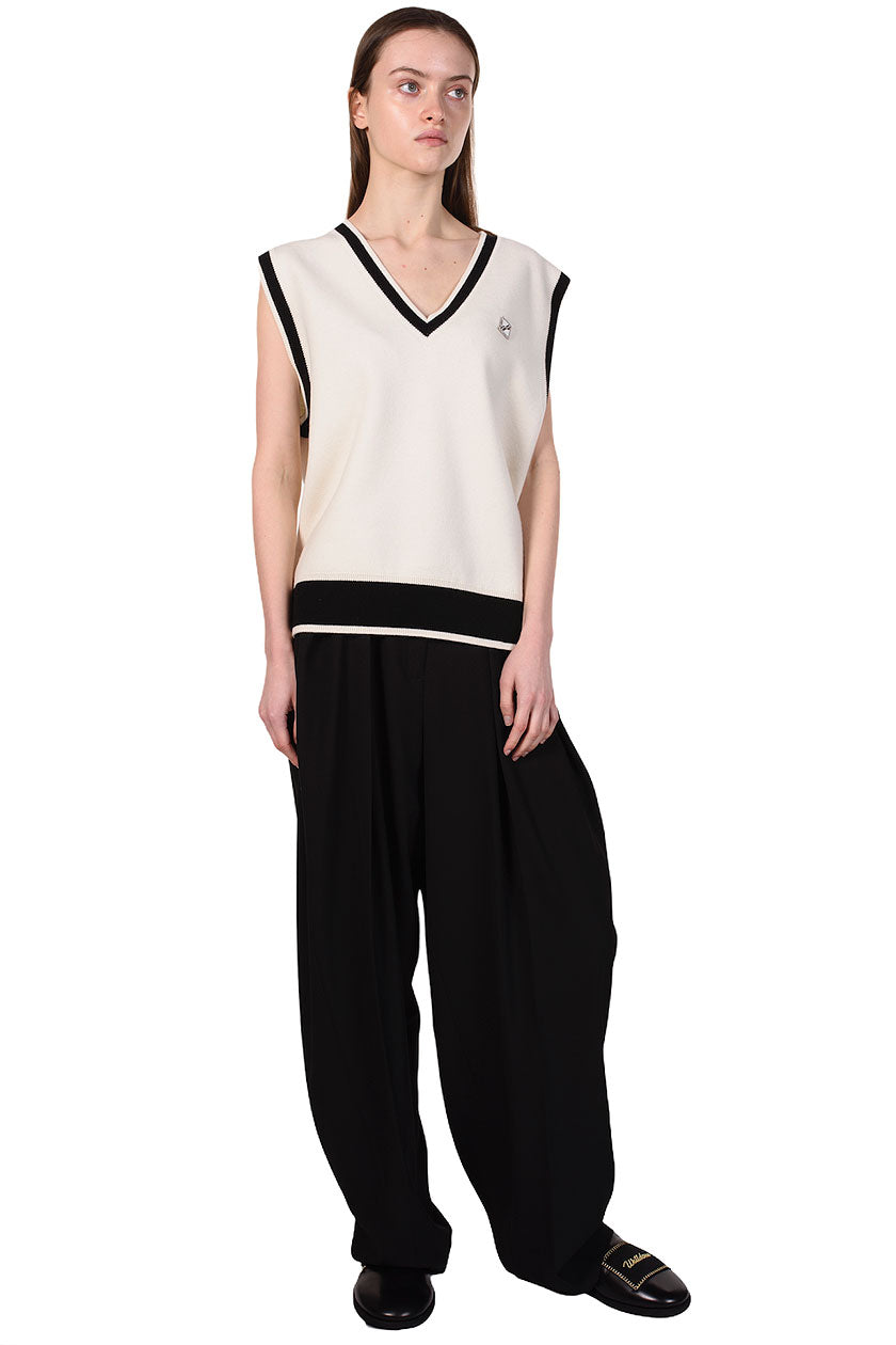 We11done merges late 1990s and early 2000s aesthetics creating a feeling of futurity. Functional, sportive, and sleek, We11done’s versatile designs refine classic elements into contemporary lifestyle pieces as seen with the Ivory Knit Vest.