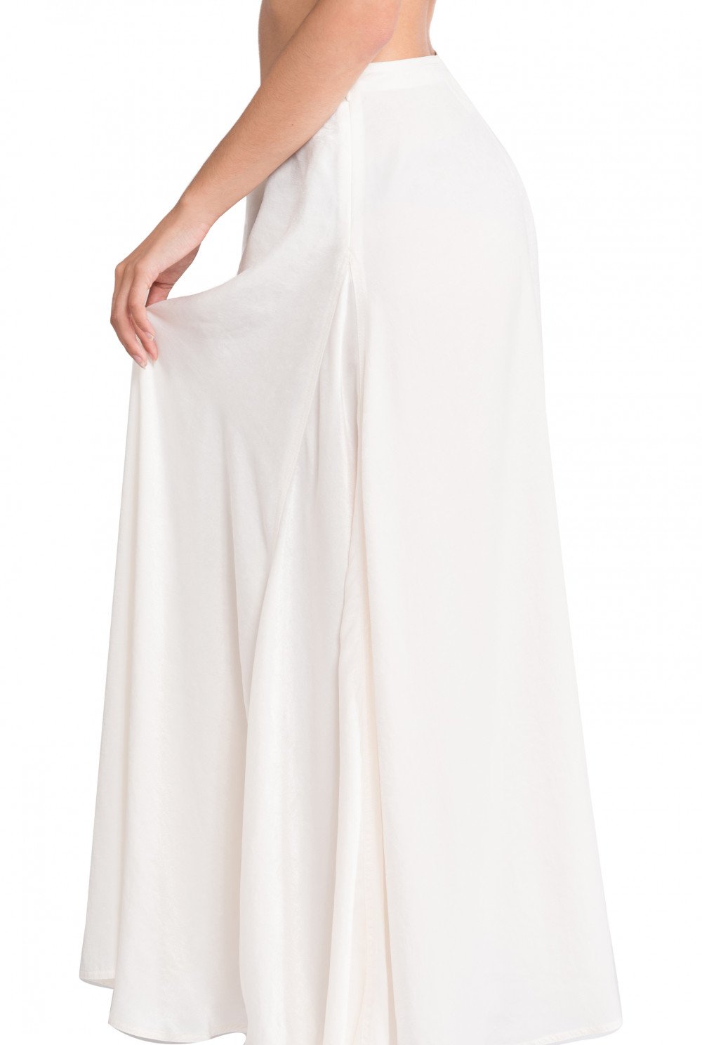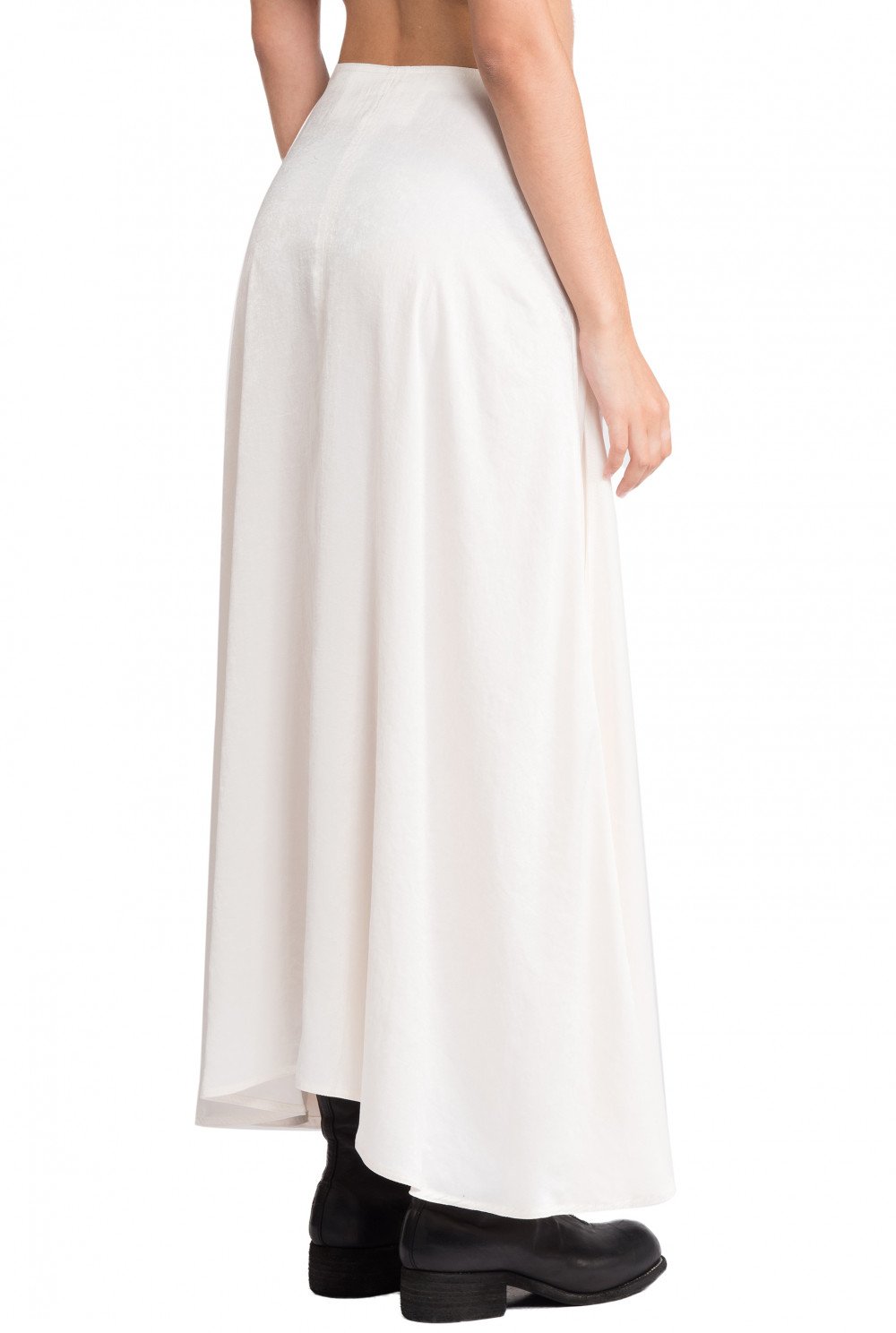 It is a long flared skirt of the silhouette falling naturally. It's a sleek fit with a relaxed flare and a clean fit without a waistband. A simple silhouette and stitching on the panel cutout combine to create a stylish look. It can be matched with various tops such as t-shirts or shirts to create a variety of moods.