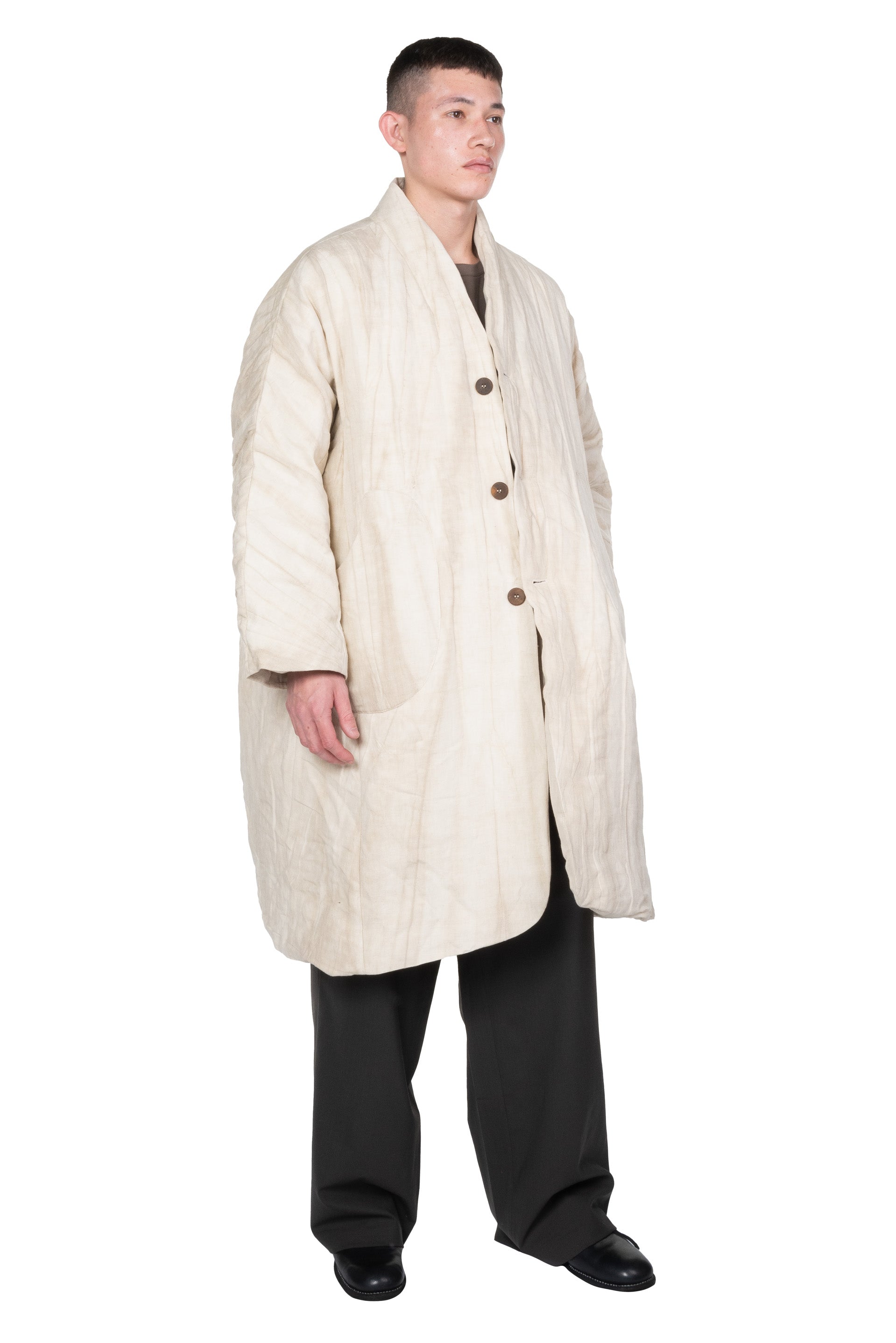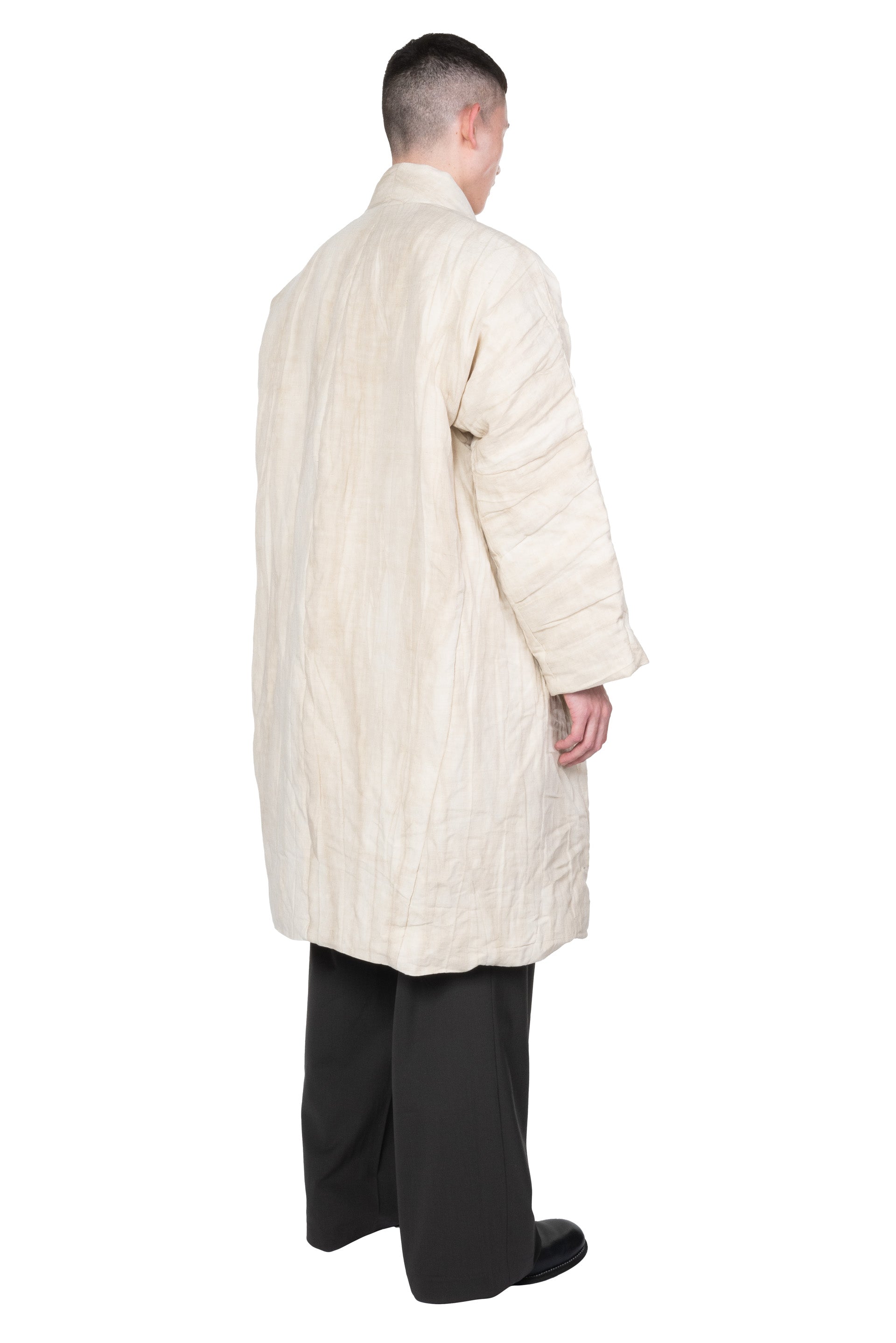 Kar Studio is an independent interior design studio, furniture and clothing brand exploring the cause and effect of aesthetics, integrating tradition and modernity. Kar is presenting modern design with Oriental philosophy. Inspired by art, literature, memories and emotions Kar focuses on design sensibility aiming to convey emotion that will resonate with people as seen with the Ivory White Padded Coat.