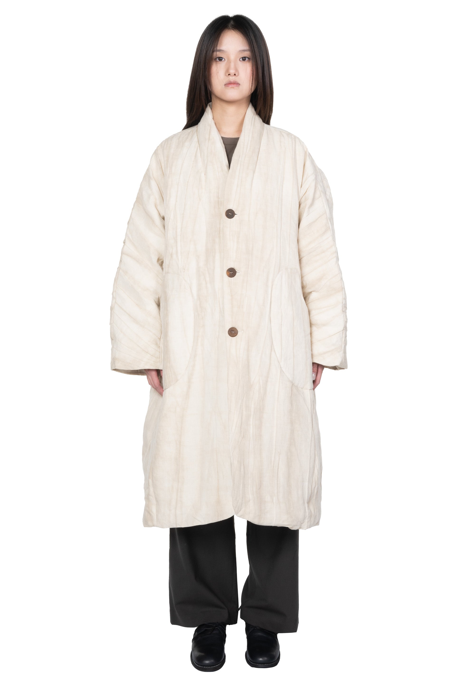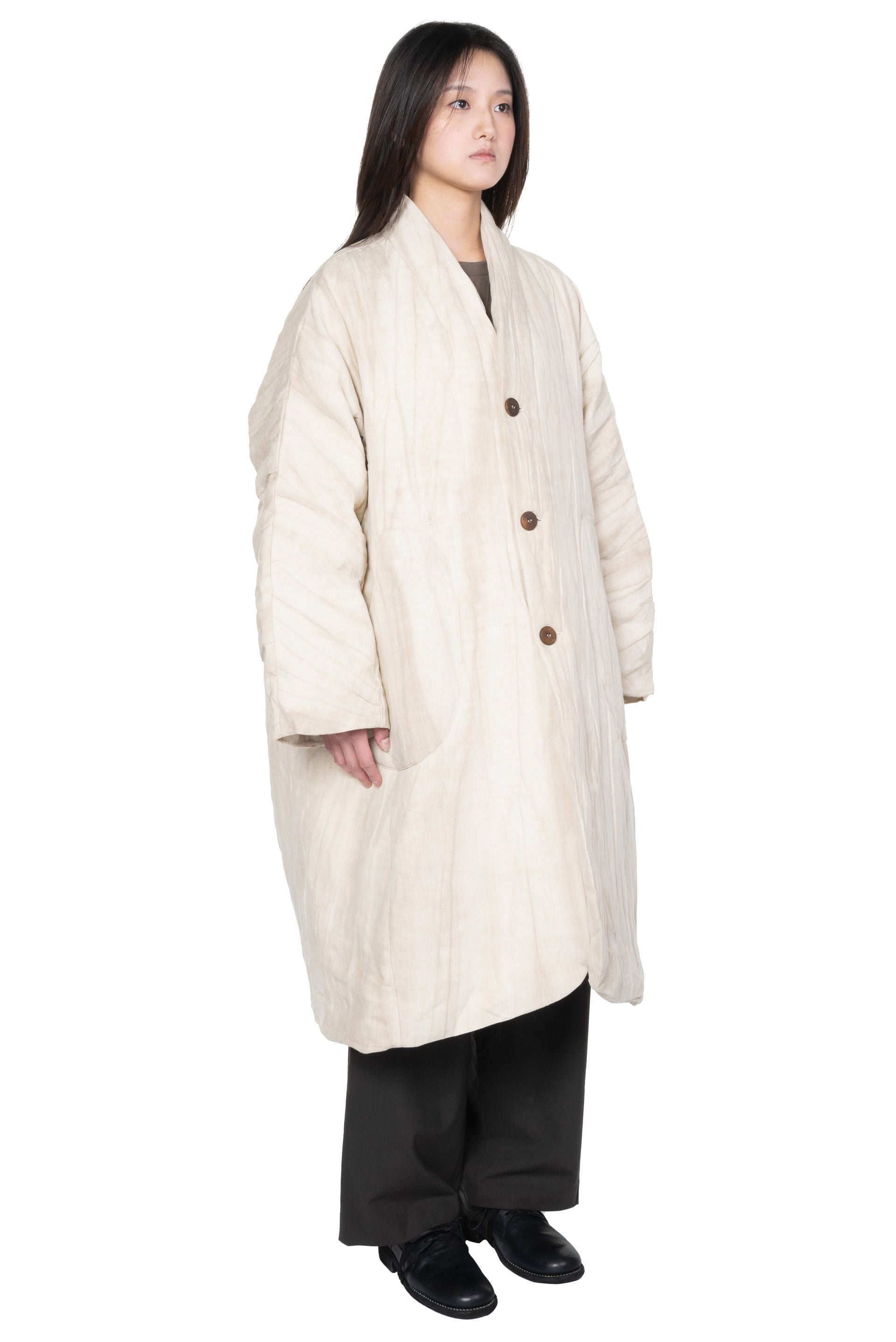 Kar Studio is an independent interior design studio, furniture and clothing brand exploring the cause and effect of aesthetics, integrating tradition and modernity. Kar is presenting modern design with Oriental philosophy. Inspired by art, literature, memories and emotions Kar focuses on design sensibility aiming to convey emotion that will resonate with people as seen with the Ivory White Padded Long Coat.