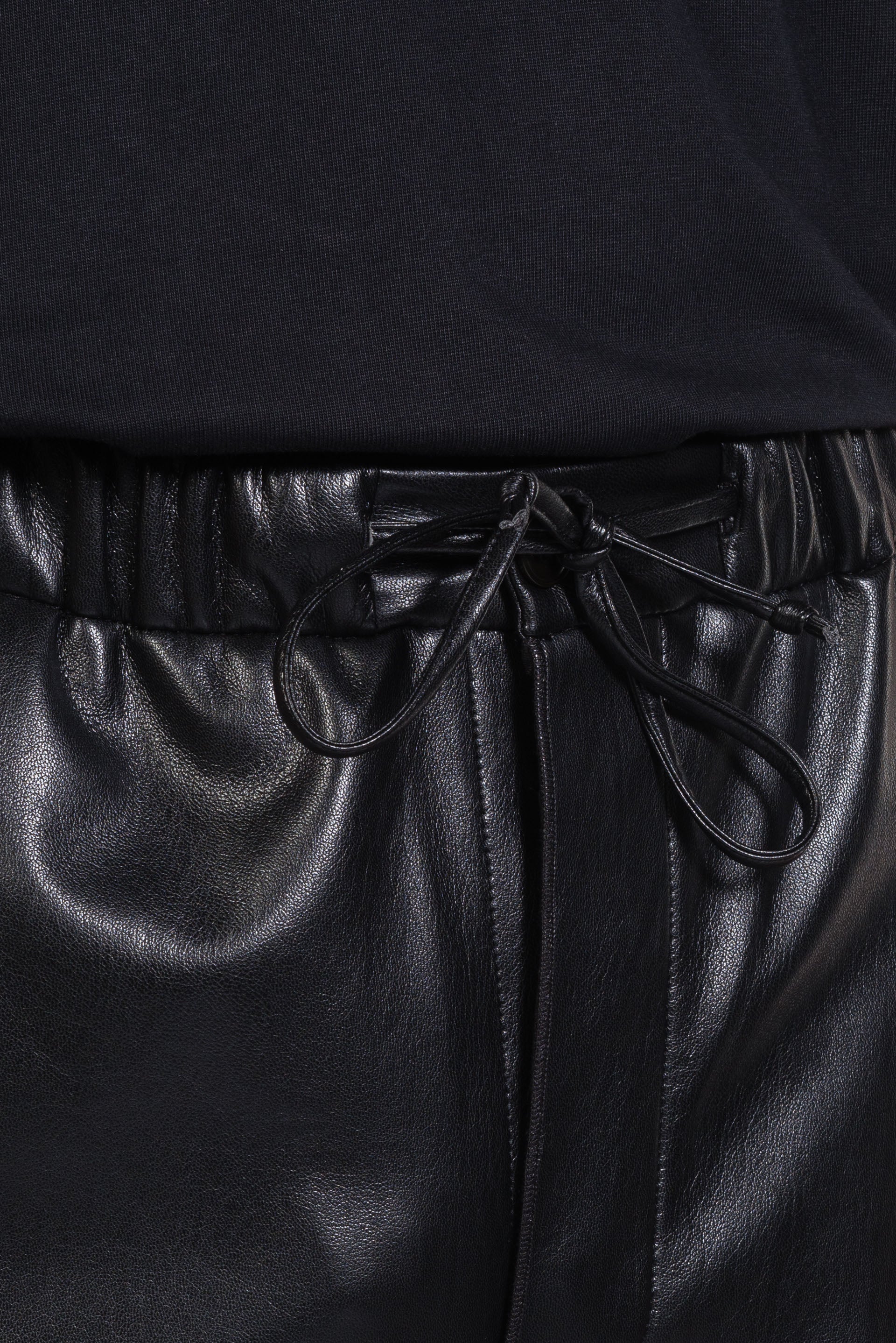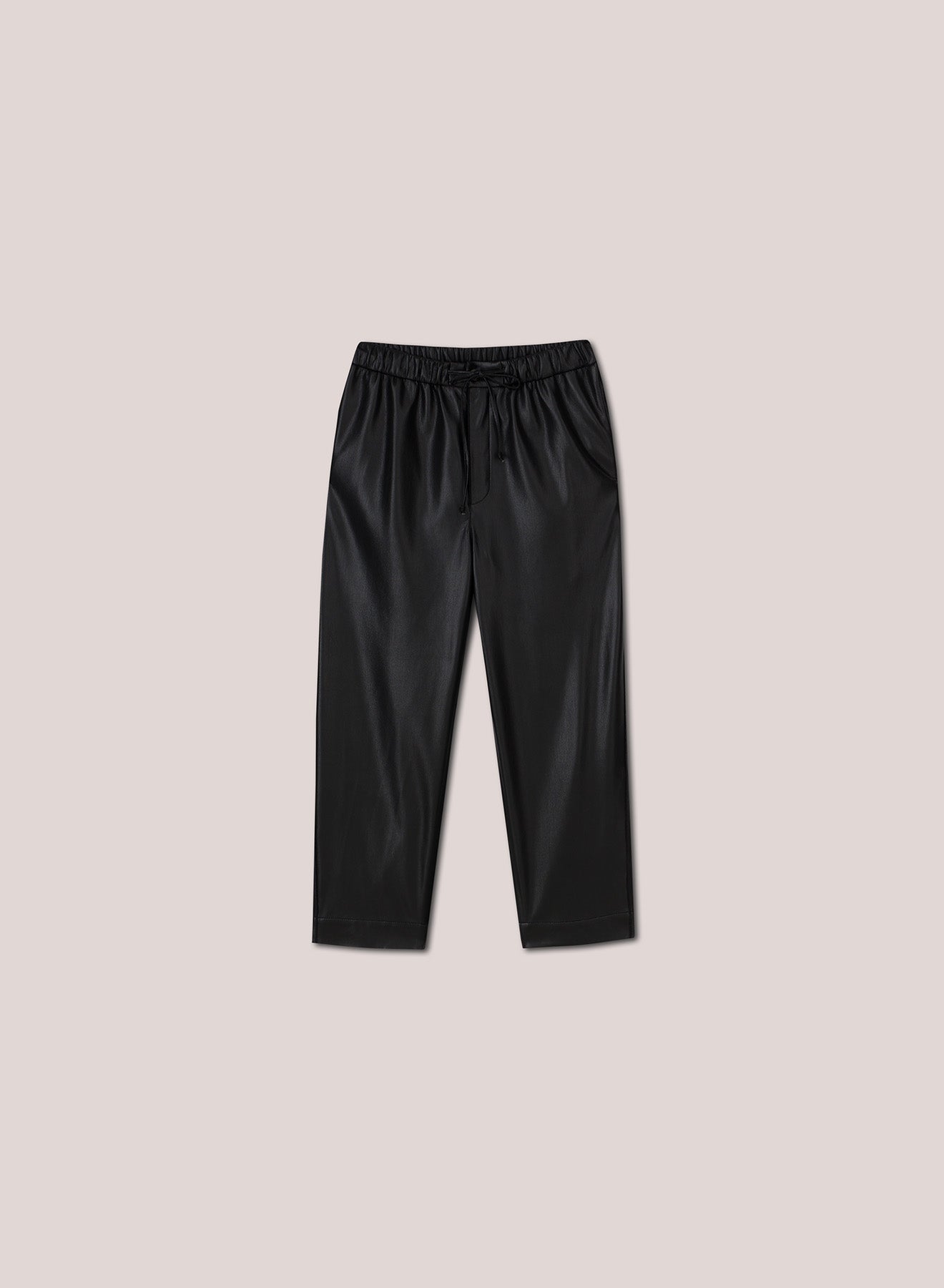 This easy-to-wear casual pant has a relaxed shape and a wide leg. Dynamic and versatile, the Jain features a drawstring waist and is crafted from our classic vegan leather.