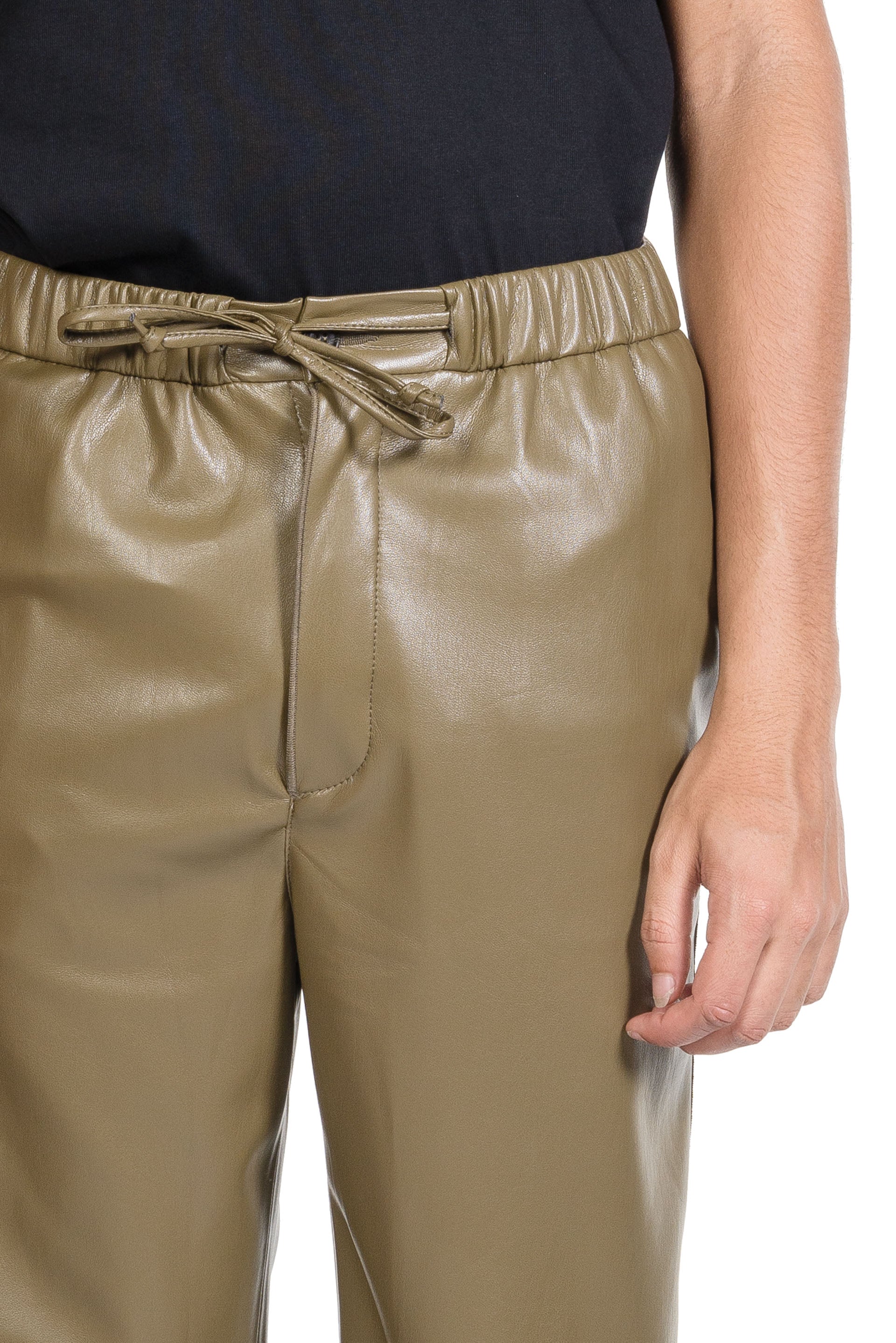 This easy-to-wear casual pant has a relaxed shape and a wide leg. Dynamic and versatile, the Jain features a drawstring waist and is crafted from our classic vegan leather.