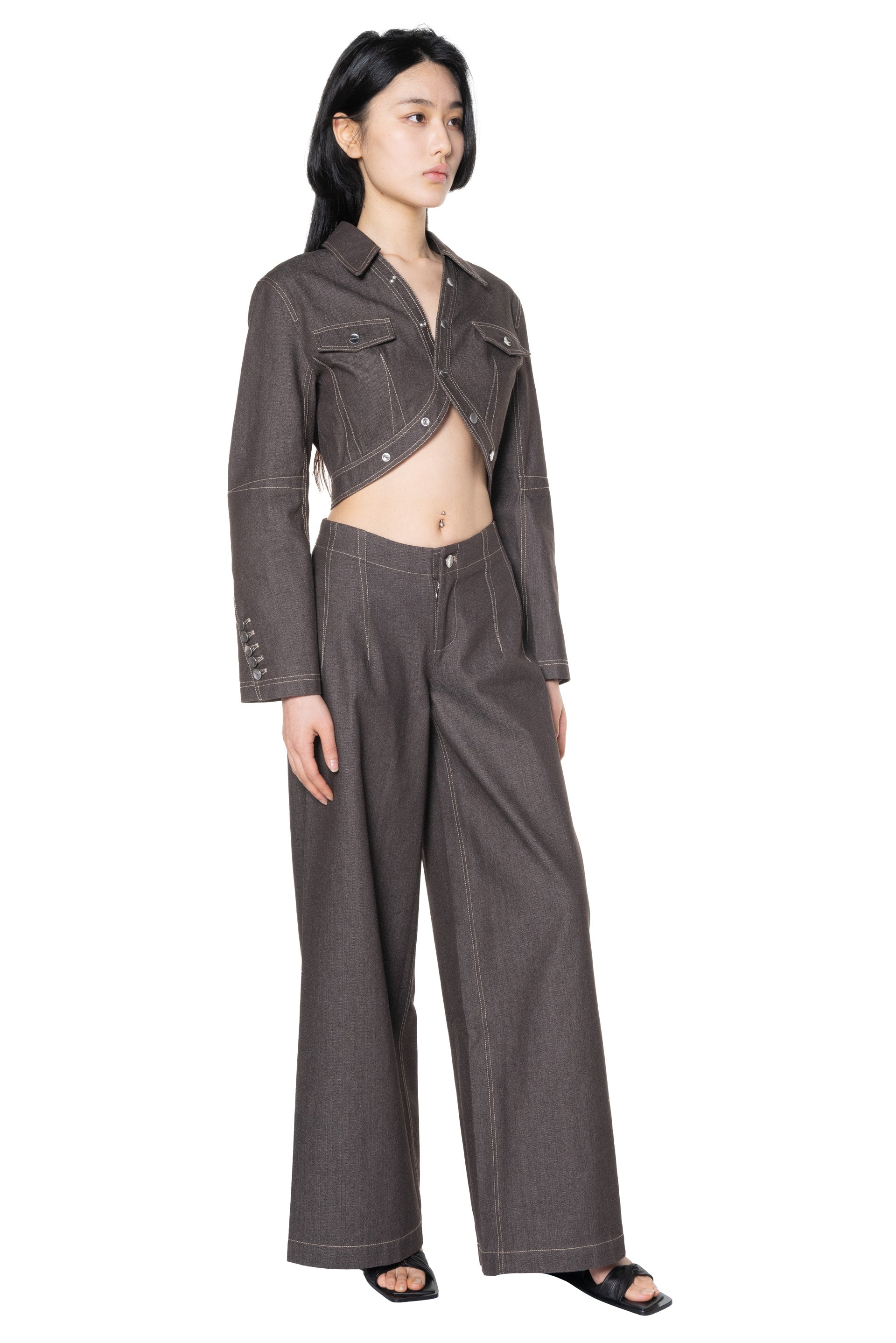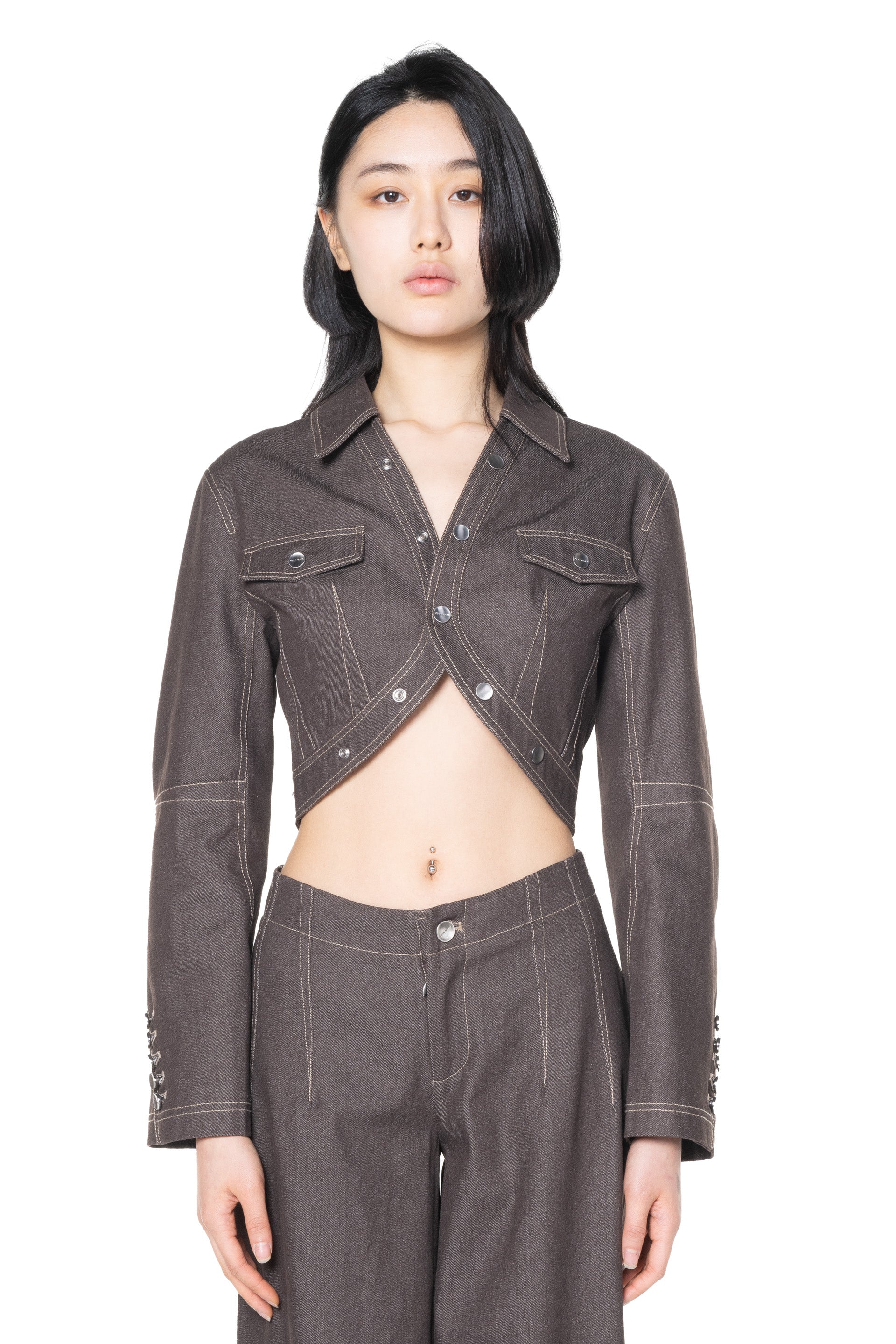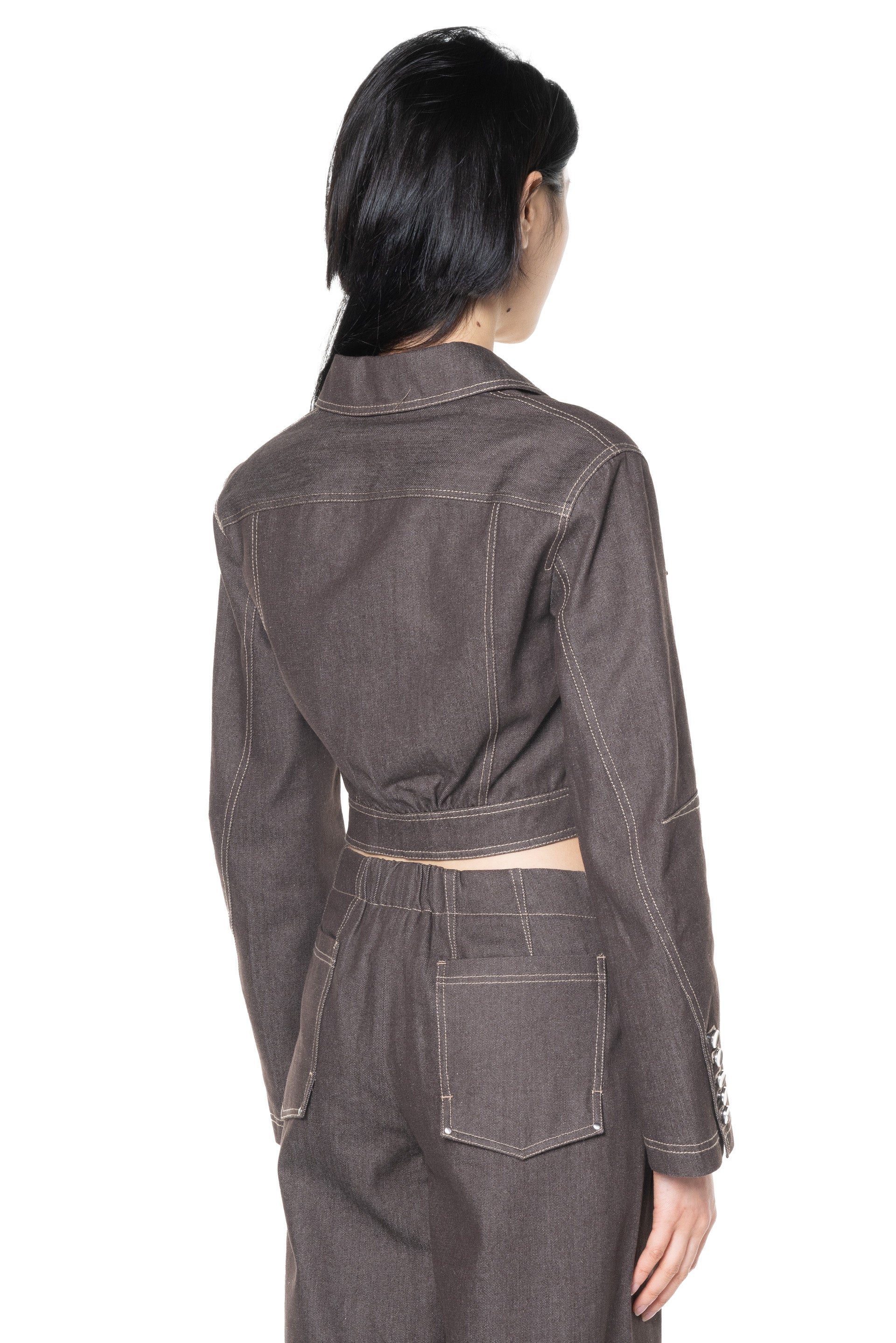 OUDE WAAG strikes a balance between Asian aesthetics and Western cutting. It is at the heart of designer’s philosophy: celebrating the power of women, yet simultaneously critiquing the ongoing objectification and idealisation of the body as you can see with the Jean Cropped Jacket.
