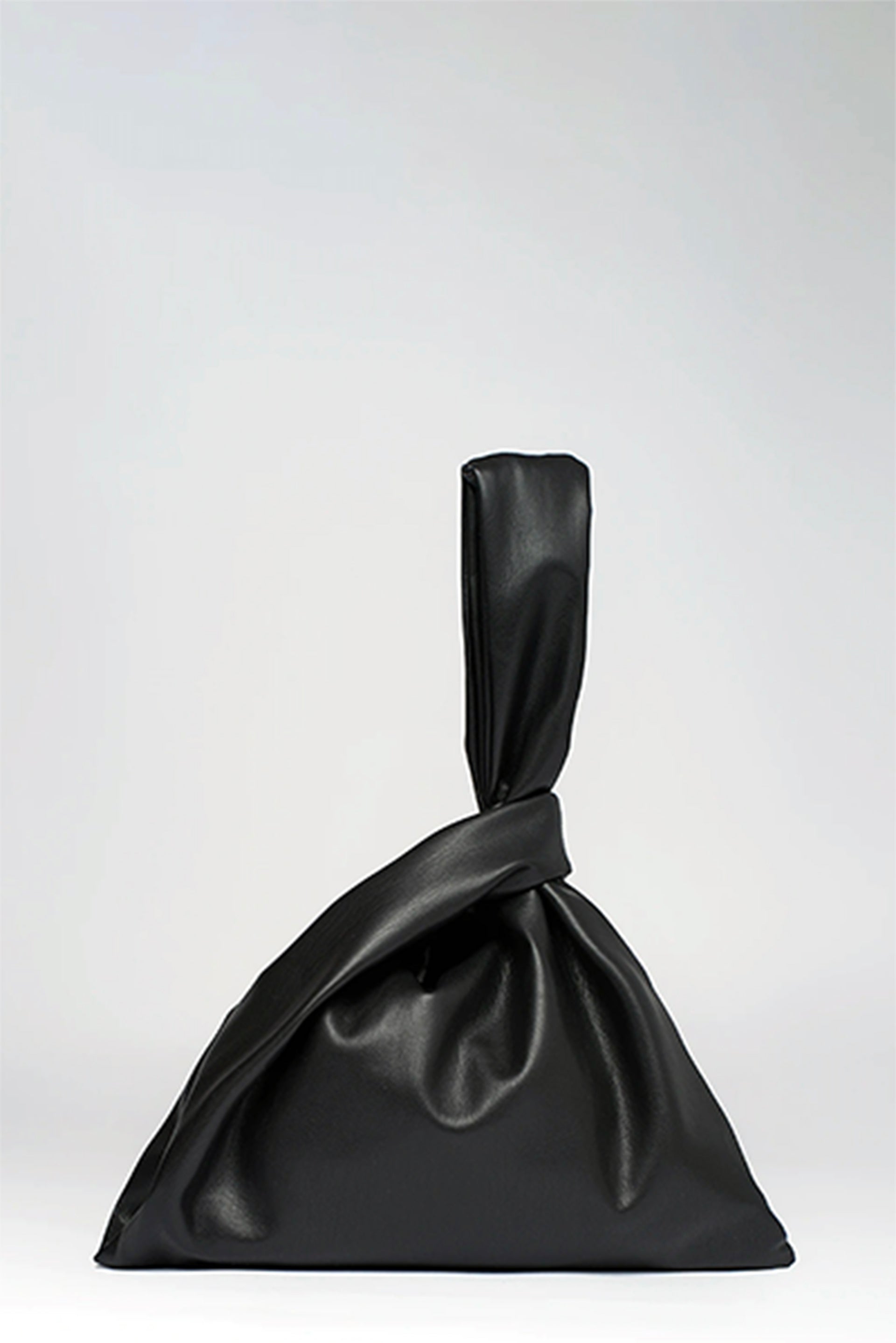 Jen clutch in Large made from Nanushka signature alt-leather that holds the slouchy triangular shape beautifully. It's perfectly sized to hold your phone, card holder and keys. Slip your wrist through the looped strap.