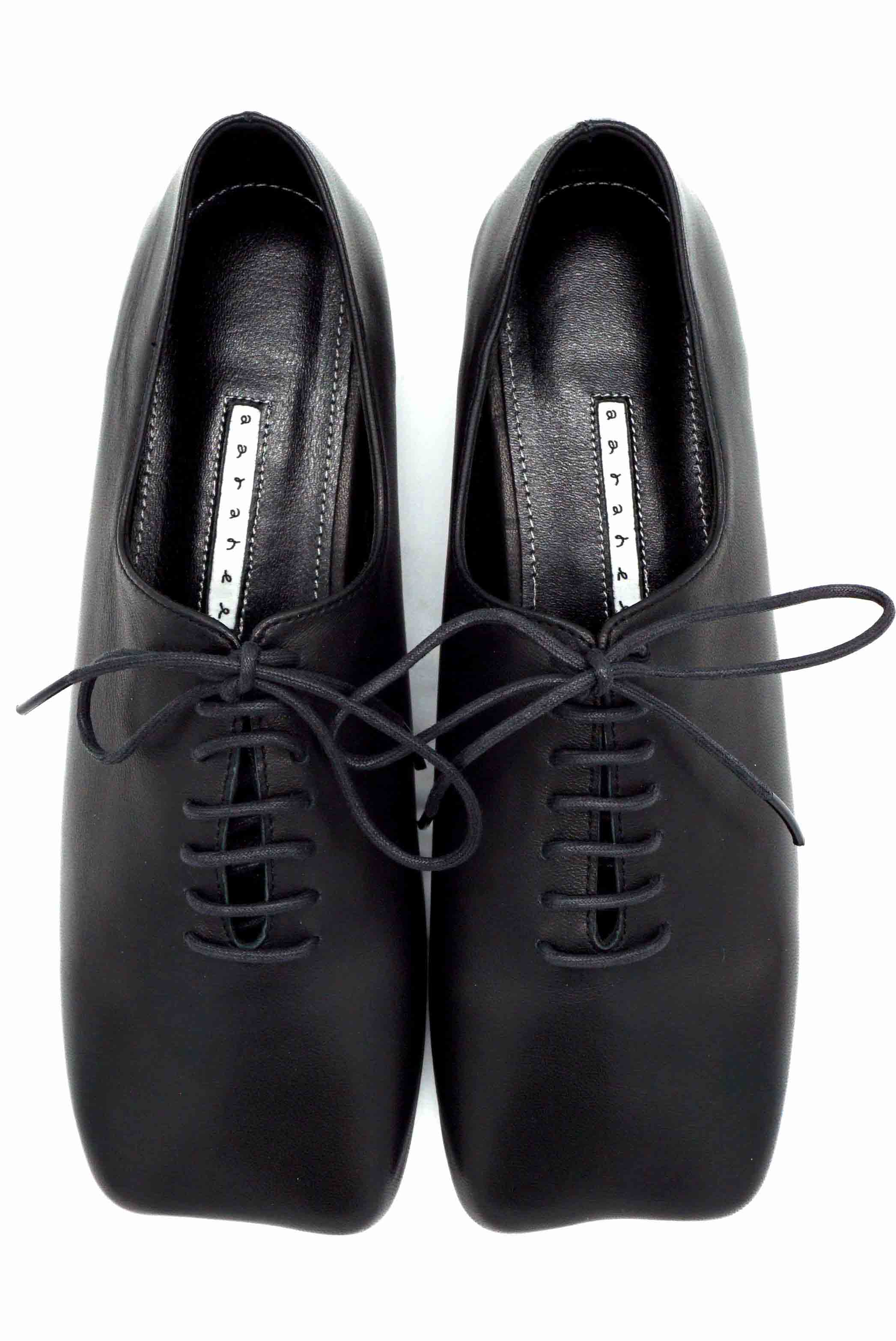 Crafting elevated pieces of everyday life with a subtle accent of sophisticated design. aarahee explores an unconventional approach to create distinctive styles aiming to focus on comfort and sensibility based on quality materials as seen with the Jimin Lace Up Loafers Black.