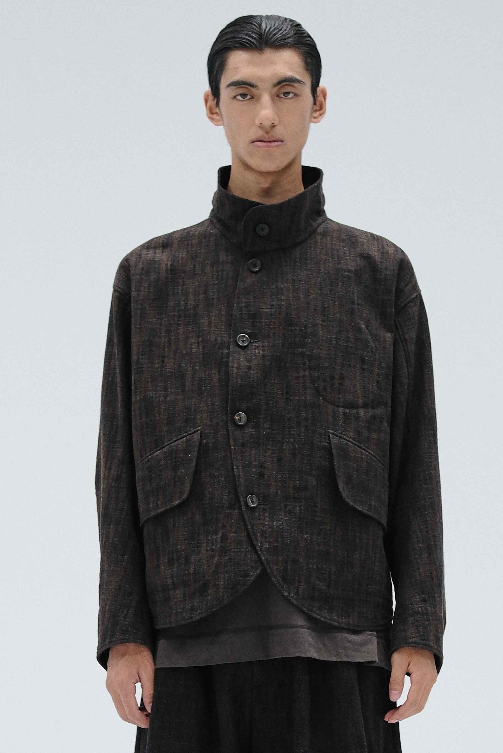 ATTEMPT reconstructs different styles and elements to create a new aesthetic system. By taking a more experimental approach to creation and production, which involves an understanding of the past and the current form of society, Attempt is creating an aesthetic form that is anchored in the present but different from it. It must ultimately be a product that cannot be defined as seen with the Kalary Jacket Dark Brown