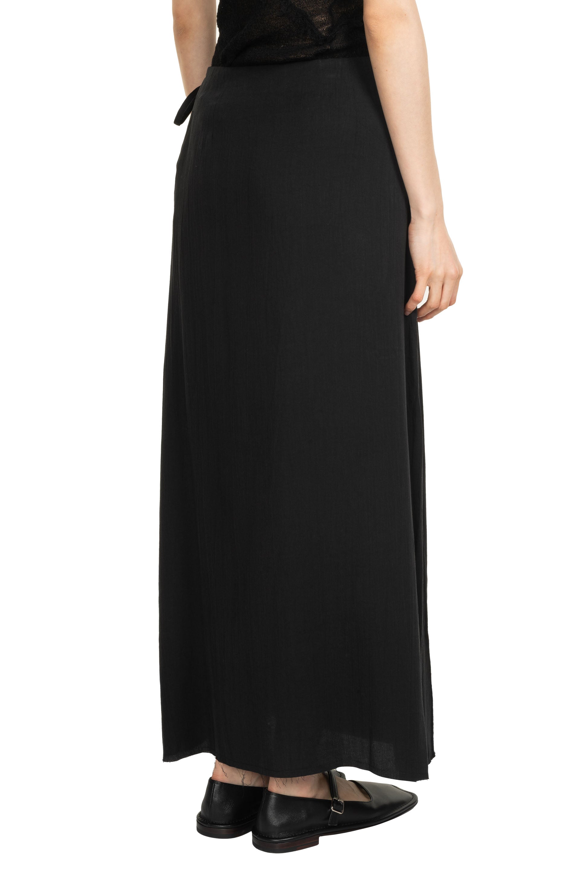 Professor e Lace Layer A-line Skirt in Black. A-line. Wrap around. Two side pockets. Drawstring closure at side. Lace details throughout. Layered.