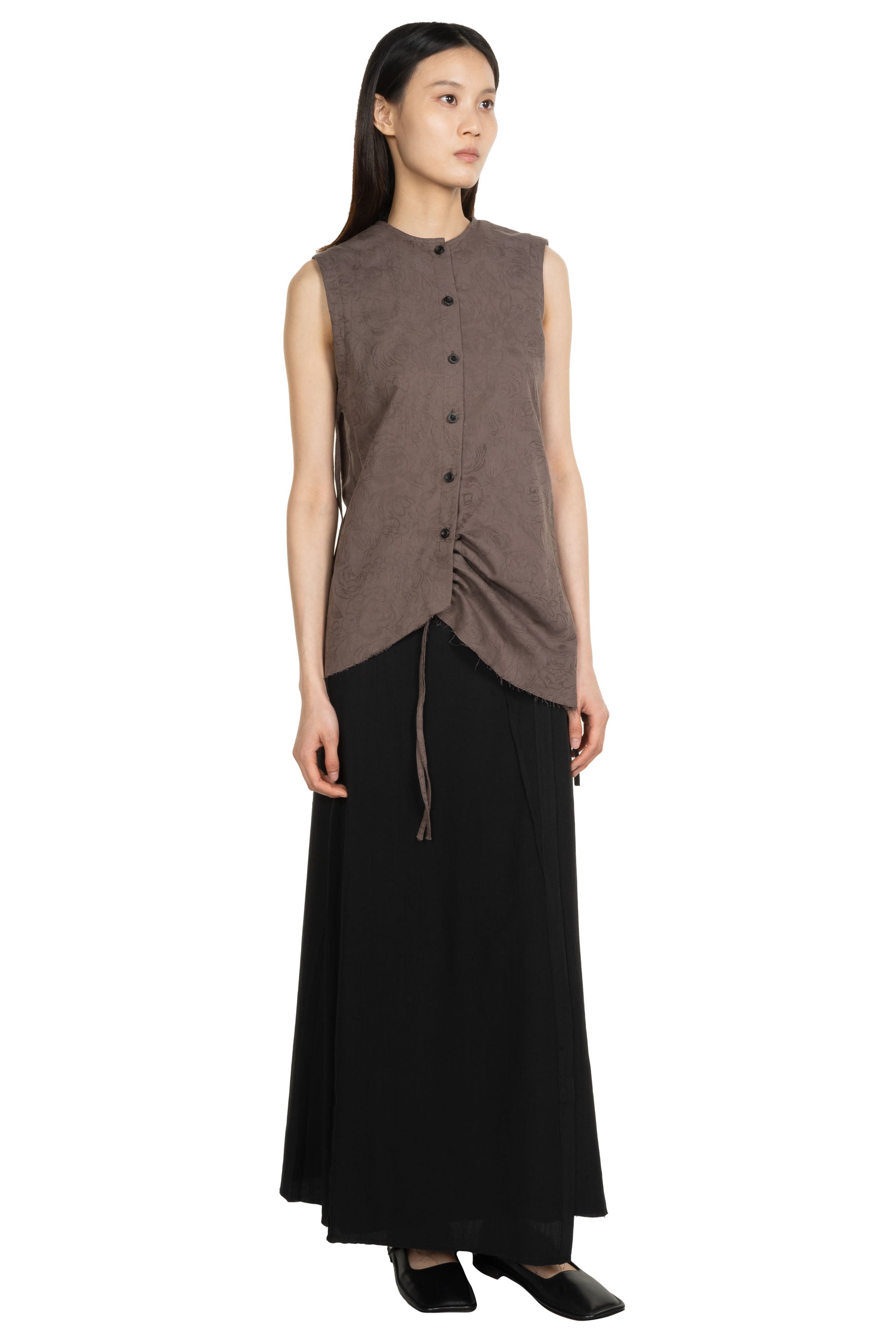 Professor. E understands the time of aesthetics from the use of cotton, hemp and wool. Fabric stitching, patching, designs without edge trimming, deconstruction, and reproduction are all Professor. E's signature elements creating classic immortal designs that can be viewed with the Lace Layer A-line Skirt.