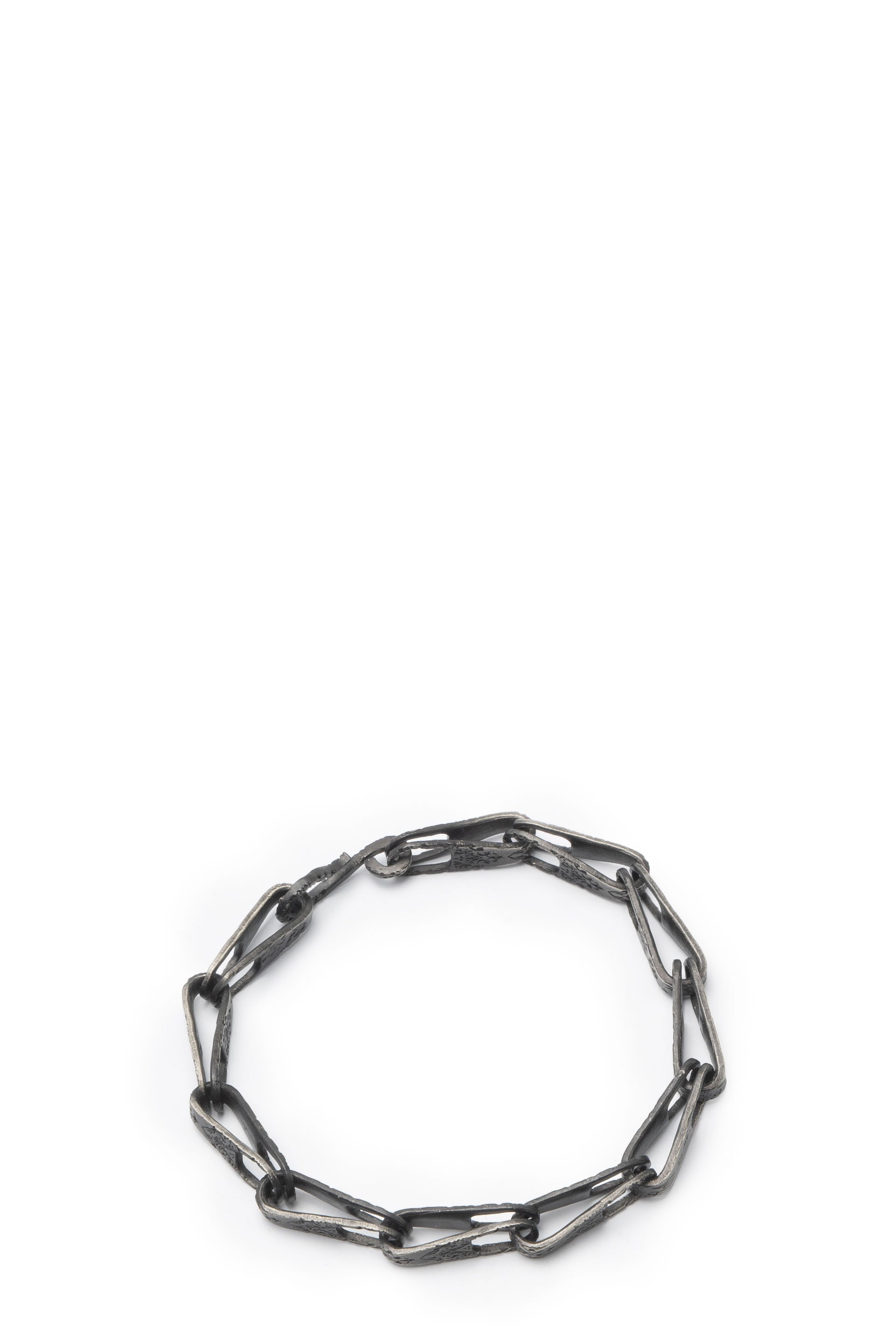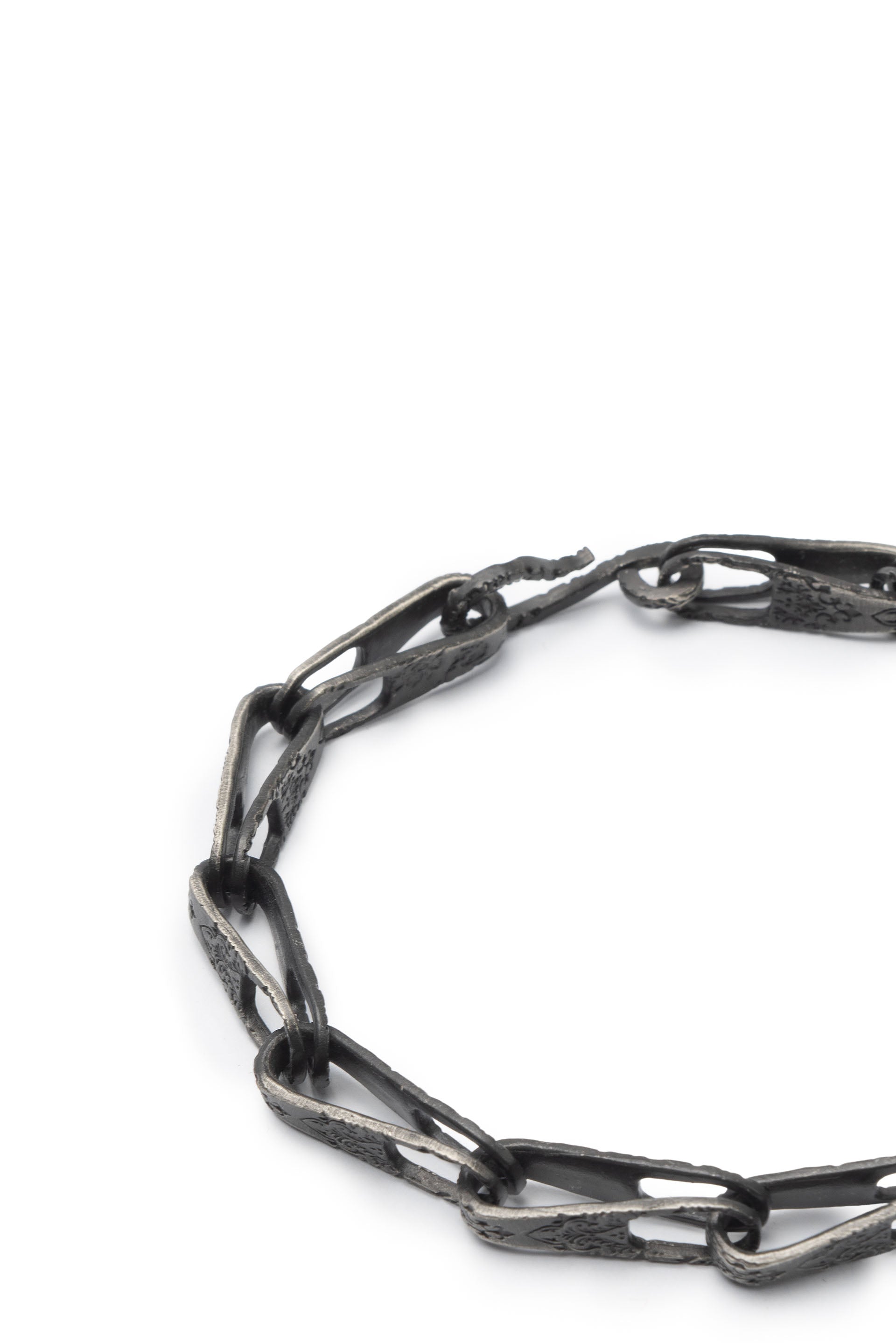 Gunmetal Laser Bracelet. Modified anchor chain bracelet in gunmetal-tone sterling silver. Hook-eye fastening