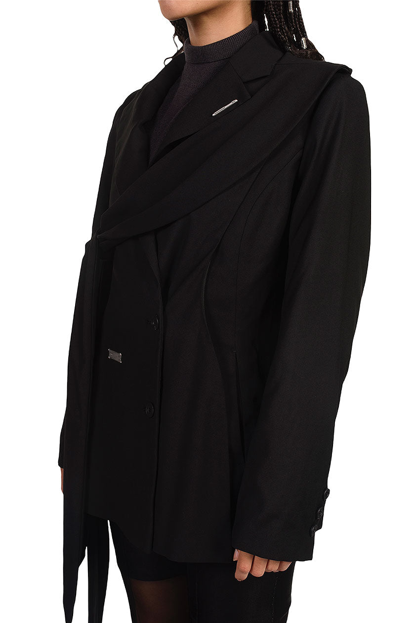 C2H4 concept ranges from hypothetical space scientists producing sport and streetwear-inspired designs creating an intergalactic underground culture. Using her studio as a laboratory, Chen’s meticulously elevates wardrobe cornerstones as seen with the Layered Arc Cutting Tailored Jacket.
