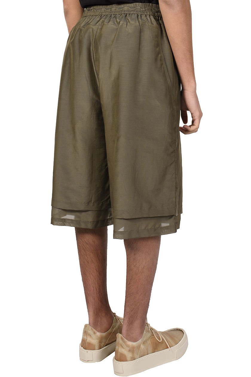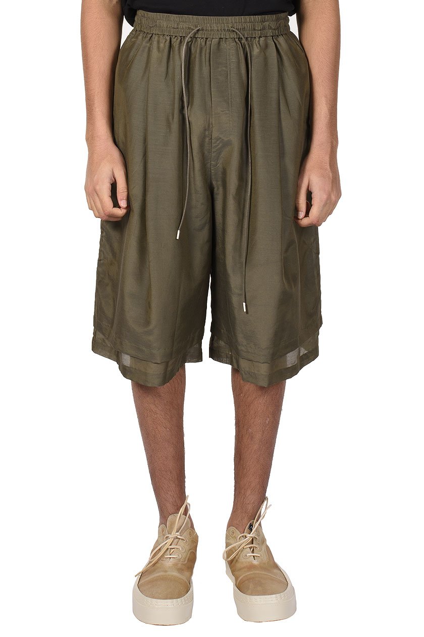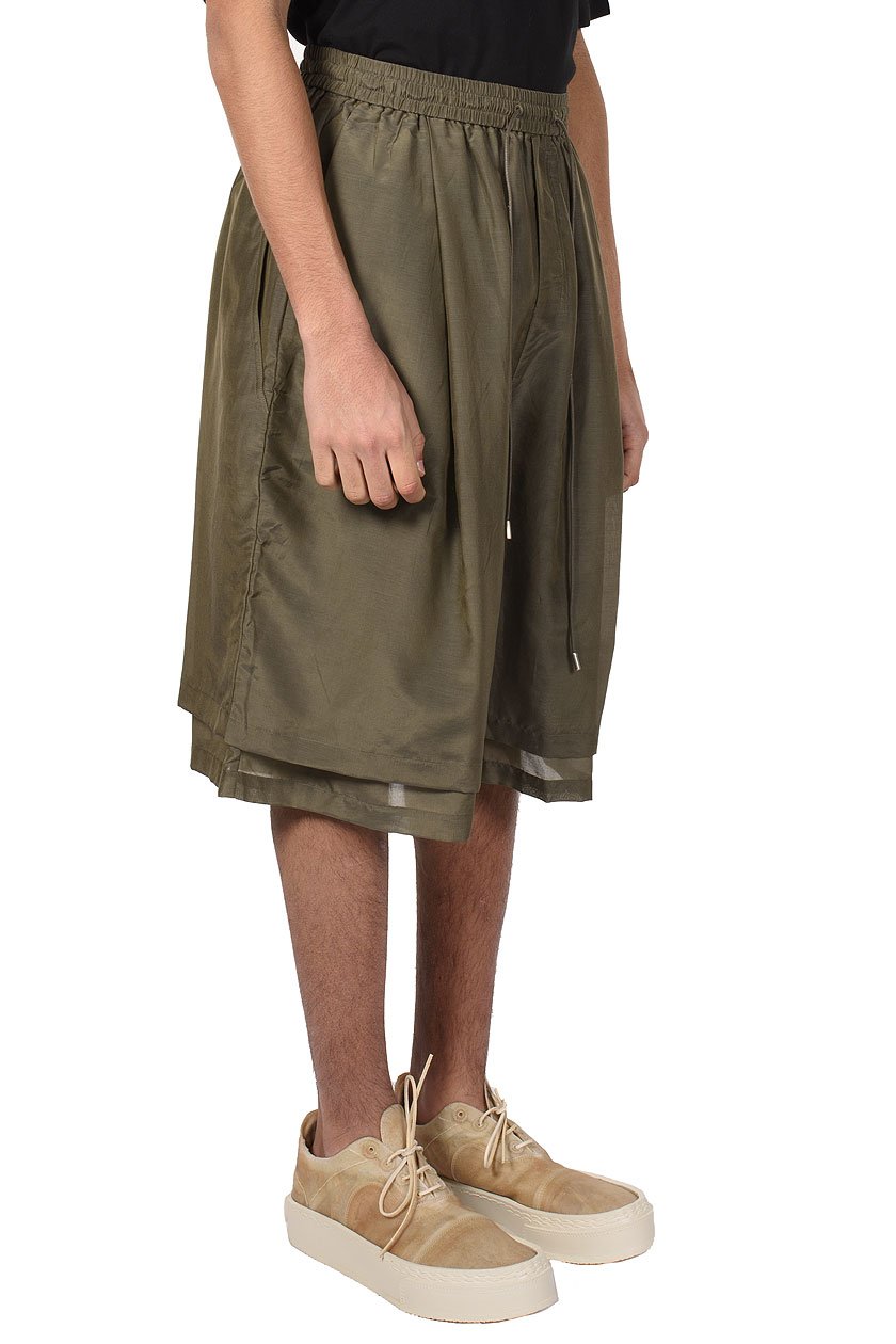 Joe chia is built immensely around exceptional construction, fine fabrications and precise tailoring, entwining classicism with contemporary references that stand the test of time, challenging and reimagining duality with innovation and a sense of audacity as you can see in the Layered drop crotch Shorts.