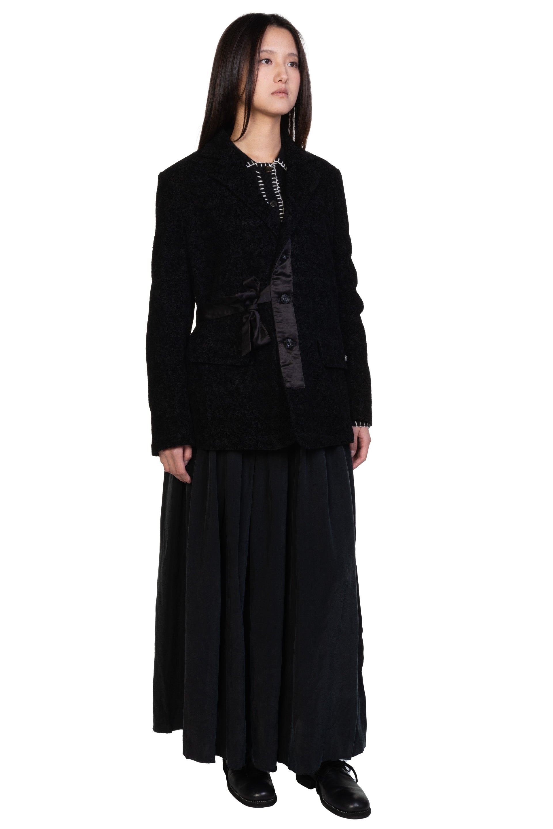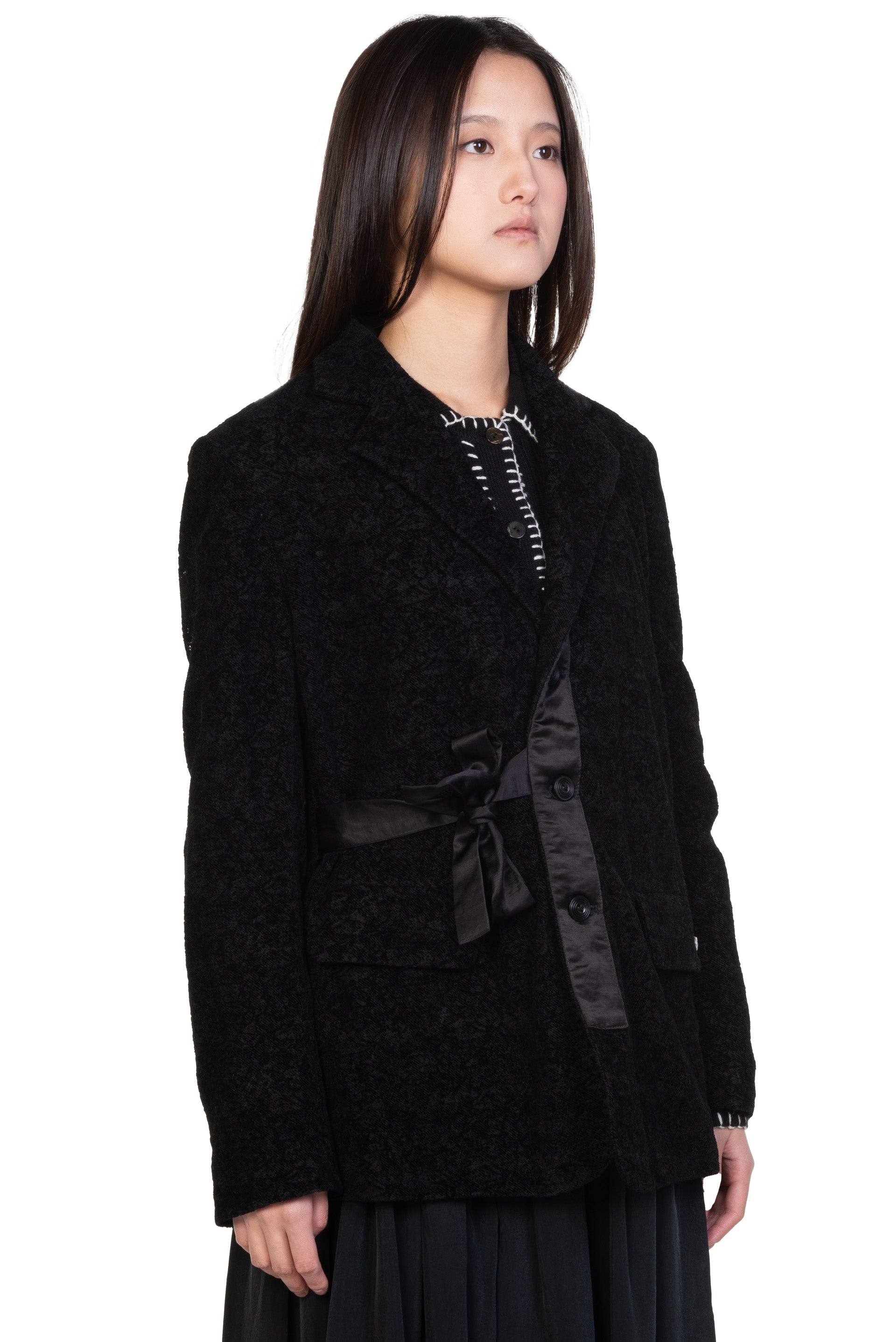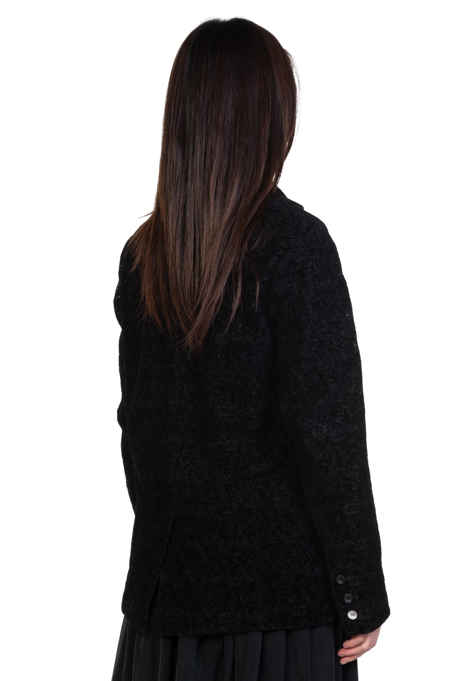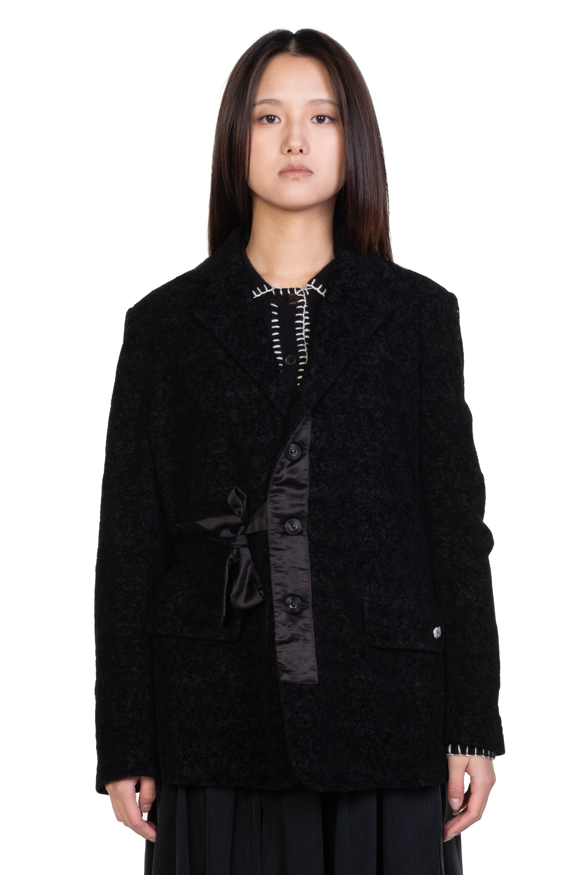 A Tentative Atelier aims to explore artistic handicraft elements and innovative forms and silhouettes on garments combining with neo-vintage effect. The label does not only focus on fashion, it is a platform to encourage and sustain the spirit and tradition in craftsmanship to create new form as seen with the Layered Lace Blazer.