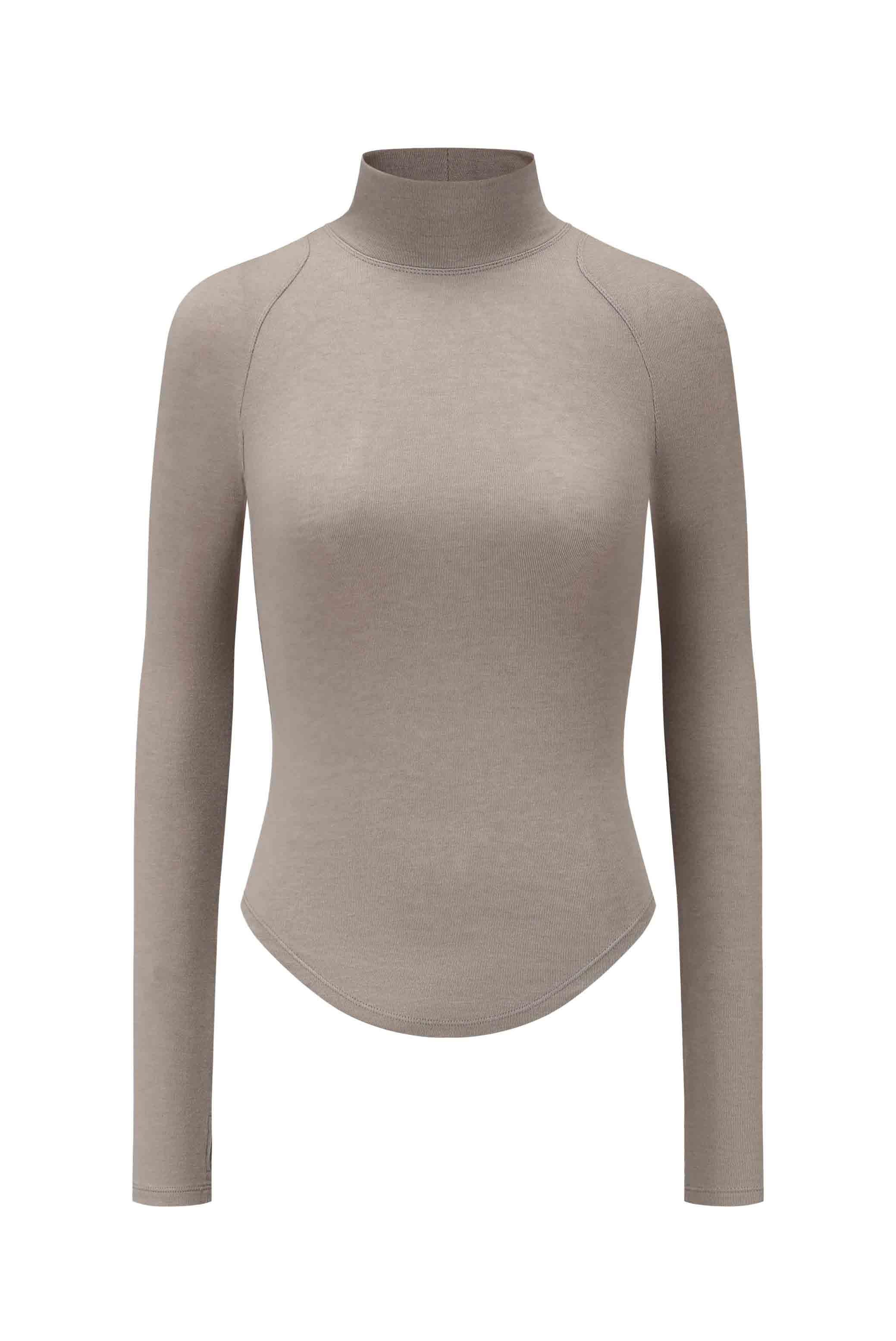 This top is crafted from a Lyocell–wool blend that is soft, breathable, and has plenty of stretch. This slim-fit top accentuates the upper body, with a mock neckline and raglan sleeves that subtly enhance the shoulders and neckline. Minimalist yet thoughtfully detailed, it balances simplicity with refinement.