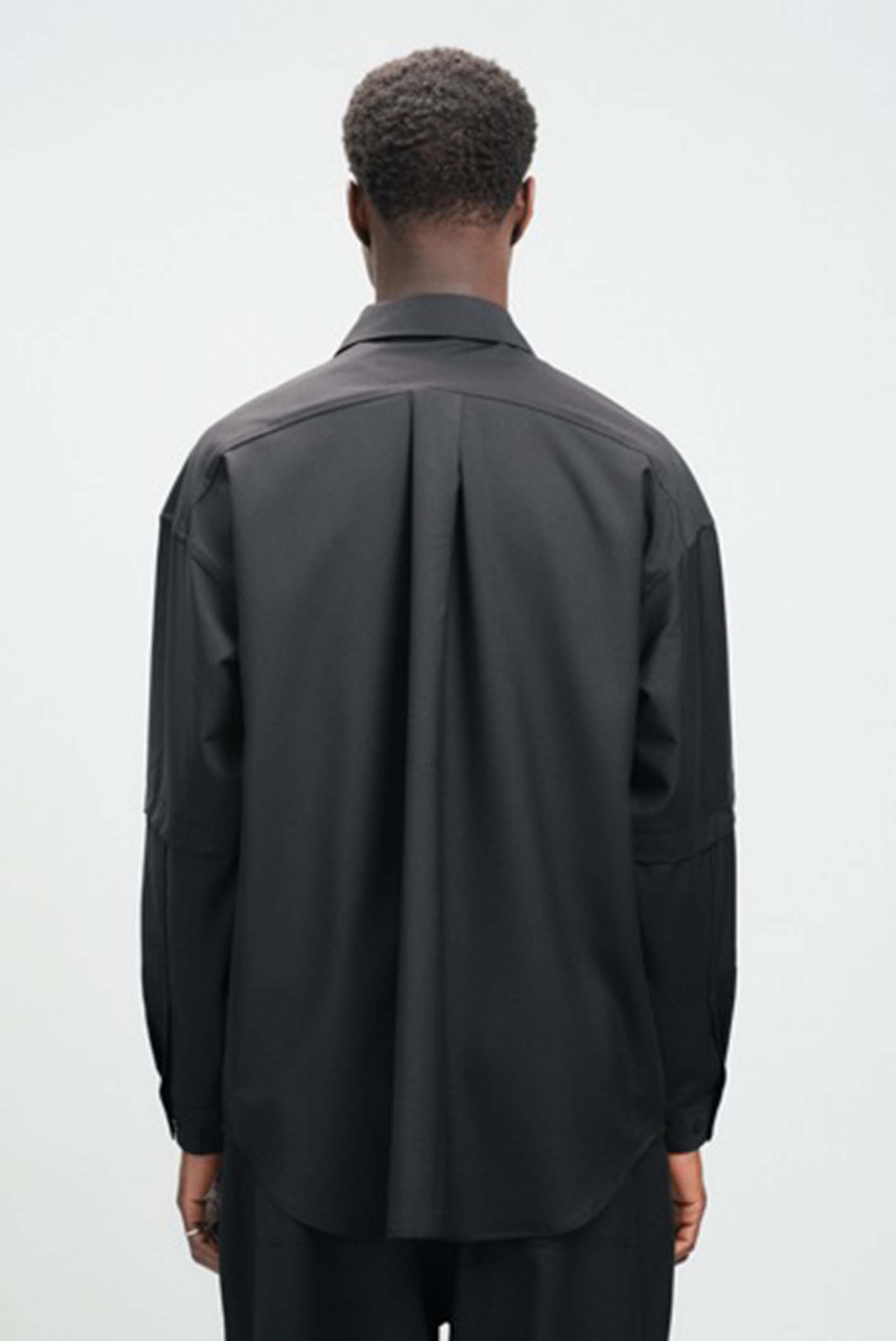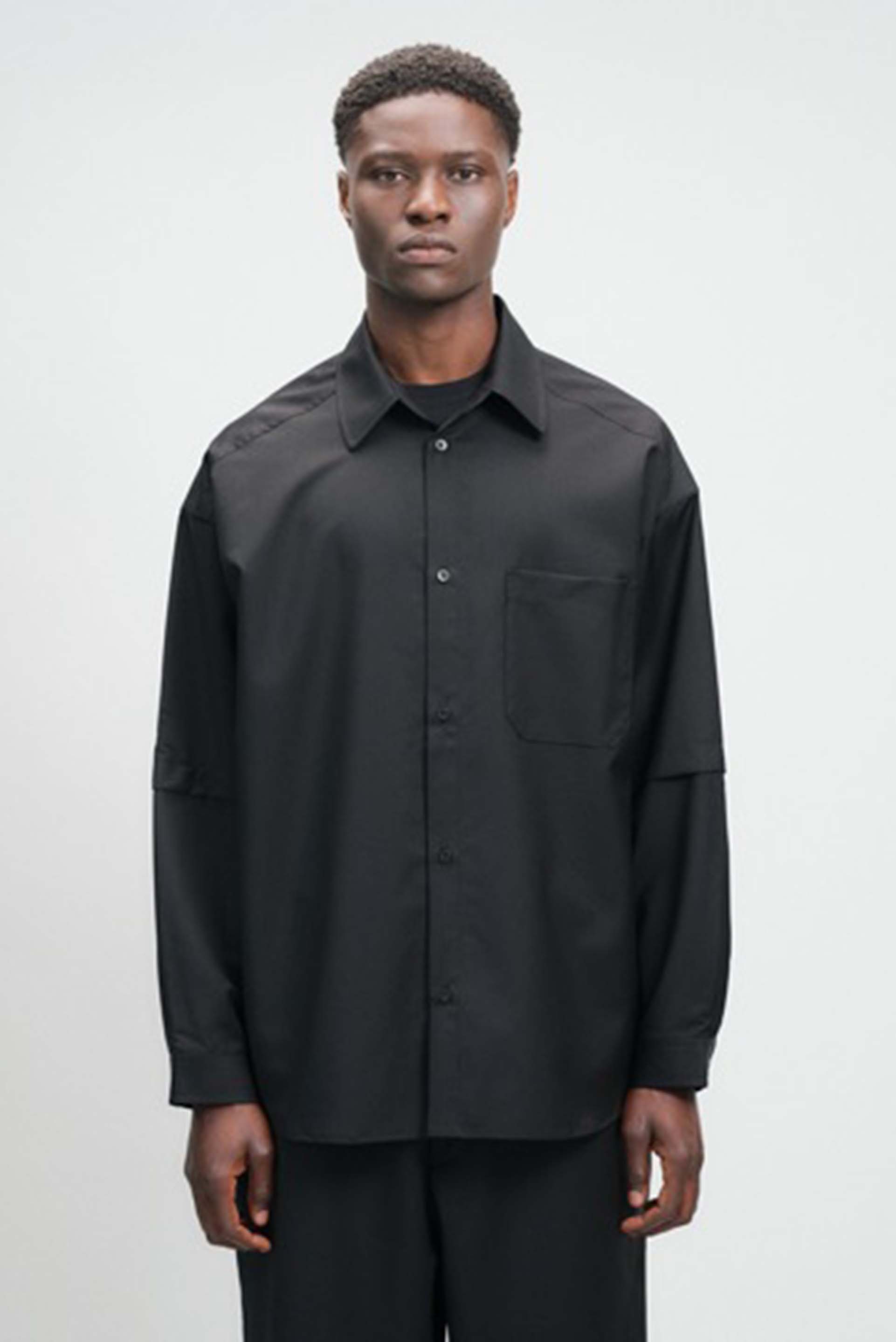 Lownn Layered Shirt Black. Horn buttons. Relaxed fit. Double Layered sleeves. Dropped shoulders. Button closure at front.