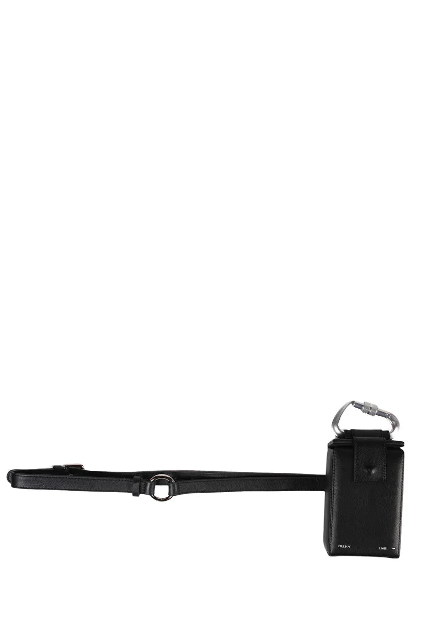 Custom hardware trimmings. Signature HELIOT EMIL Small Box Bag with belt construction. Silver Heliot Emil ™ logo on the front. Metal carabiner top handle. Single compartment. Adjustable strap. Cow grain leather. Micro fibre suede lining