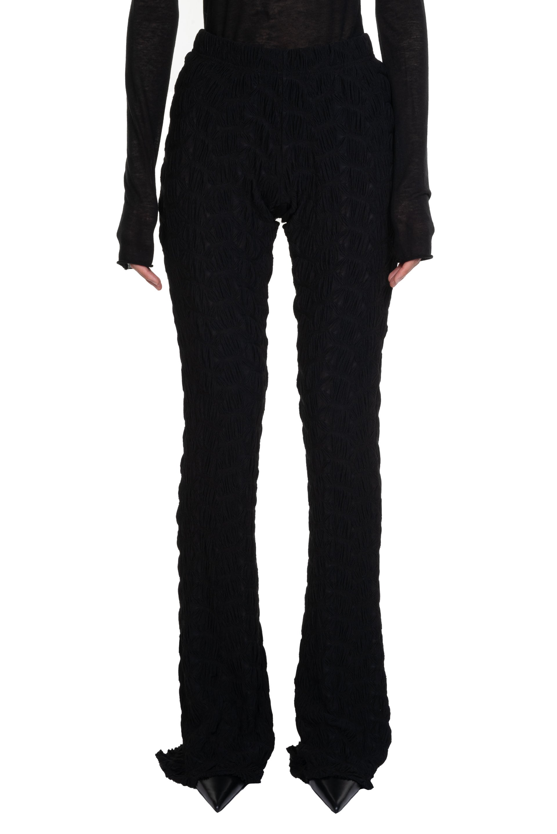 Song for the Mute leggings in a web textured poly spandex blend. Featuring an elasticated waist band and slight flared hem.