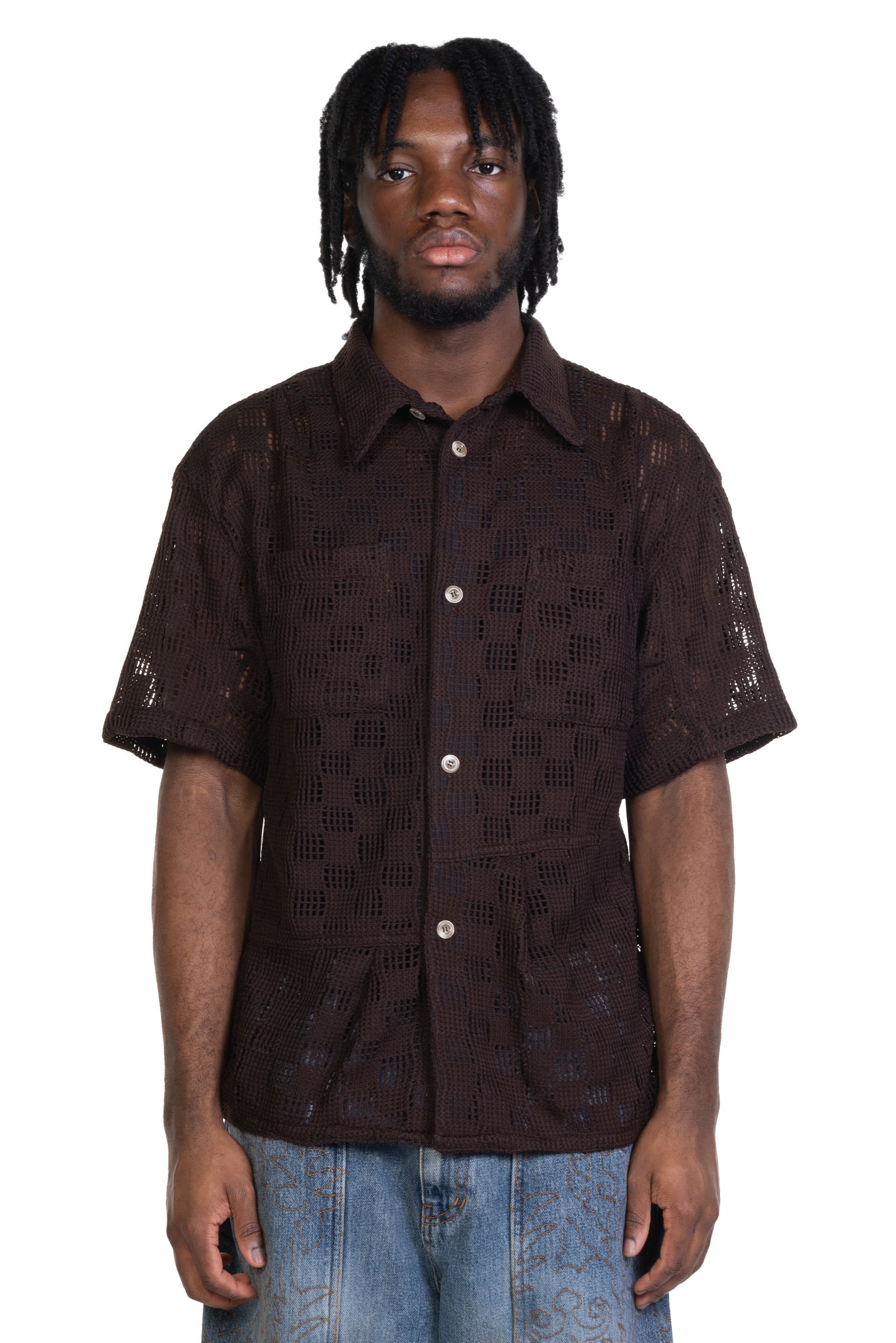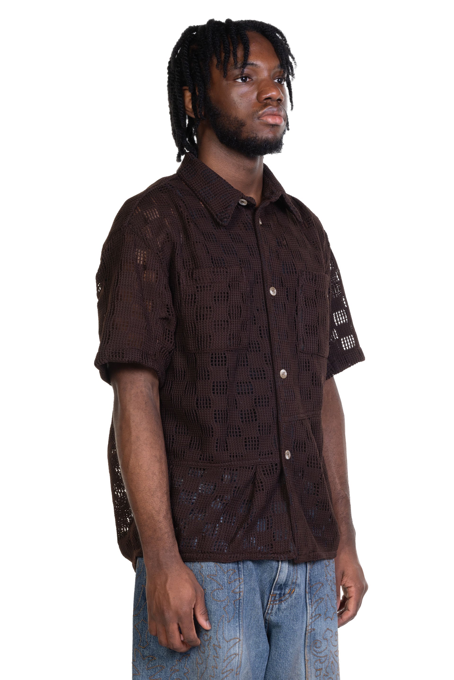 Andersson Bell Letto Knitted Shirt Brown. Short sleeves. Button closure at front. Regular collar. Knitted. Boxy fit.