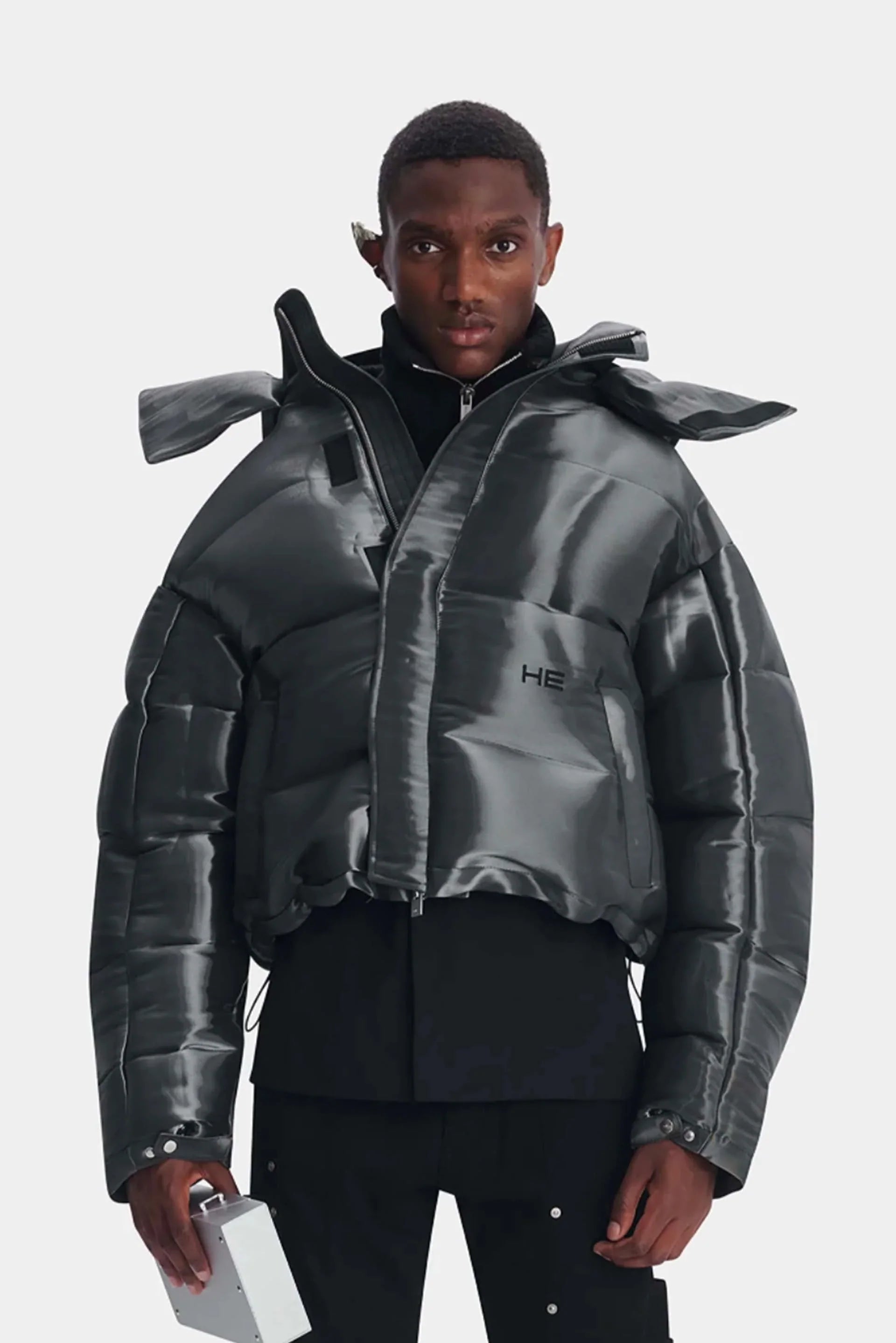 The Juul brothers came to fashion in a roundabout way allowing them to communicate a consistent and clear vision, creating their universe for then add onto it with products. HELIOT EMIL adds elegance to an alternative fashion environment with every new product as seen with the Liquid Metal Down Jacket.
