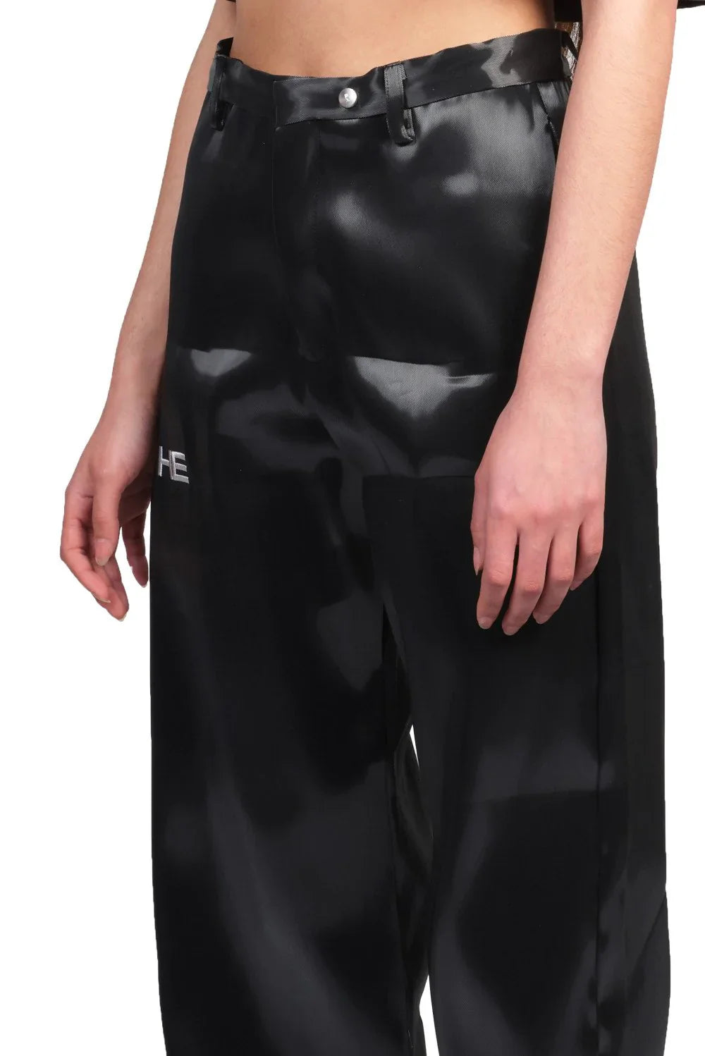 Relaxed-fit coated woven trousers in metallic silver-tone. Mid-rise. Four-pocket styling. Belt loops and press-stud fastening at waistband. Logo embroidered in white at front. Zip-fly. Logo-engraved silver-tone hardware.