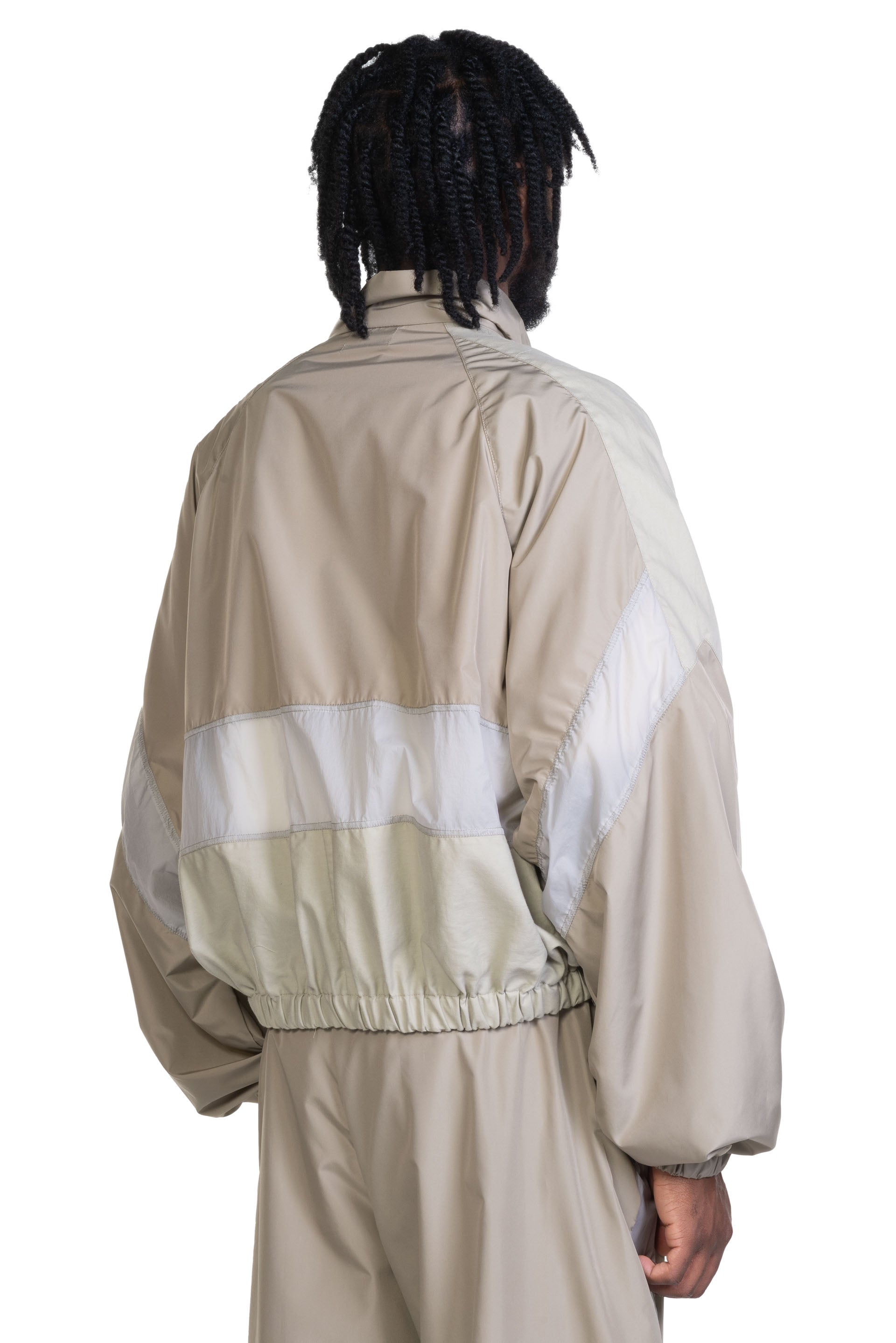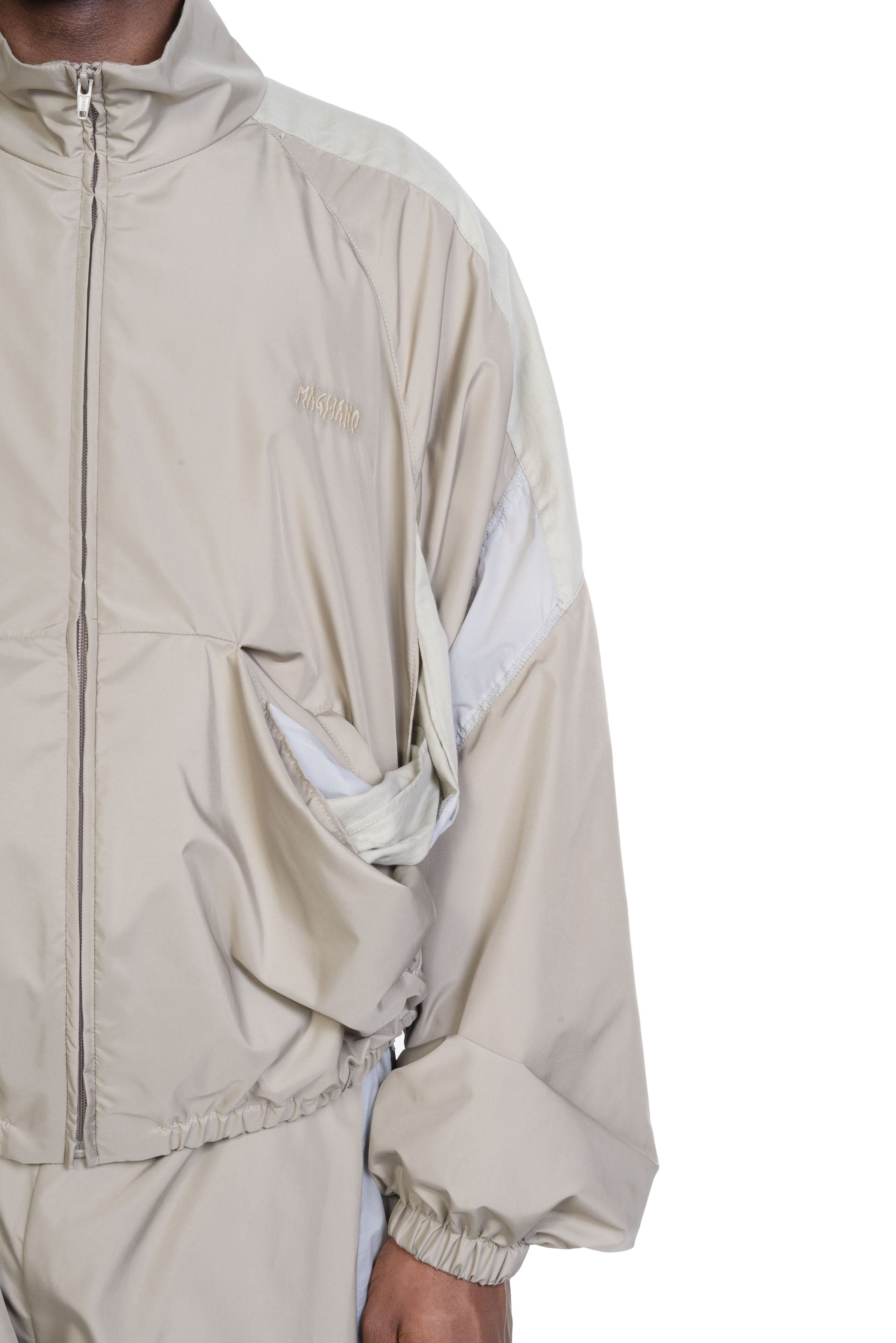 Magliano tracksuit jacket in Beige. Long sleeves. Two side pockets. Zip closure at front. Elasticated bottom. Light and soft technical fabric.