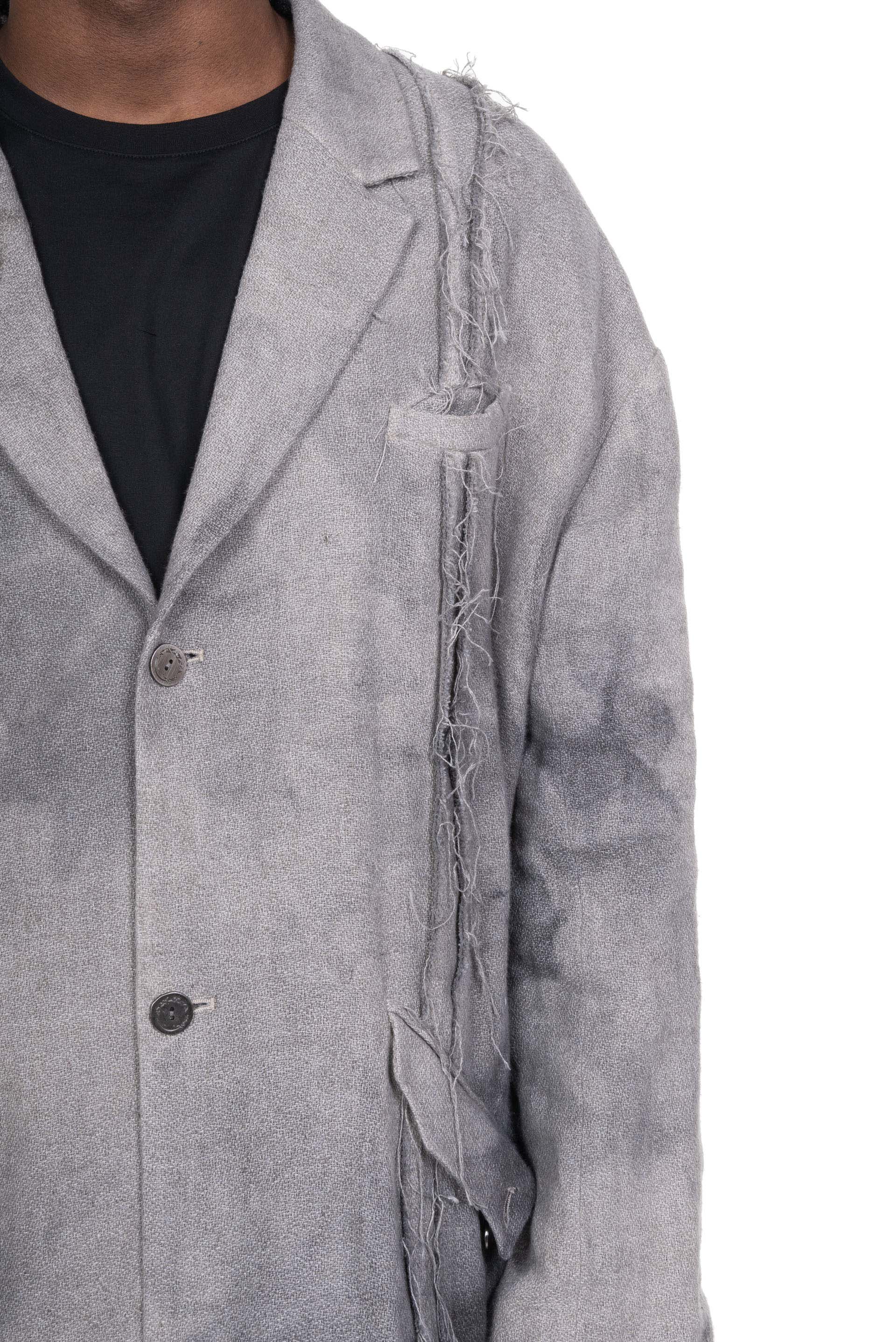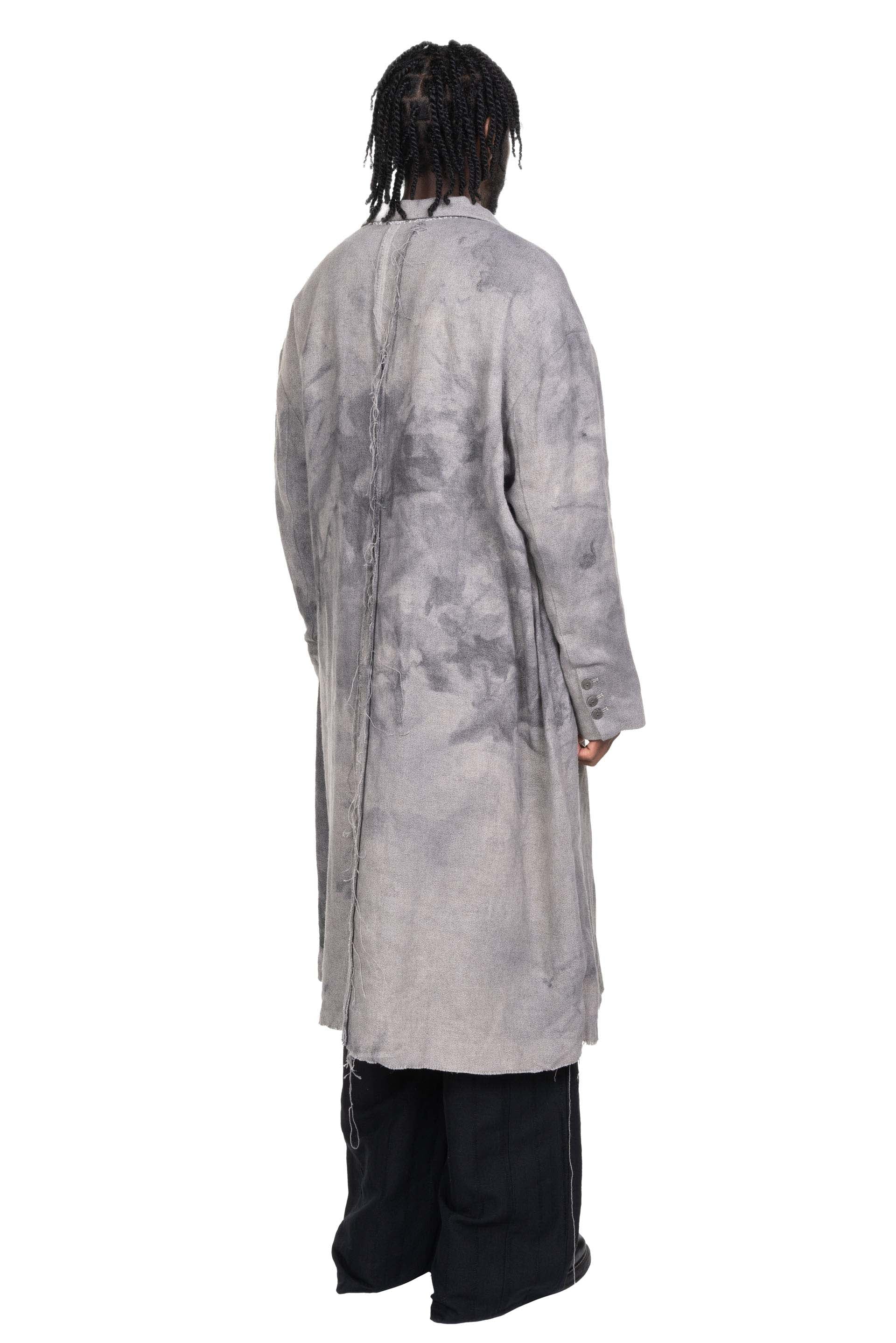 Professor. E understands the time of aesthetics from the use of cotton, hemp and wool. Fabric stitching, patching, designs without edge trimming, deconstruction, and reproduction are all Professor. E's signature elements creating classic immortal designs that can be viewed with the Long Coat Natural Dyed Grey.