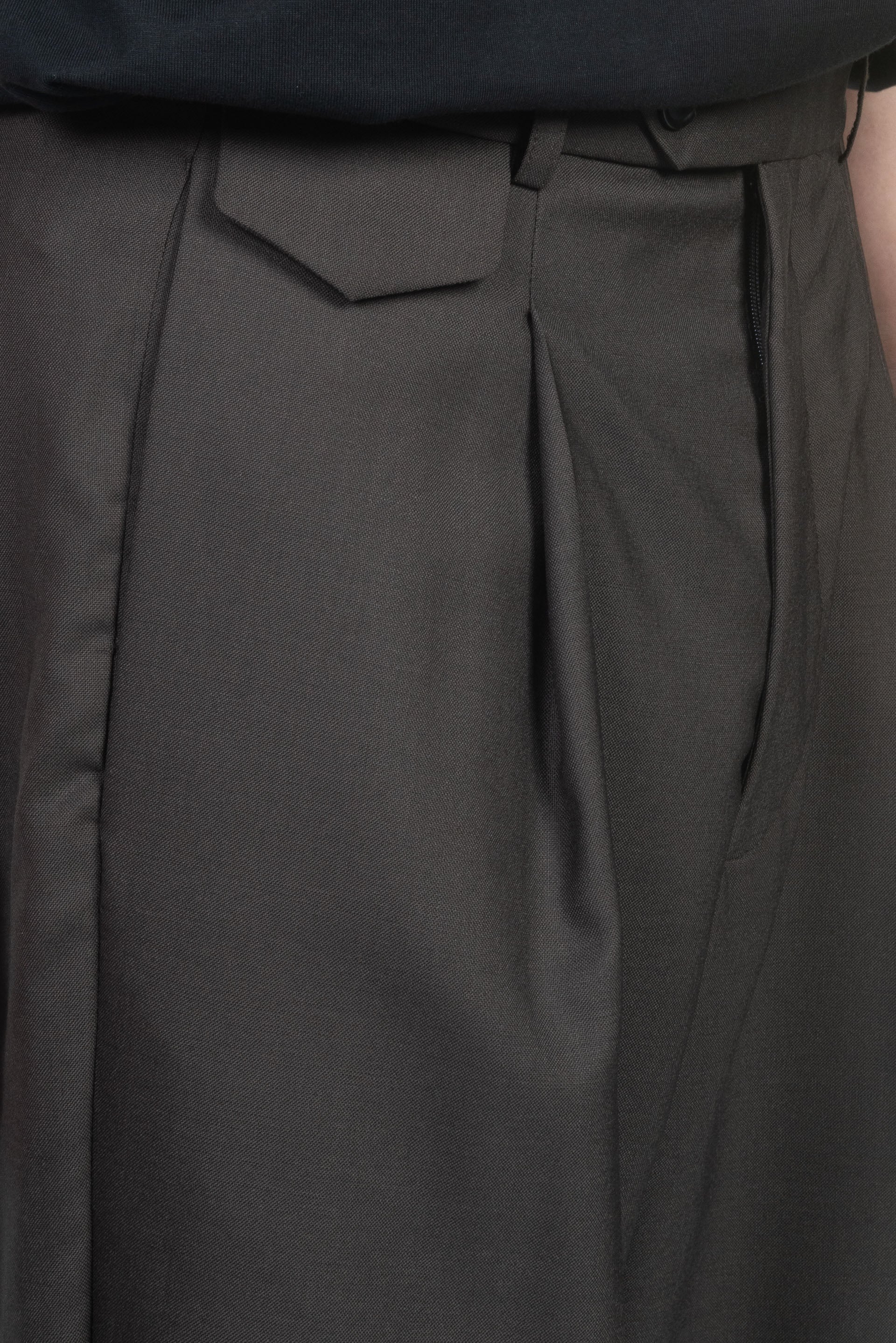 Lownn Long Wide Pants in Dark Brown. Mid-rise. Belt loops. Four-pocket styling. Horn buttons. Pleated front