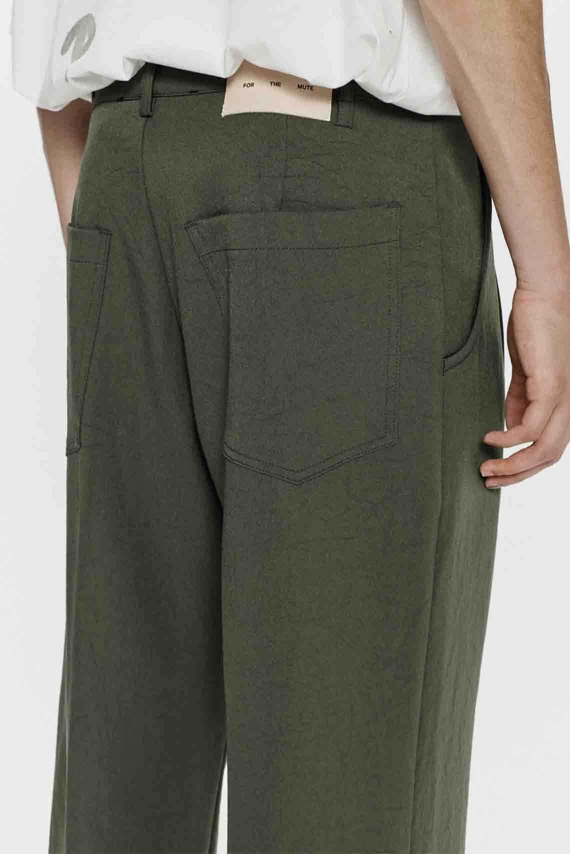 Founded in 2010 by childhood friends Melvin Tanaya and Lyna Ty, Song for the Mute is all about choosing materials carefully. The duo meticulously develops, samples, and selects fabrics in collaboration with artisanal Italian and Japanese mills before patterning their intimate, story-driven collections as seen with the Loose Pleated Pant Sage Green.