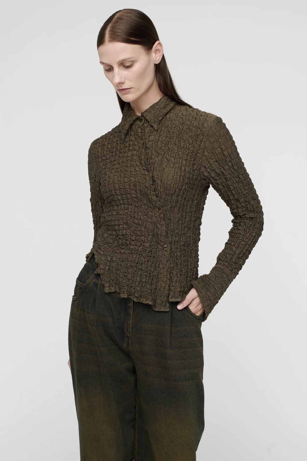 First introduced in 22.1 ‘Avenue d’Ivry’, this shirt features twisted seams rotating anti-clockwise, creating a subtly distorted silhouette that redefines the classic shirt shape.