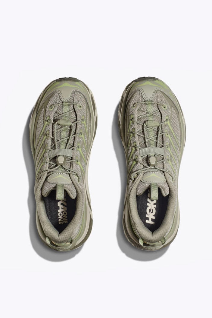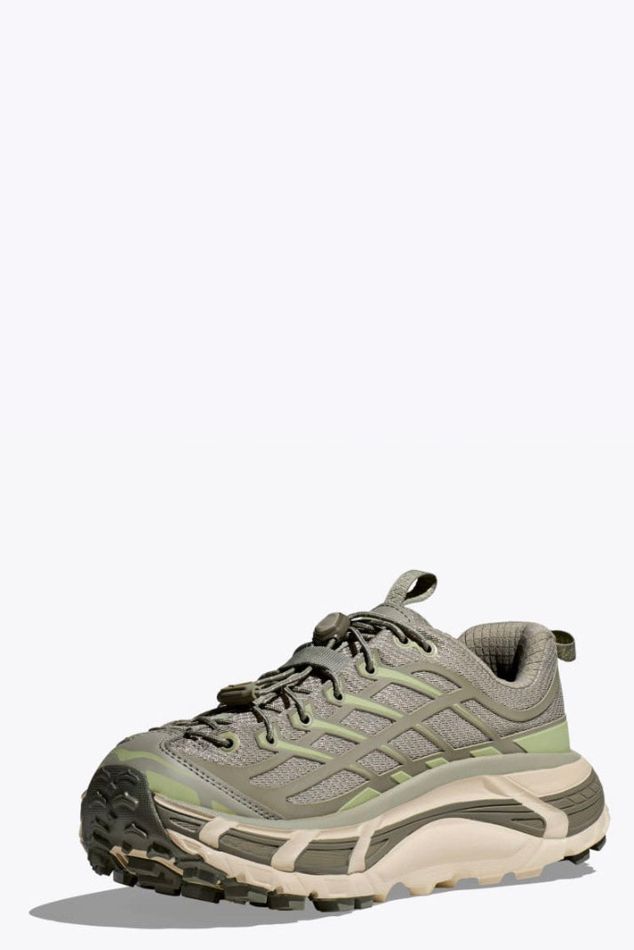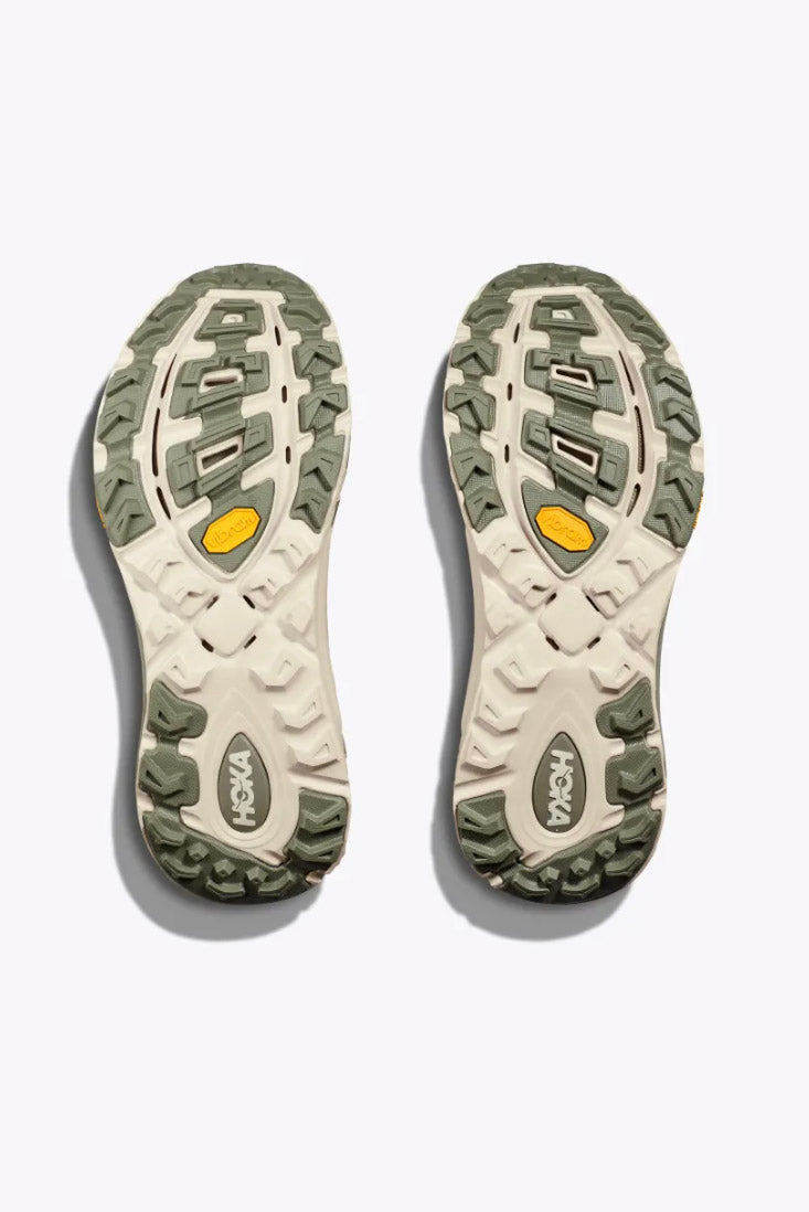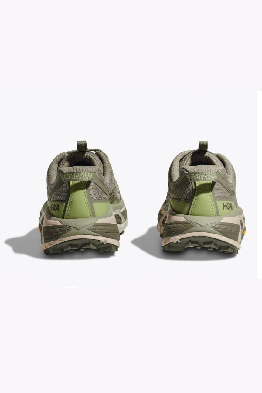 Those who practice trail-running as a total lifestyle love silhouettes that provide comfort, support and cushioning on technical terrain, regardless of the distance as seen with the Hoka One One Mafate Three2 Barley / Seed Green.