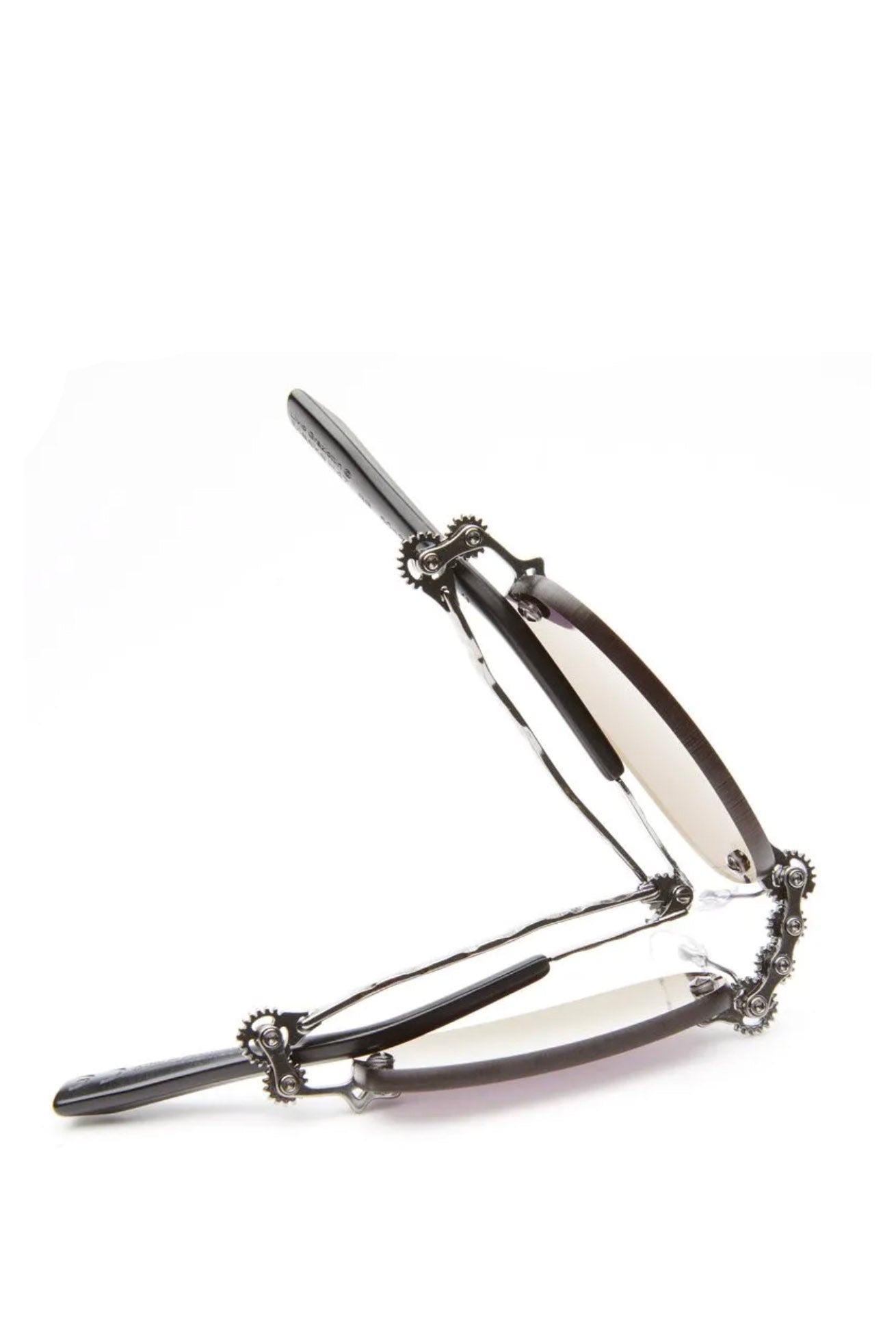 Kuboraum MASK H47 Black are oval sunglasses. They feature black metal/acetate foldable structure, and grey lens with 100% UV protection. Handmade in Italy.