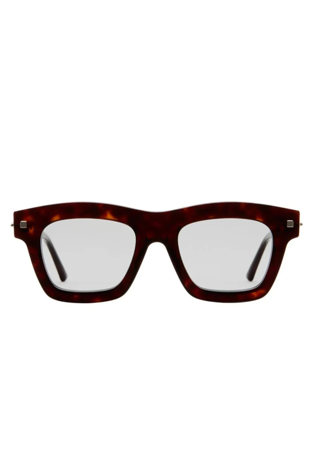 Kuboraum's 'J2' are a blocky upgrade to the classic wayfarer, boasting a thick, flowing browline and sculpted arms. Like all Kuboraum frames, these were carefully handmade in Italy. Tortoise and Ivory colourway. 24H Light Grey lens. Wayfarer eyeglass