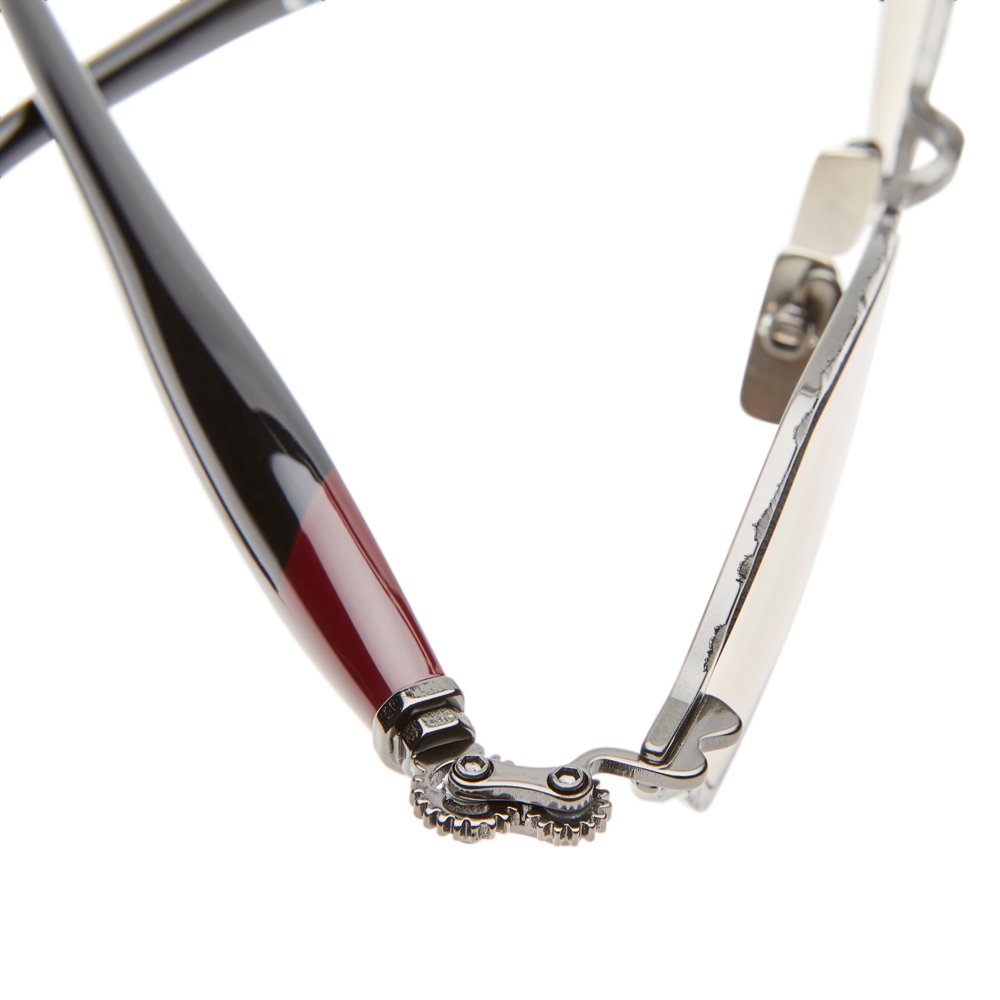 Colour: Gun Metal + Dark Red + Black Shine. Material: 50% Acetate 50% Metal