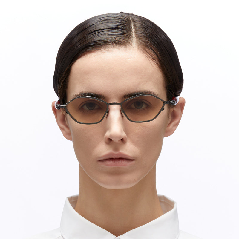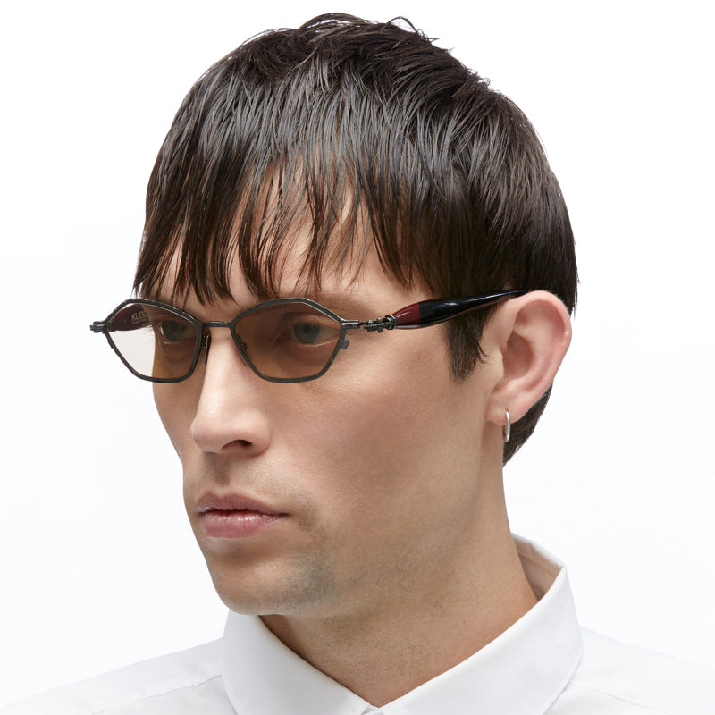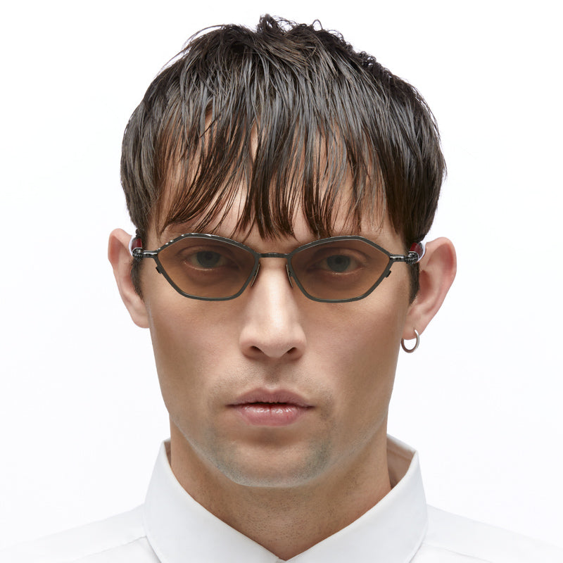 Kuboraum Mask J70 Gun Metal. Lens: Light Brown. Bridge: 18 mm. Lens width: 56 mm. Temple length: 145 mm. Made in Italy. Code: J70 RH